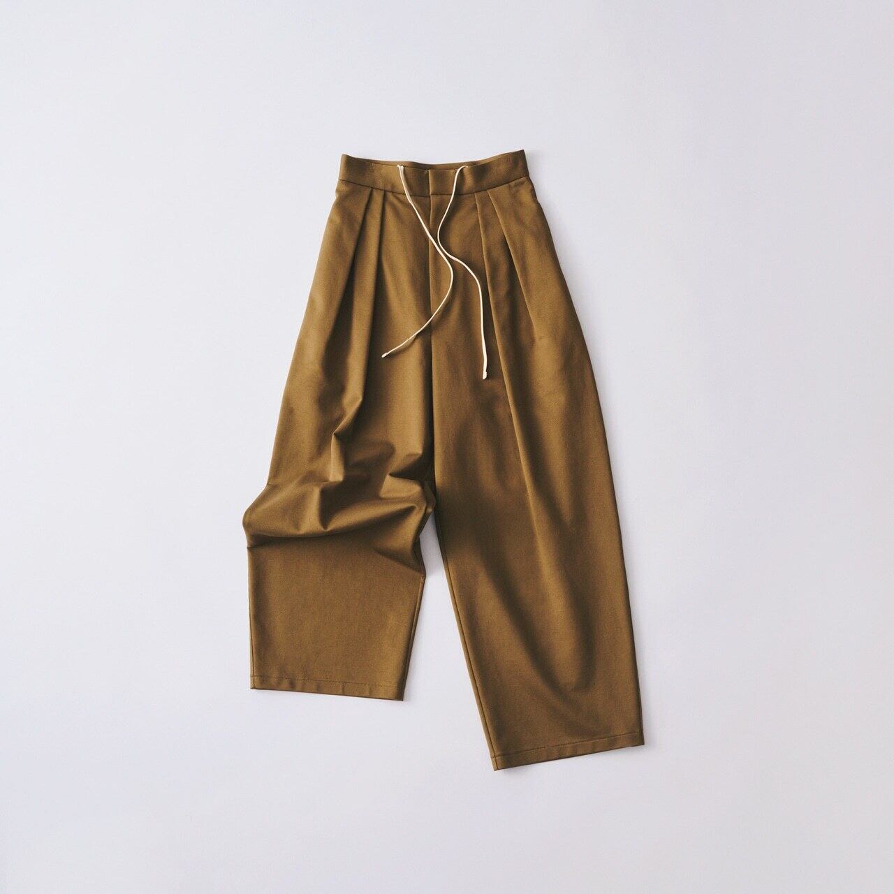 コットンのバランサーキュラー®生地を使用した、リラックスシルエットのドローストリングパンツ。 バランサーキュラー®は、日本独自の、それもたった数台しかない希少な編み機で、ジャージ素材でありながらまるで織り物のような不思議な生地です。ジャージ特有の伸縮性を維持しながらも、型崩れや、シワになりにくいのが特徴です。 上品でしなやか、快適で軽量に仕上げた生地は、これまでにないコットンツイル素材です。 特殊ミシン(Mlock®)を使い、縫い合わせる時に必要な縫い代を極限まで細くする事で、素材の良さを100%引き出しています。見た目にも美しく、着心地の軽さ、快適さを追求しています。 前身頃に施された繊細な3本のタックが常に美しいシルエットを生み出すこのイージーパンツは、01-01-1825Single Breasted Easy Jacketとセットアップとしてもお召いただけます。 品番 | 01-01-1826 色 | オフホワイト・ライトベージュ 素材 | 綿95% ナイロン5% 日本製 サイズ |S・M・L モデル|身長186cm・胸囲88cm・胴囲70cm | サイズ L S ウエスト72cm 股上27.3cm 股下70cm もも回り74.4cm 裾幅19.4cm M ウエスト76cm 股上28.1cm 股下72cm もも回り77cm 裾幅20.2cm L ウエスト80cm 股上29cm 股下74cm もも回り79.6cm 裾幅21cm These are relaxed-fit drawstring pants made from cotton Balancer Circular® fabric. Balancer Circular® is a unique Japanese material woven on only a few rare knitting machines, creating a jersey fabric that feels surprisingly like woven cloth. It maintains the elasticity characteristic of jersey while being resistant to deformation and wrinkles. The fabric is elegant, supple, comfortable, and lightweight, offering a cotton twill texture unlike anything before. By using a special sewing machine (Mlock®) to minimize seam allowances, the full quality of the material is brought out. The pants are visually beautiful and designed for lightness and comfort. Delicate triple tucks on the front always create a beautiful silhouette, and these easy pants can also be worn as a set with the 01-01-1825 Single Breasted Easy Jacket. Item Number | 01-01-1826 Colors | Off White・Light Beige Material | 95% Cotton, 5% Nylon Made in Japan Sizes | S・M・L Model | Height 186cm・Chest 88cm・Waist 70cm | Wearing Size L S - Waist 72cm・Rise 27.3cm・Inseam 70cm・Thigh 74.4cm・Hem 19.4cm M - Waist 76cm・Rise 28.1cm・Inseam 72cm・Thigh 77cm・Hem 20.2cm L - Waist 80cm・Rise 29cm・Inseam 74cm・Thigh 79.6cm・Hem 21cm