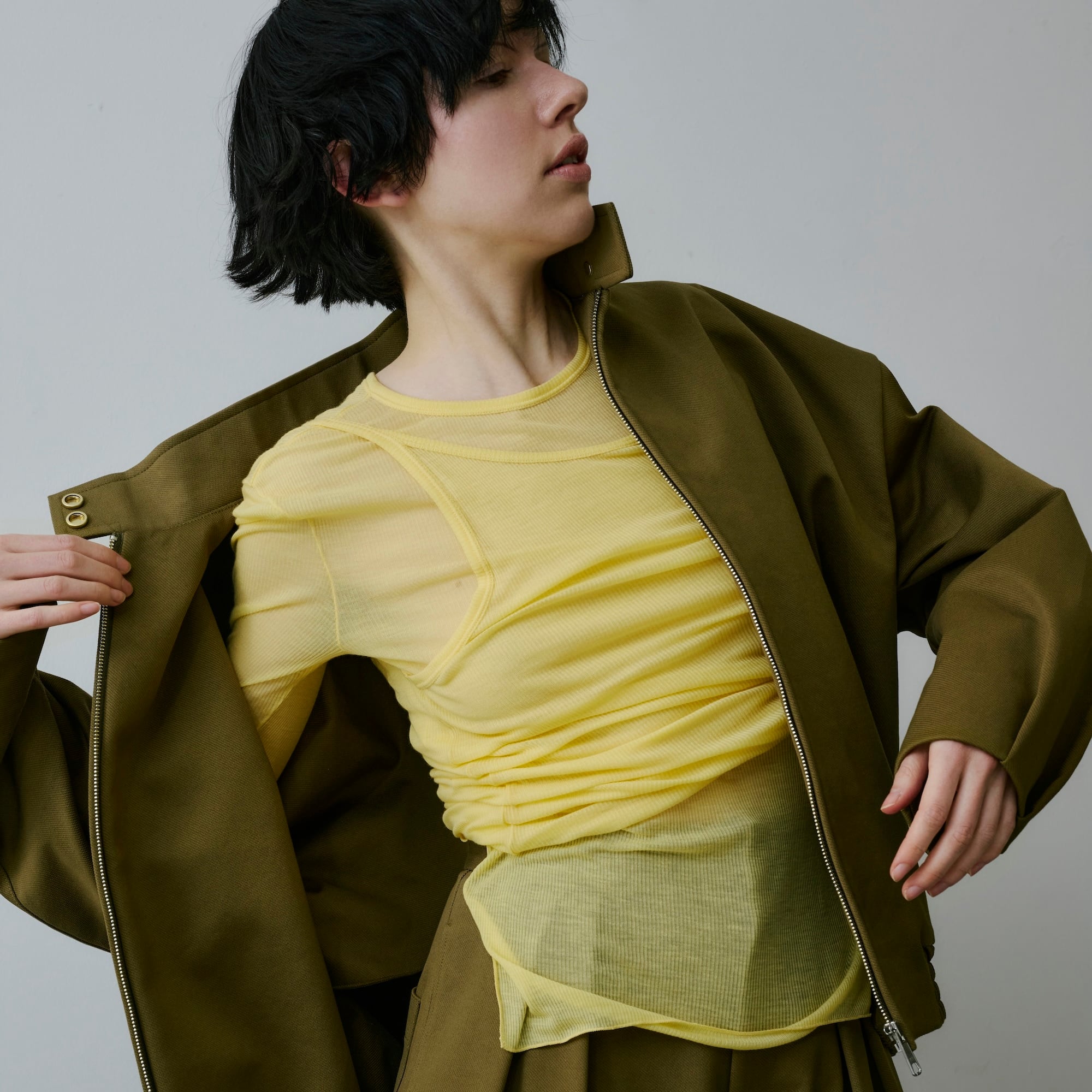 袖口に大きく取ったタックが特徴の、スリーブコンシャスなブルゾンです。