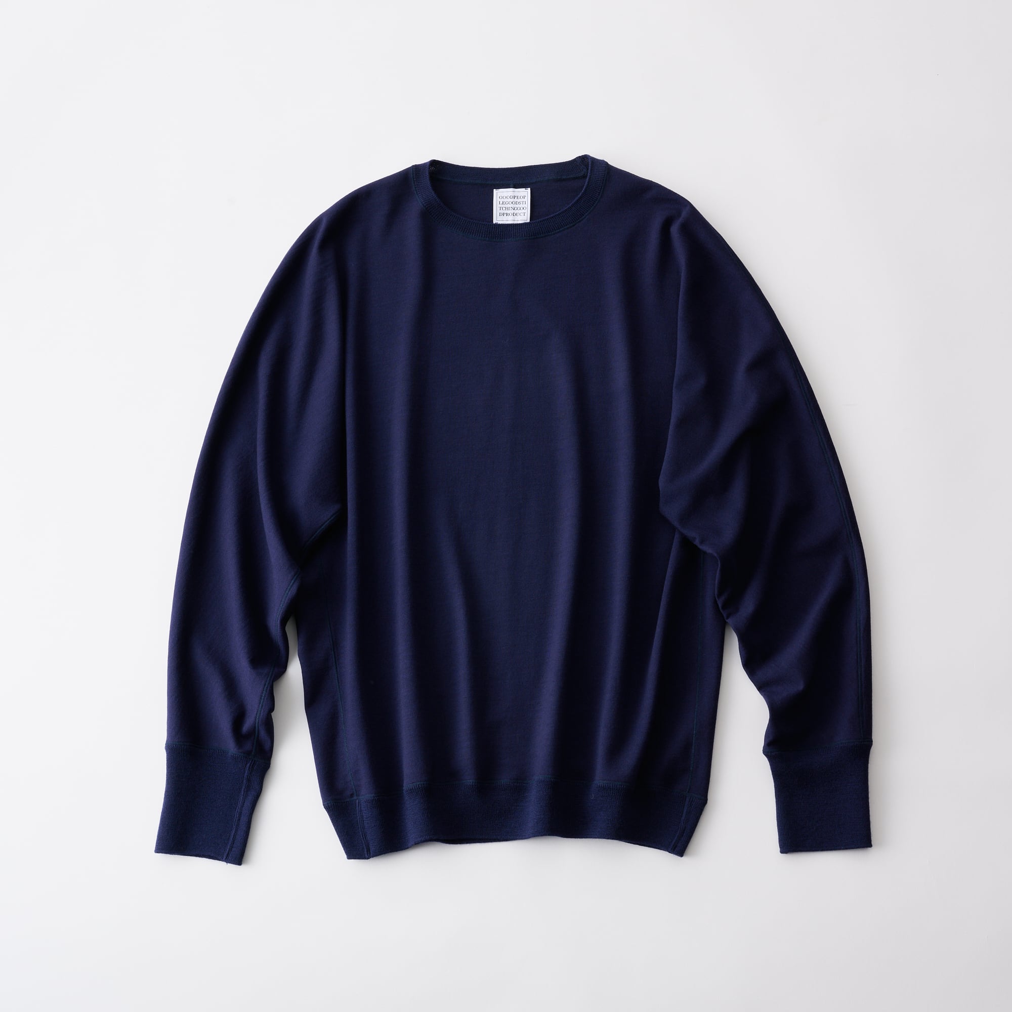 ウールのバランサーキュラー®生地を使用したドルマンスリーブ、クルーネックプルオーバー。