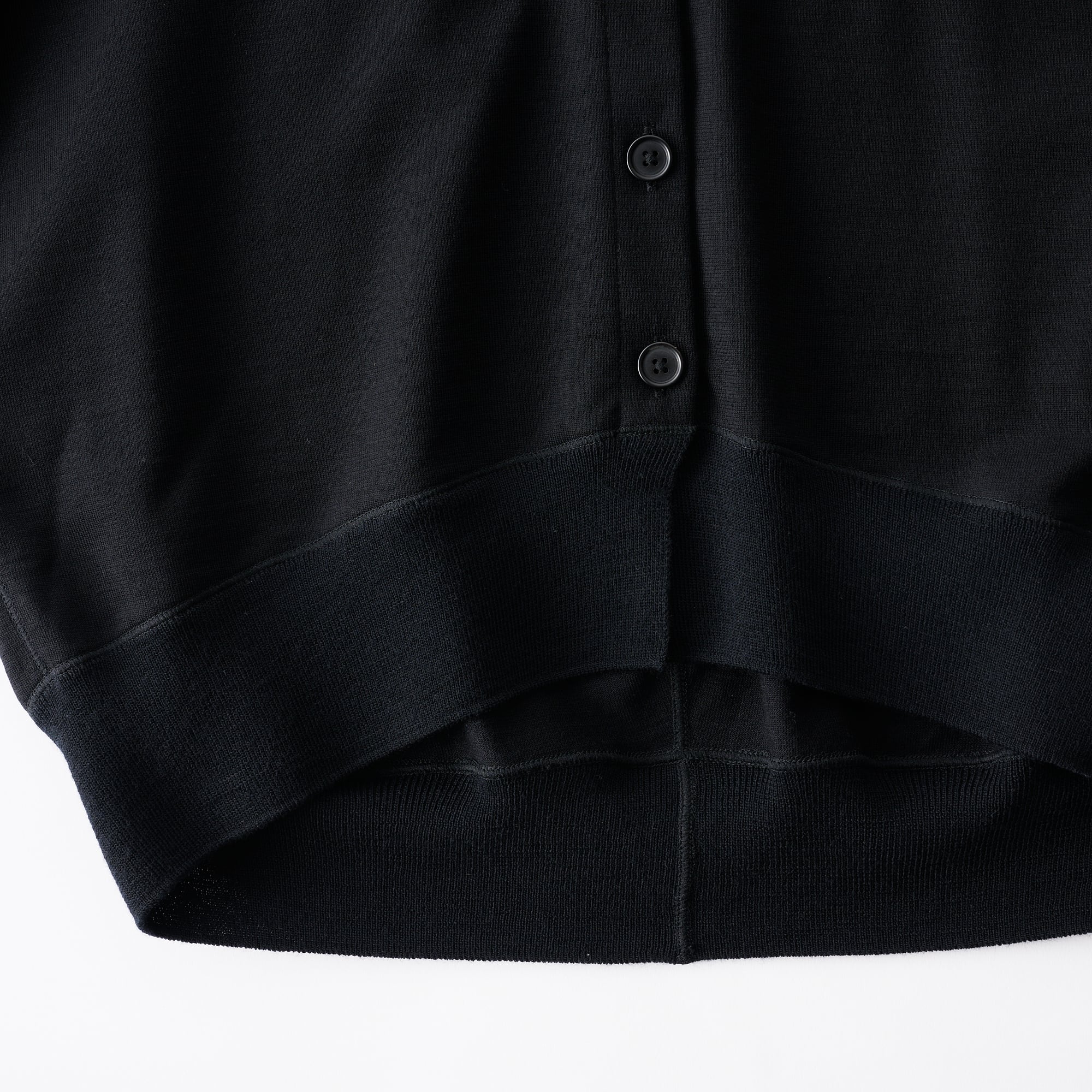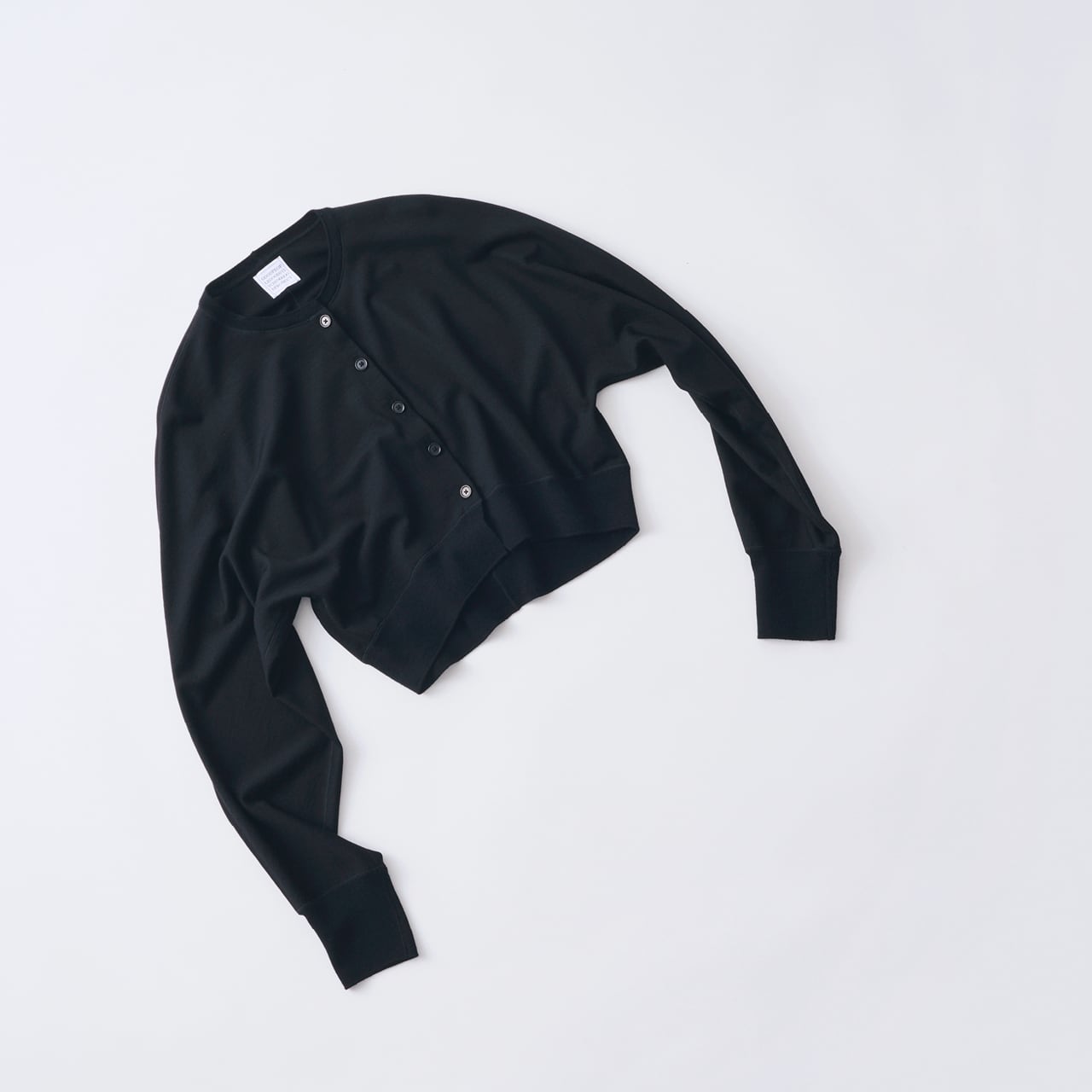 ウールのバランサーキュラー®生地を使用したドルマンスリーブ、クルーネックカーディガン。