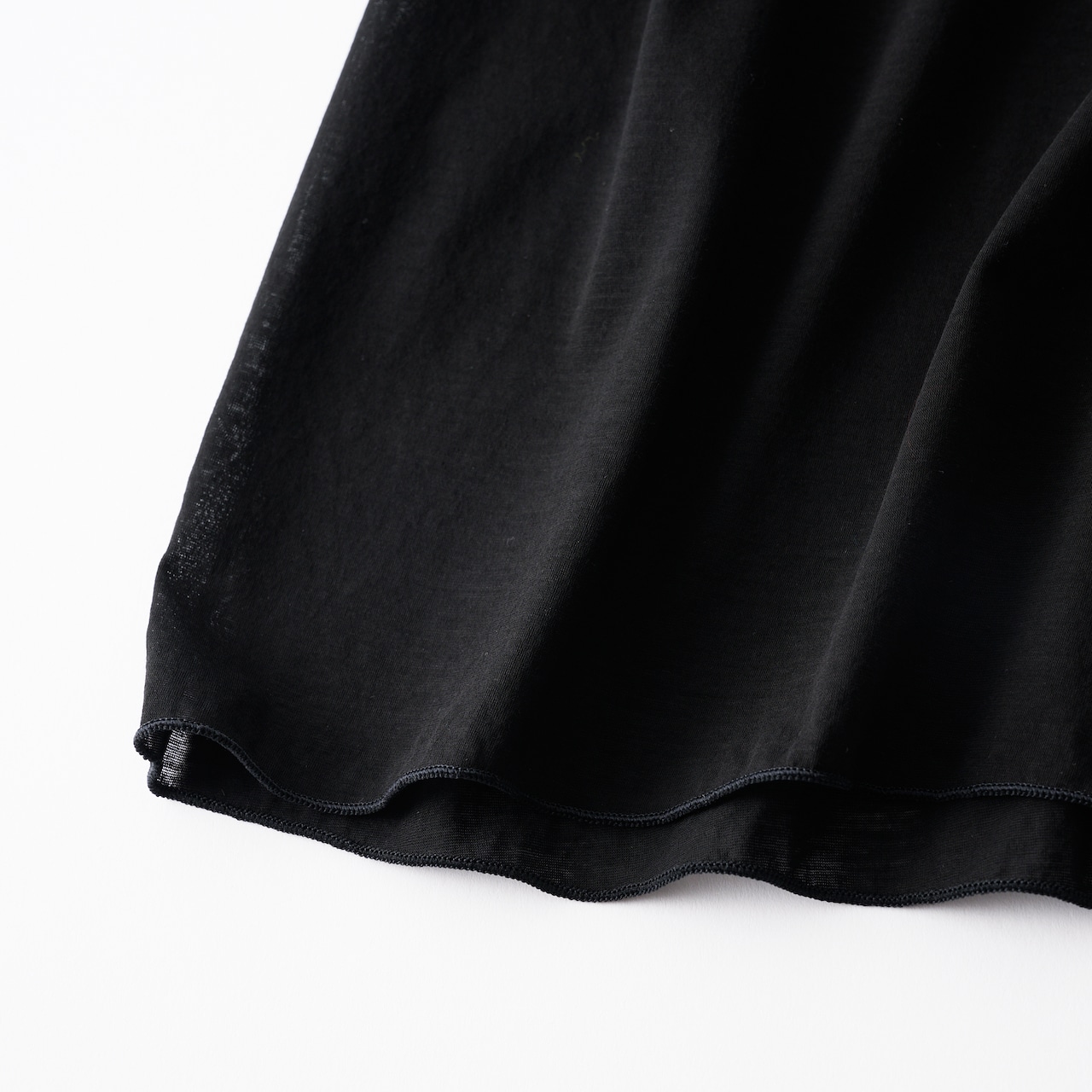 GGGの定番、コットン100%シアー天竺は、毛羽立ちが少なく、ドライタッチ。それなのに柔らかくてとてもシルキーです。この素材に特別な加工を施し、快適なストレッチ性を持たせています。