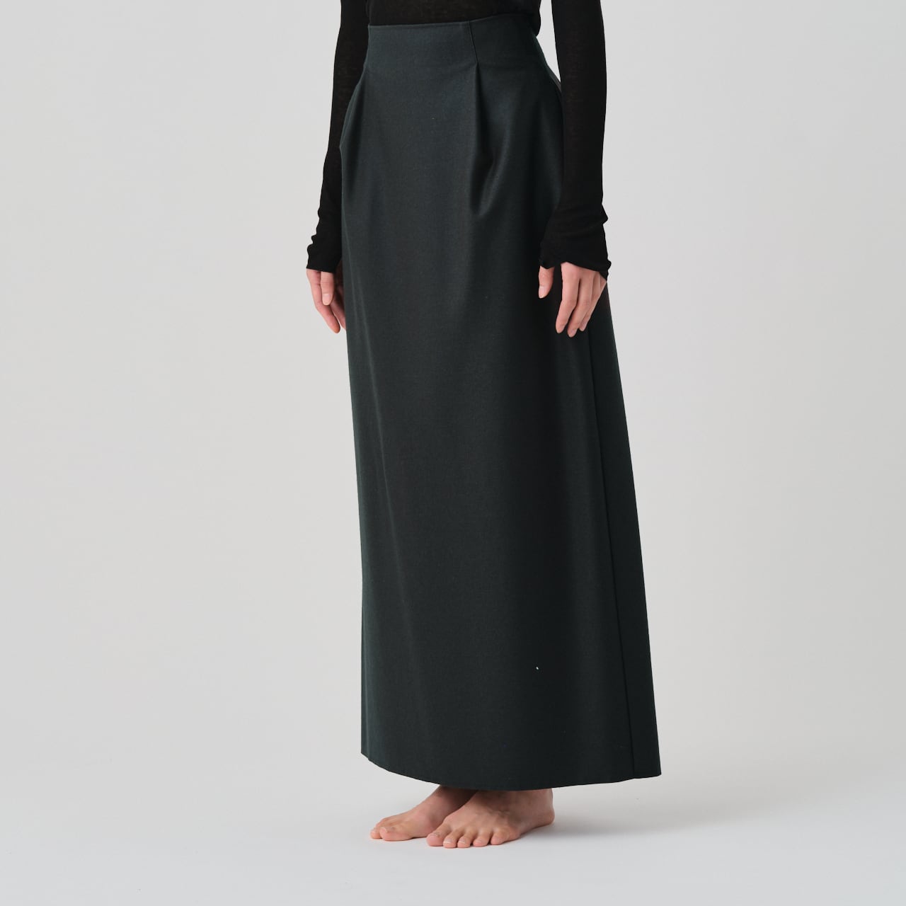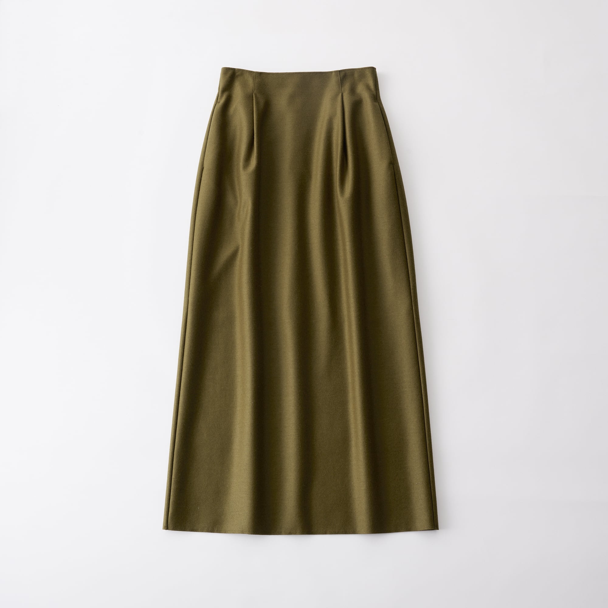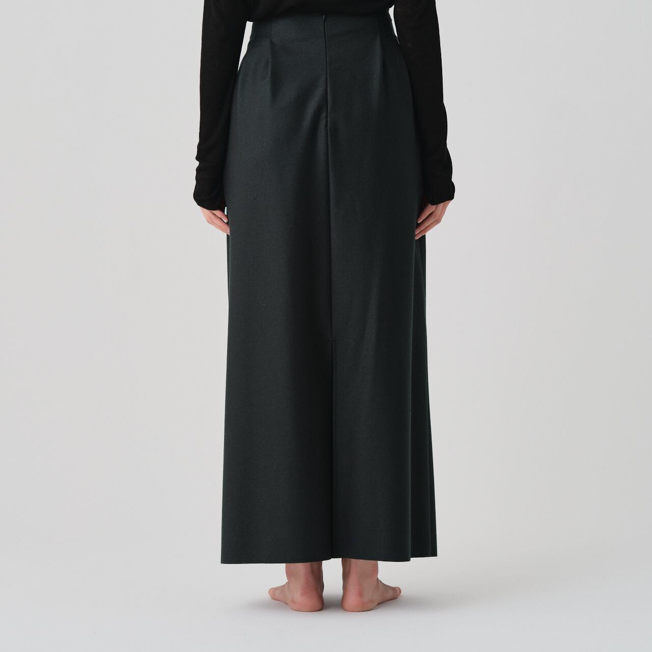 ウールのバランサーキュラー®生地を使用した、バックスリットロングスカート。