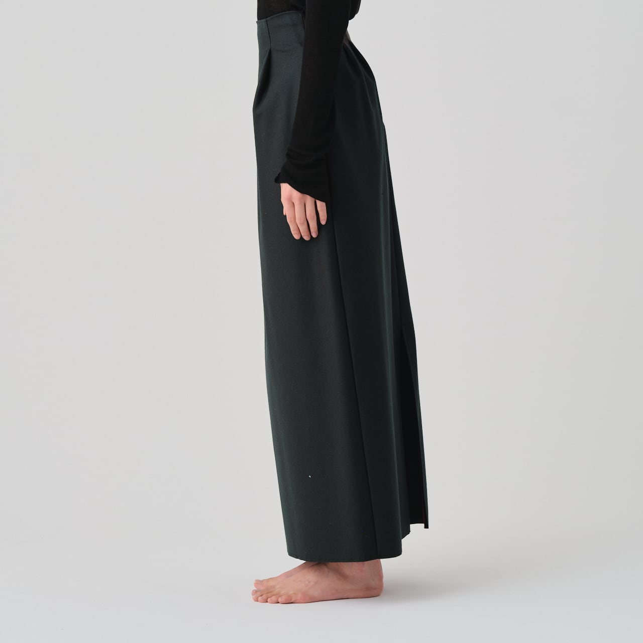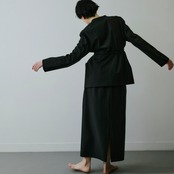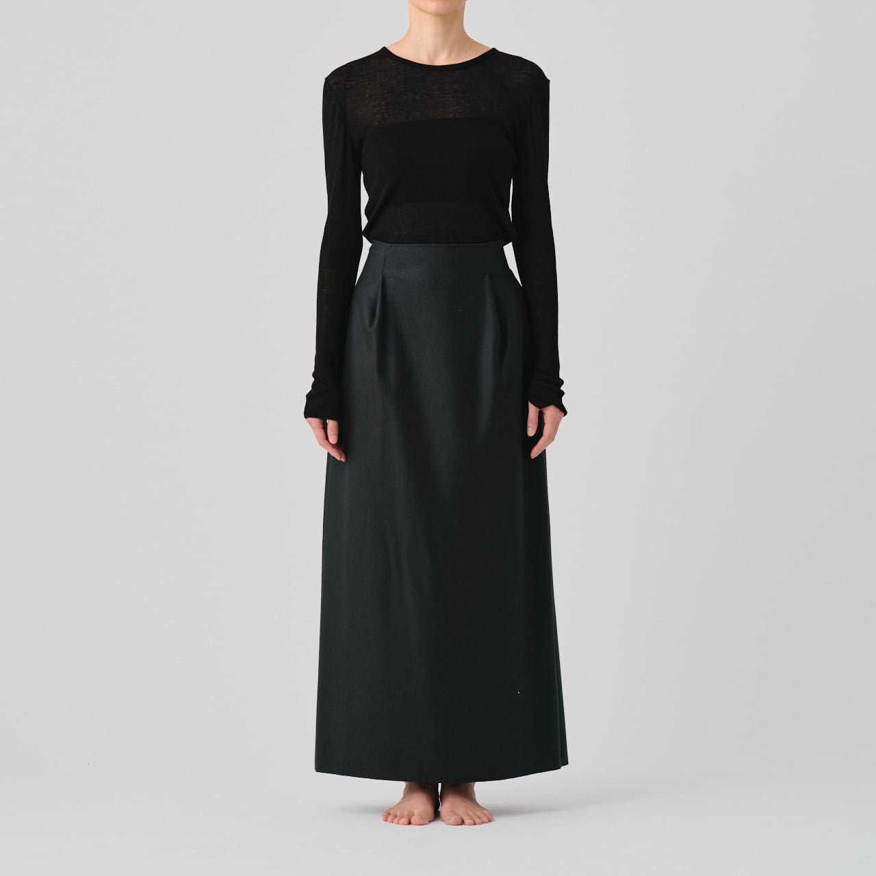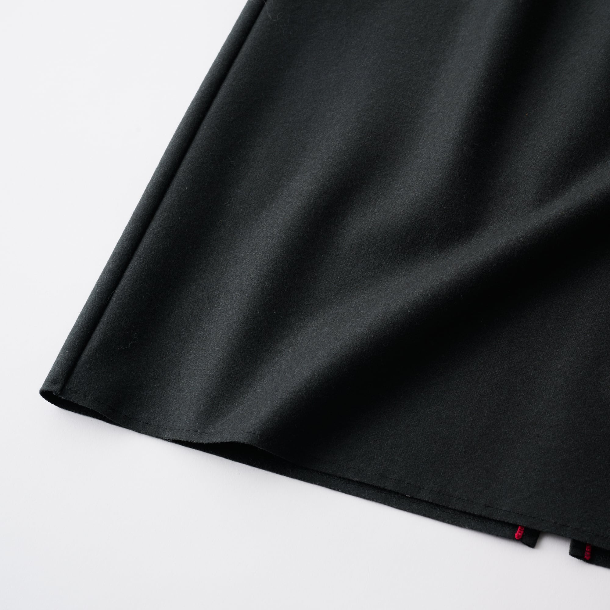 ウールのバランサーキュラー®生地を使用した、バックスリットロングスカート。