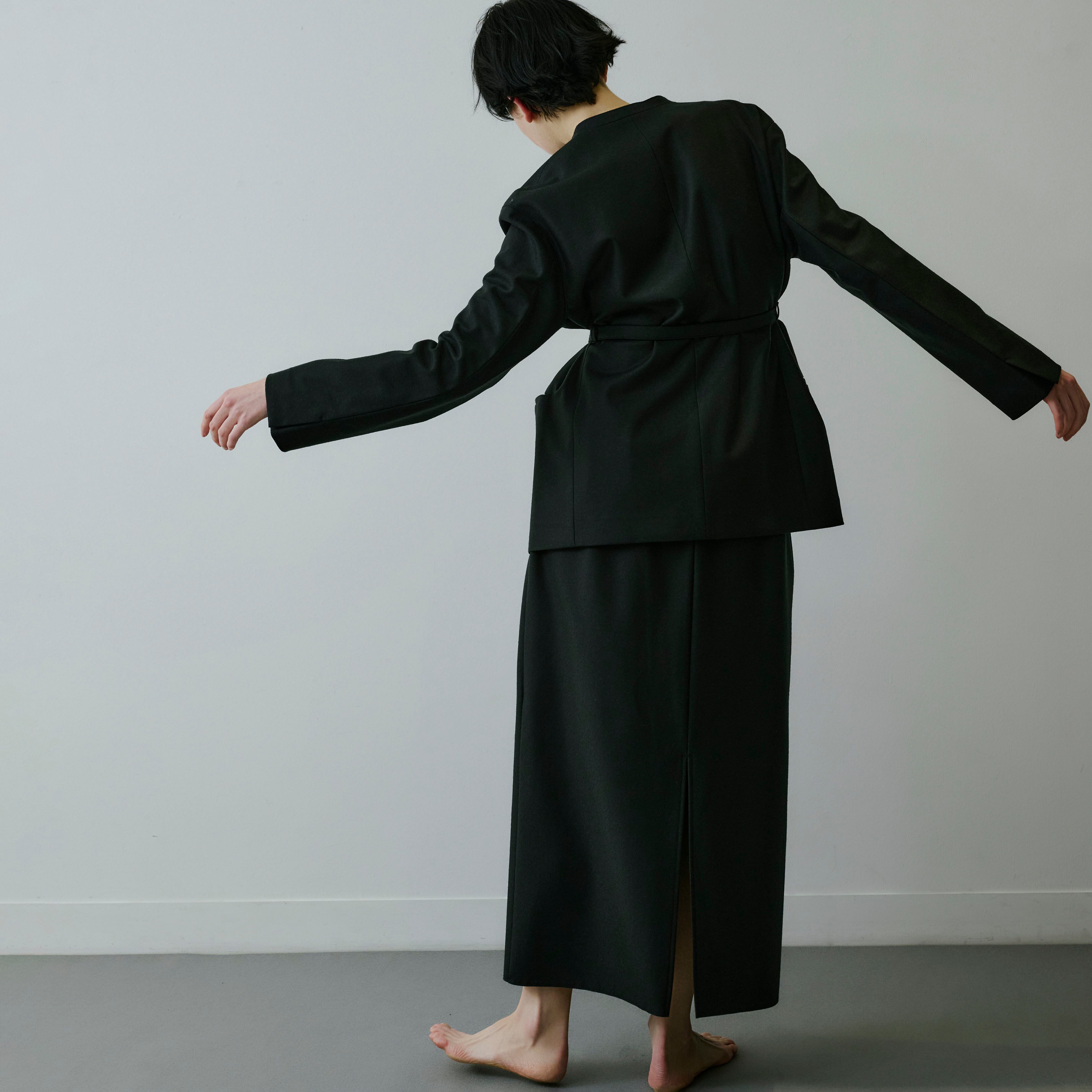 02-01-1761 No Collar Wrap Jacketや 02-01-1762 Single Breasted Tailored Jacketとのセットアップとしてお召いただけます。