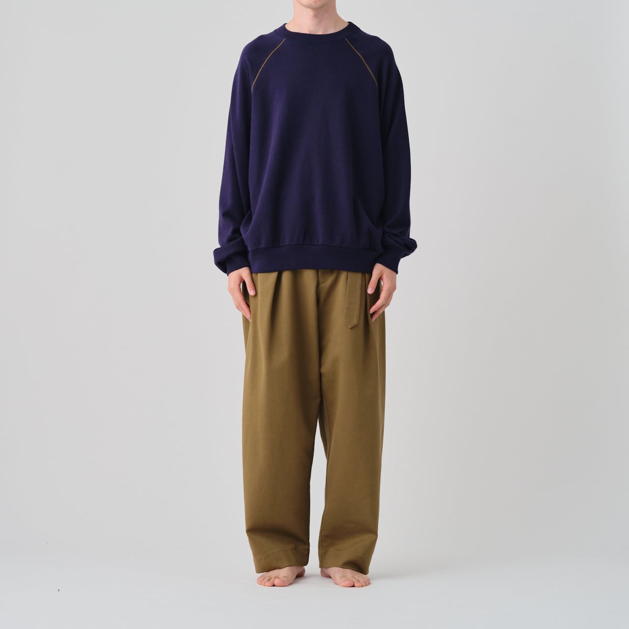 スーピマコットン、ワイドシルエットクルーネックプルオーバー。