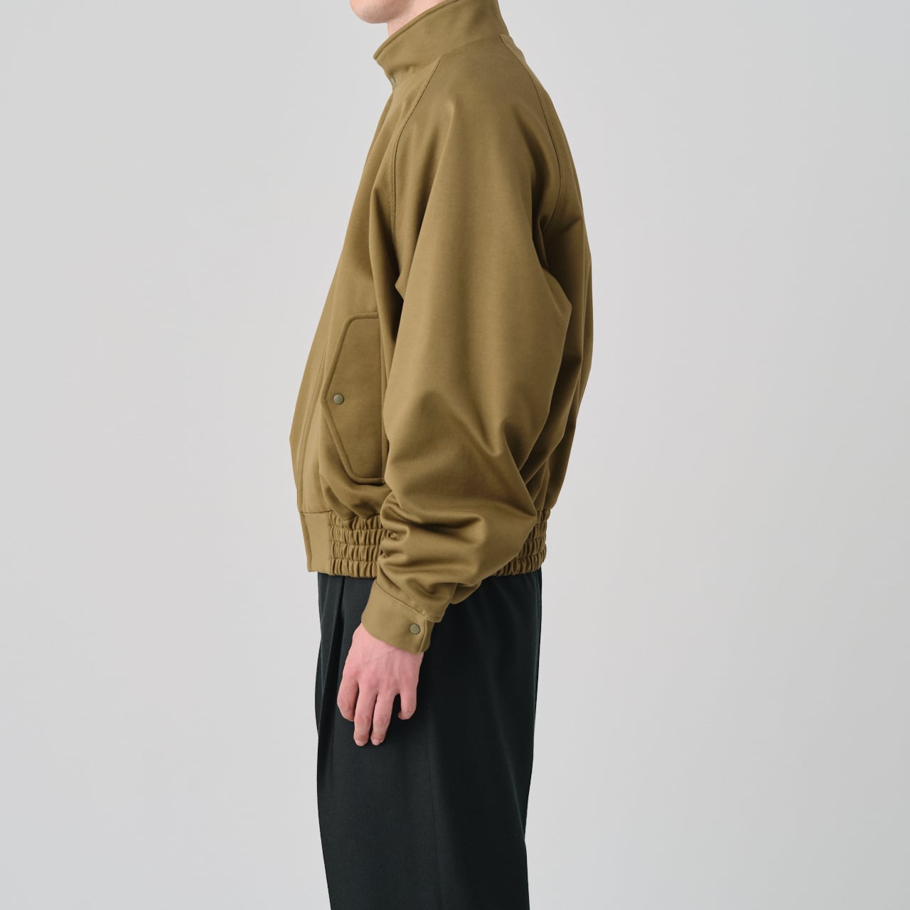 スビンゴールドコットン100%のバランサーキュラー®生地を使用した、ハリントンジャケット。