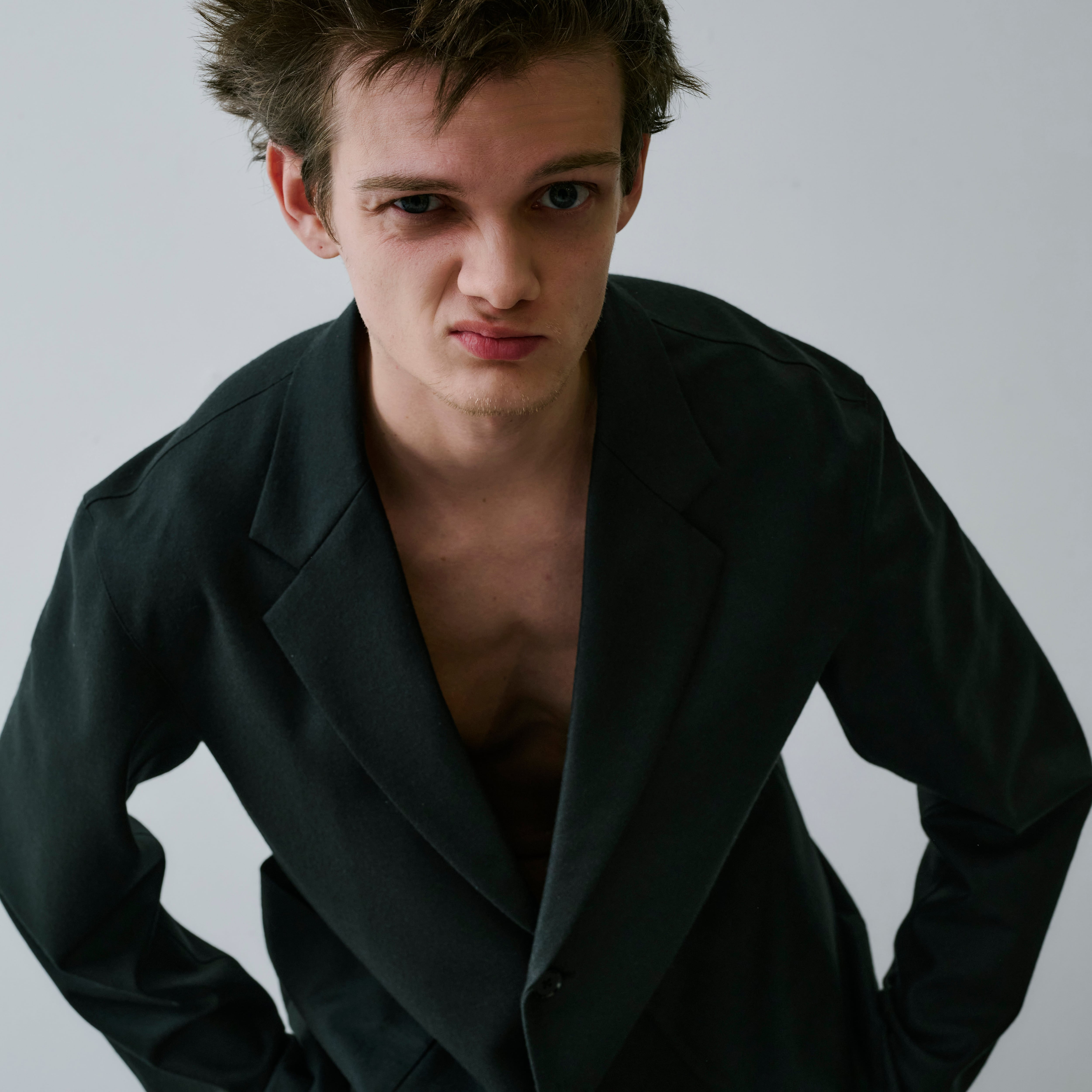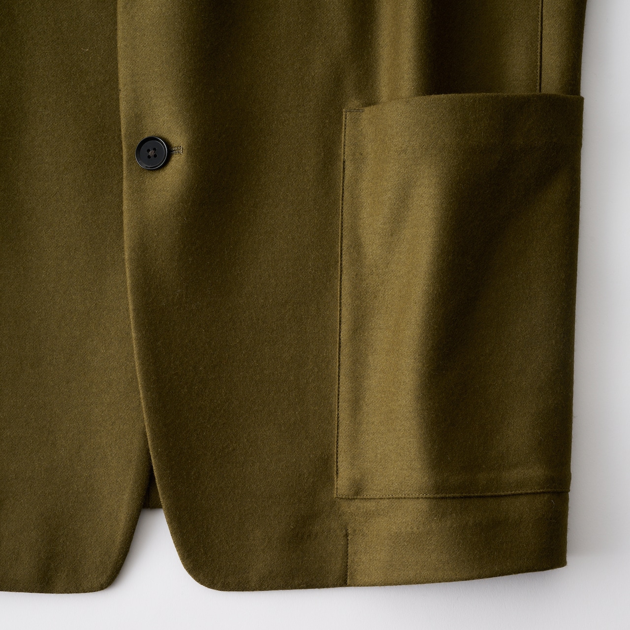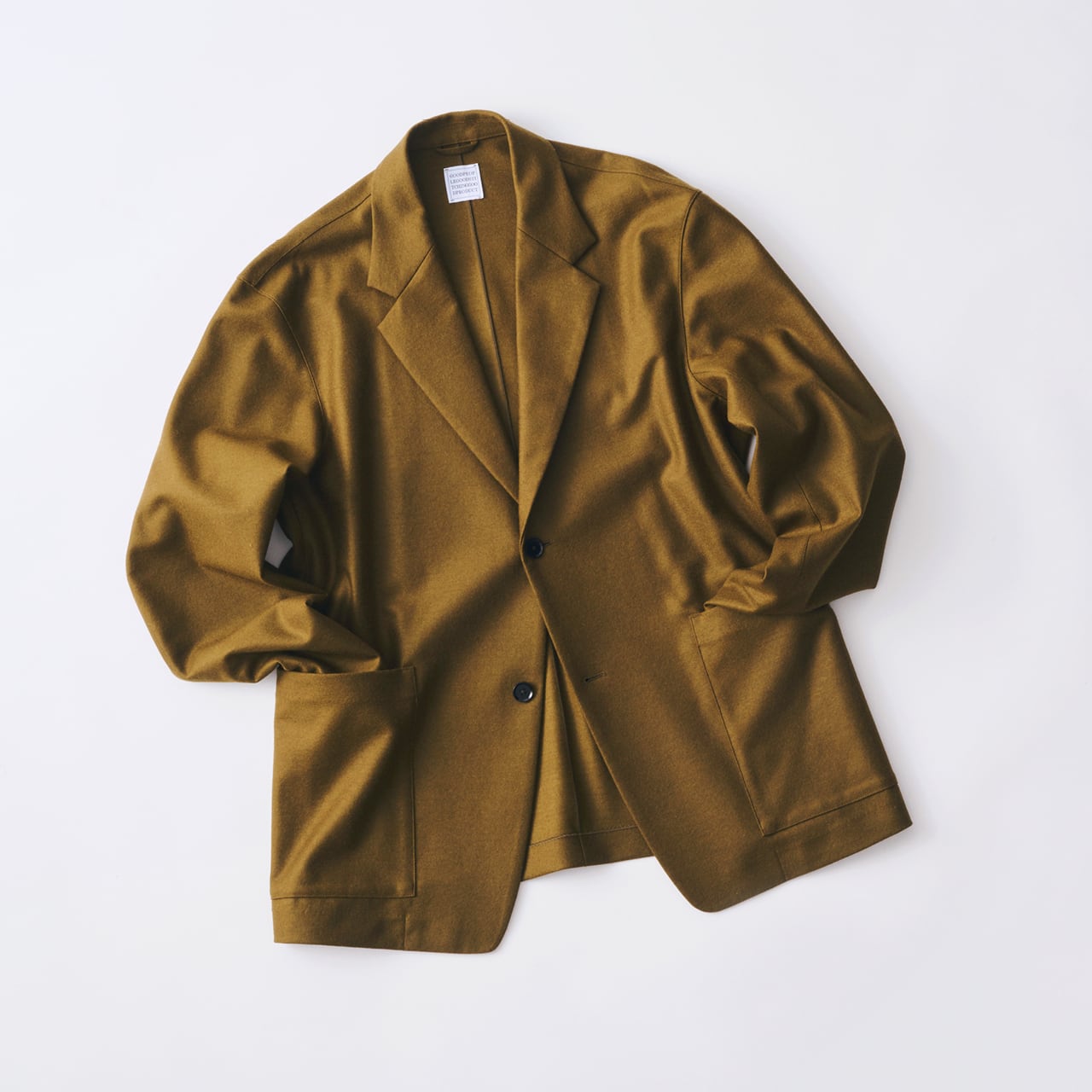ウールのバランサーキュラー®生地を使用した、リラックスシルエットのシングルジャケット。