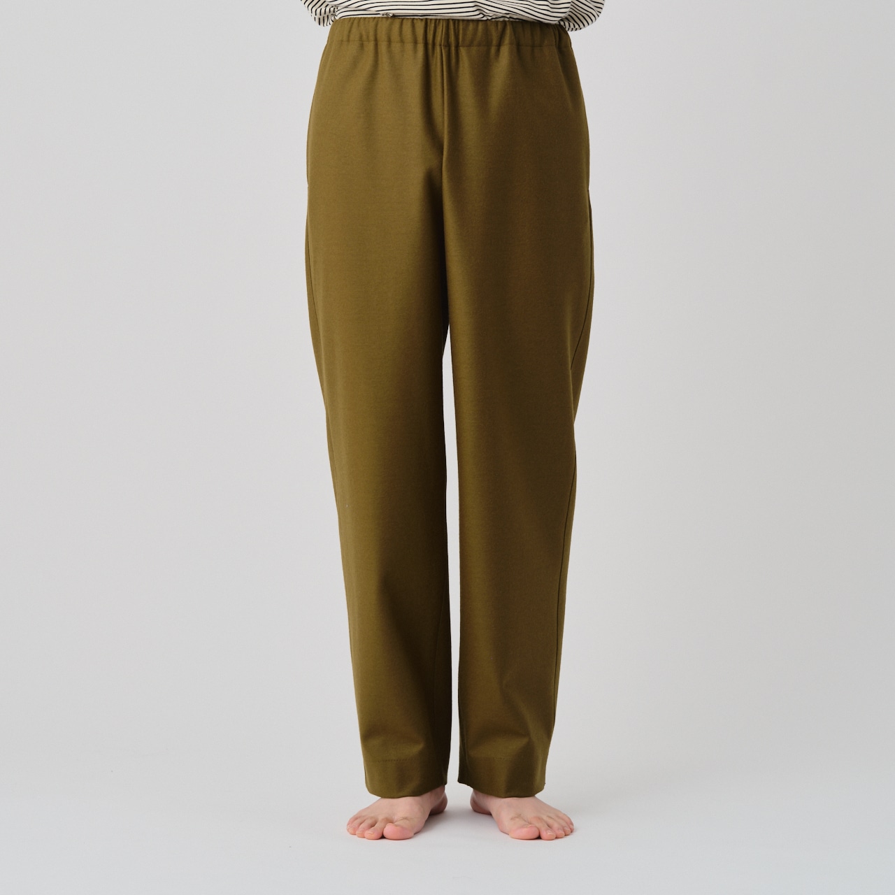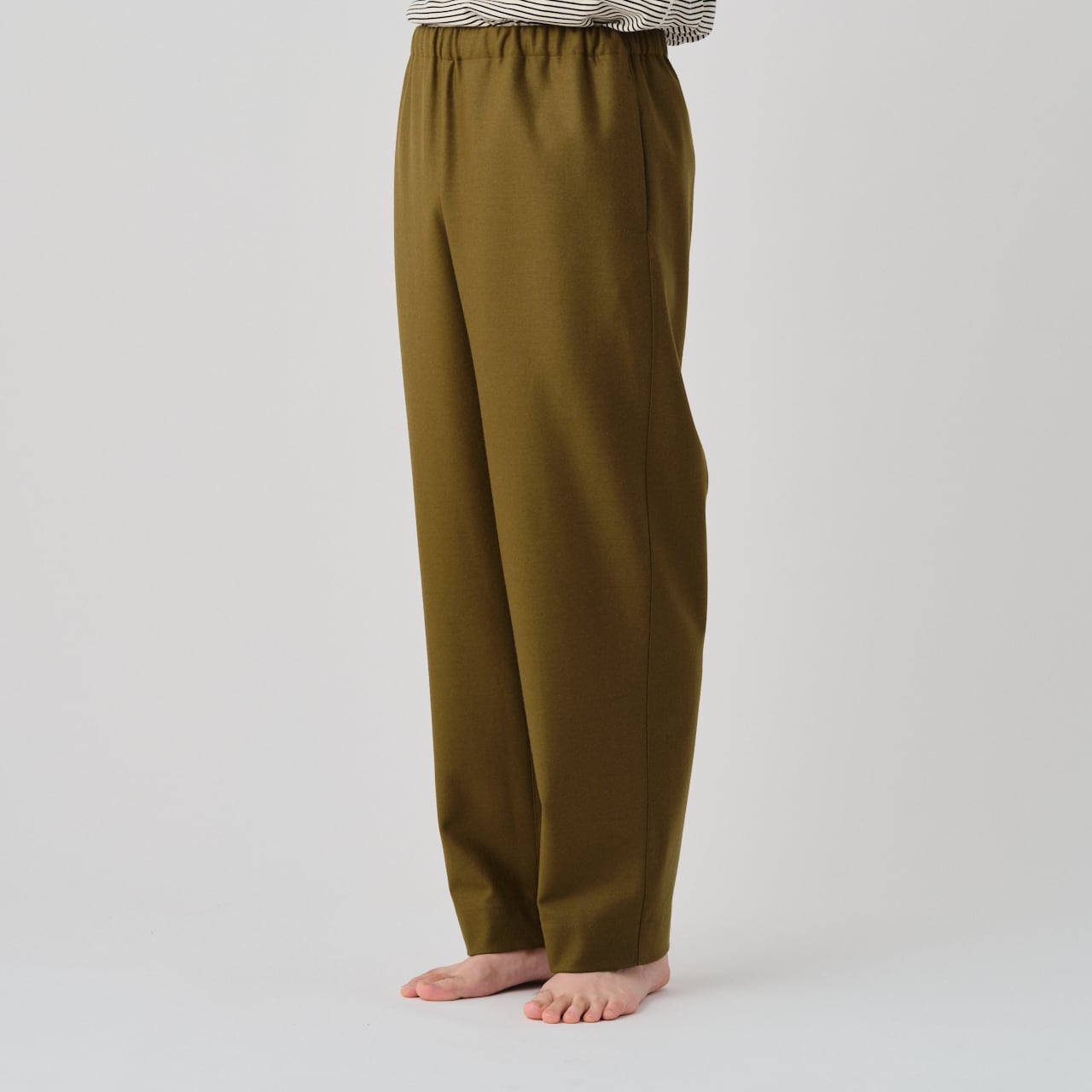 ウールのバランサーキュラー®生地を使用した、ドローストリングストレートパンツ。