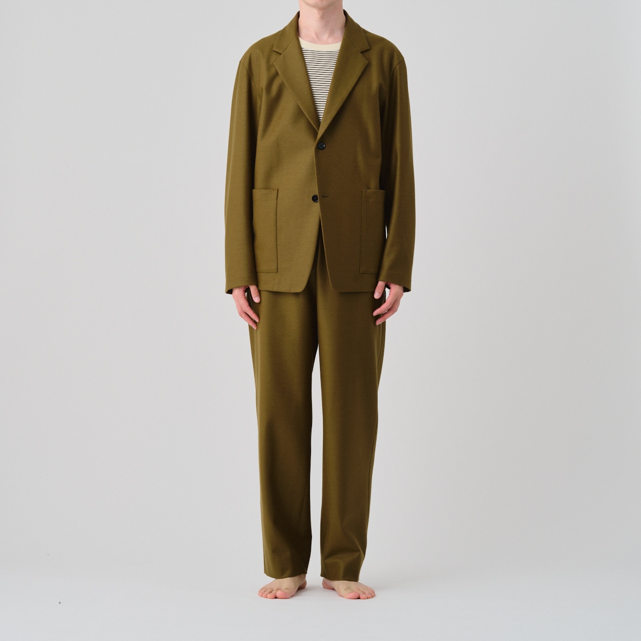 The drawstring pants with clean lines can be worn as a set-up with 01-01-1712 Single Breasted Easy Jacket.