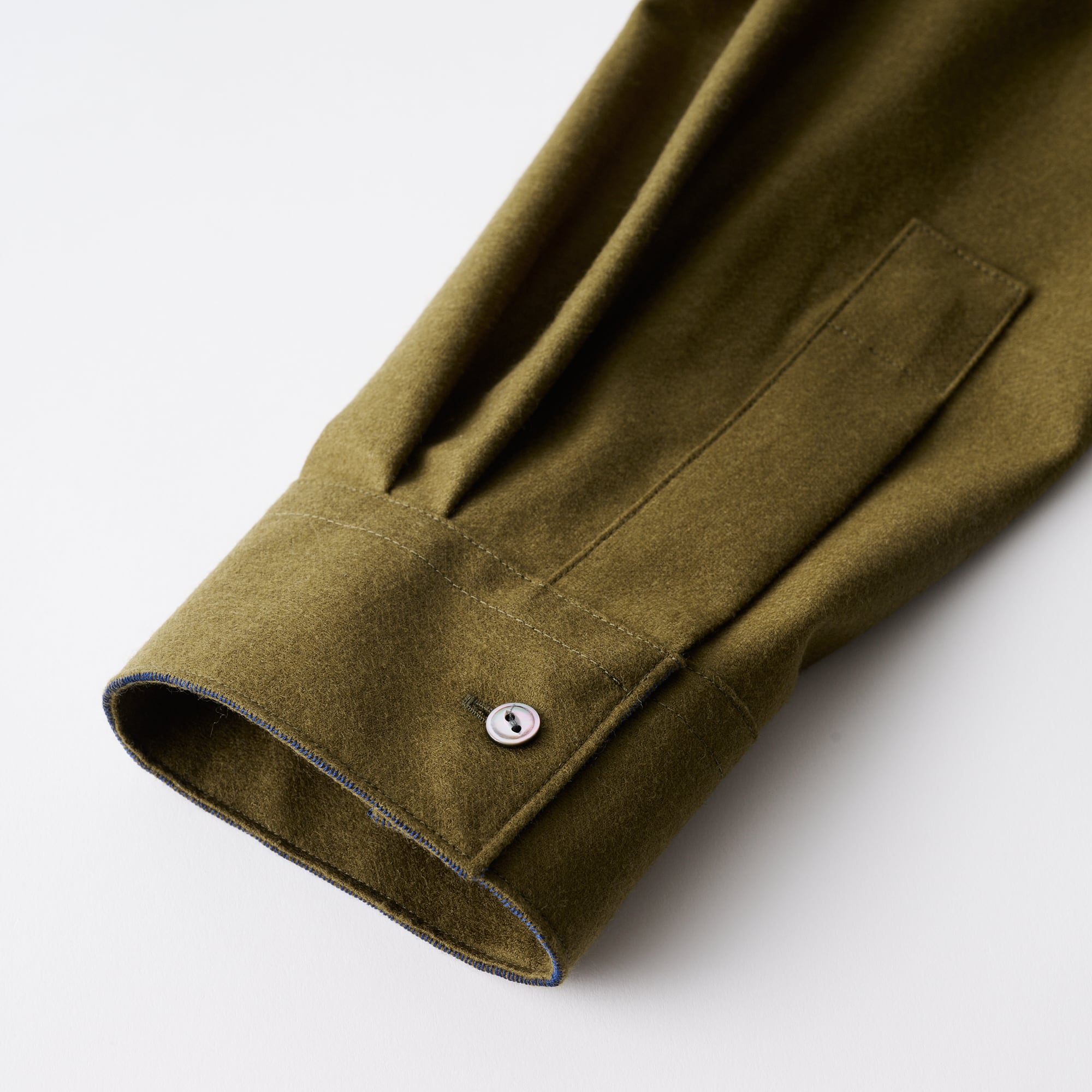 ウールのバランサーキュラー®生地を使用した、レギュラーカラーロングスリーブシャツ。