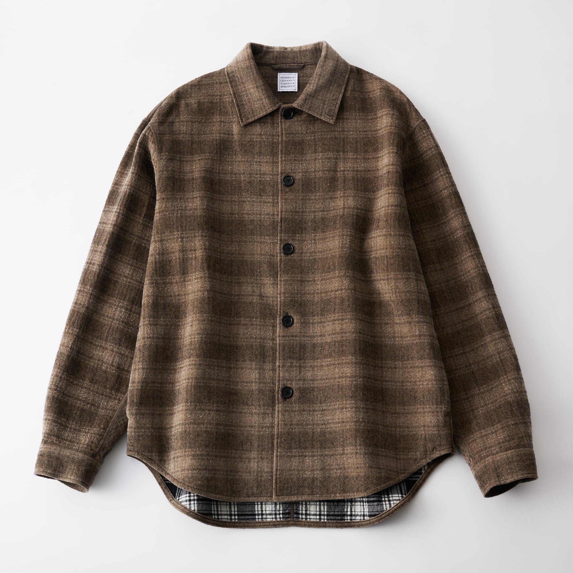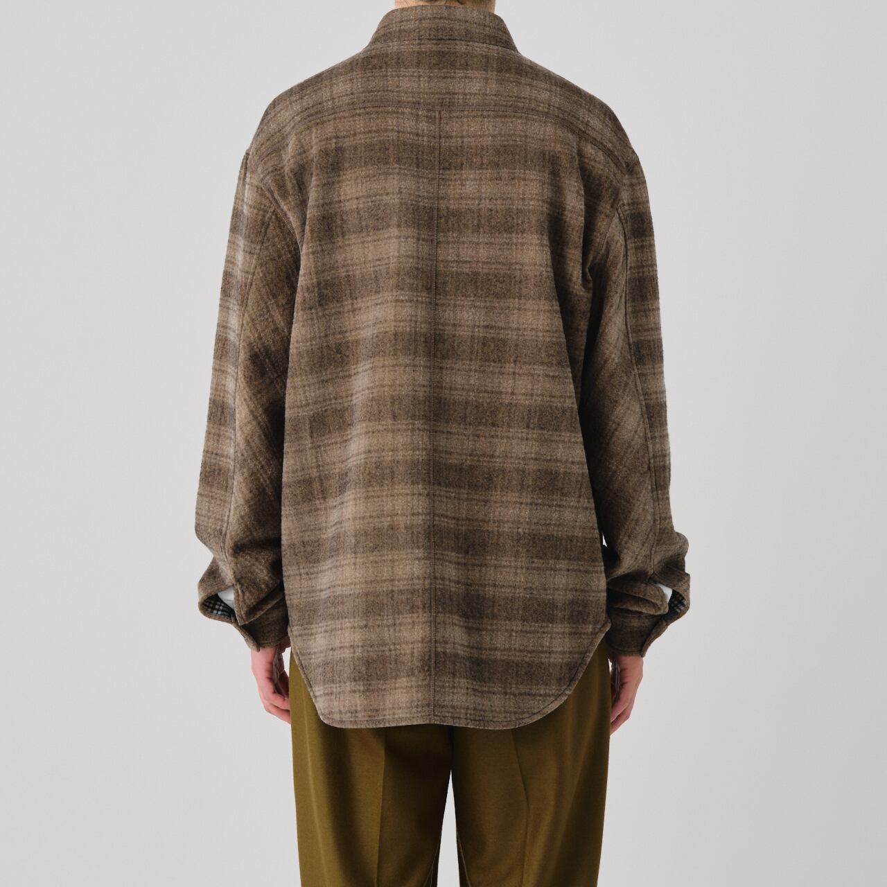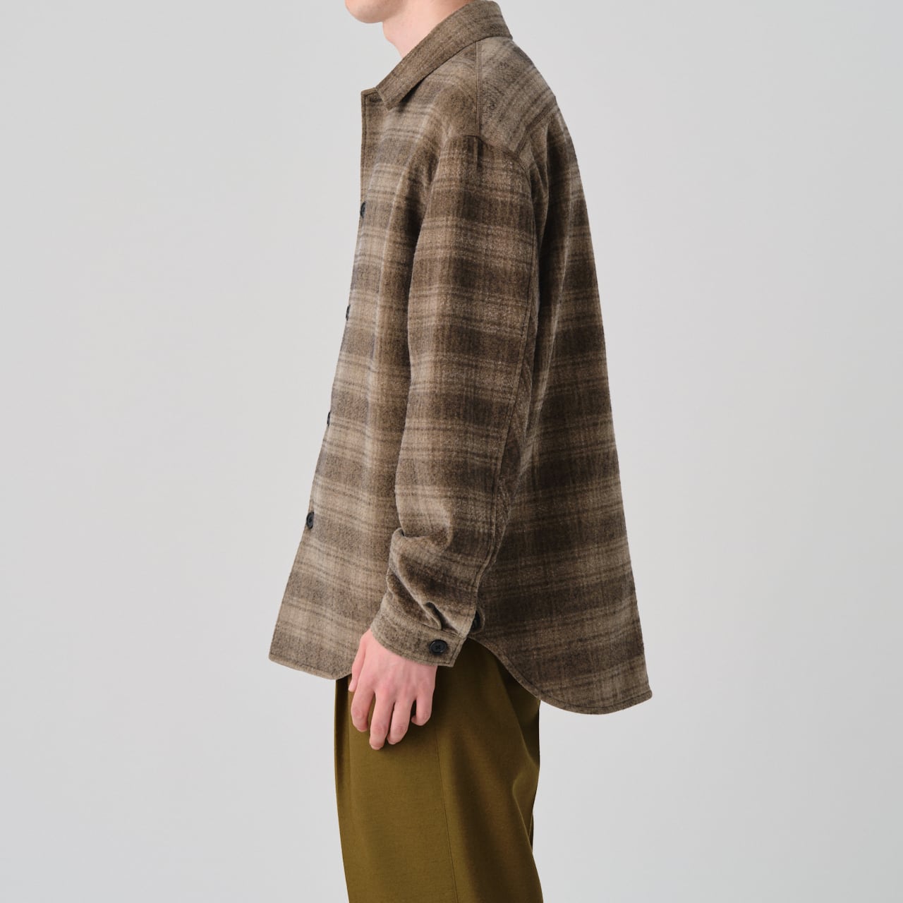 ニードルパンチ生地を使用した、オーバーシャツ。
