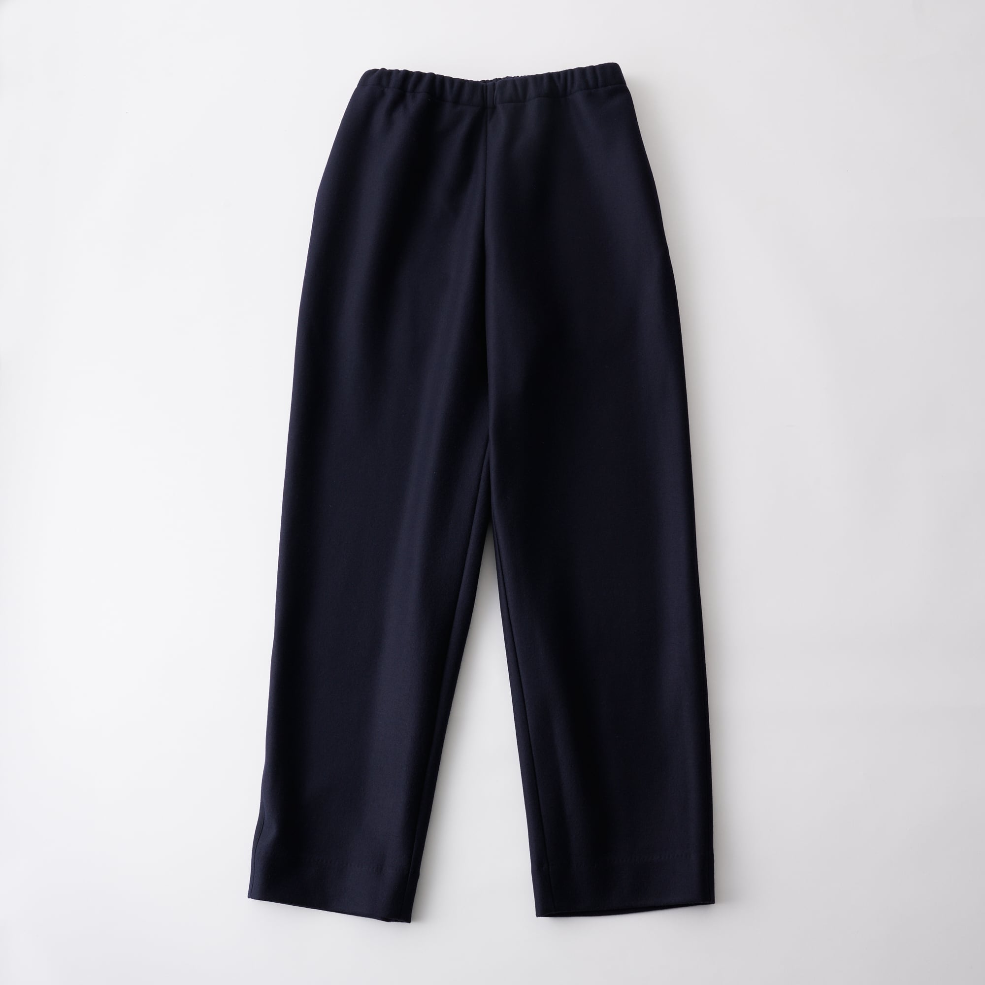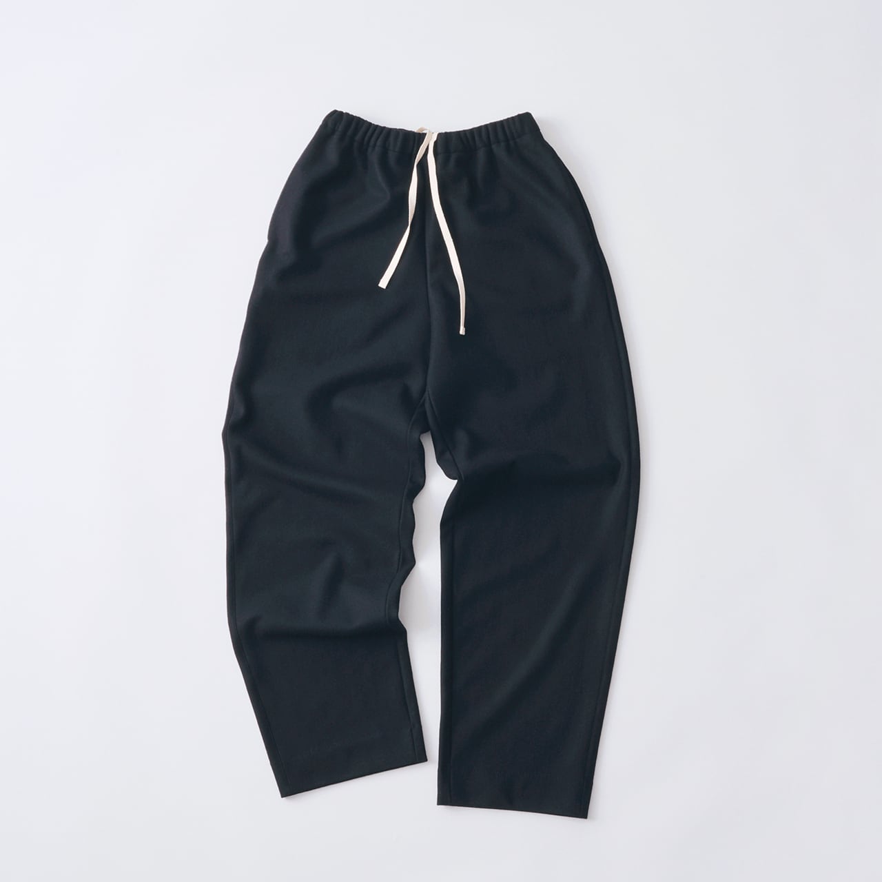 ウールのバランサーキュラー®生地を使用した、ドローストリングストレートパンツ。