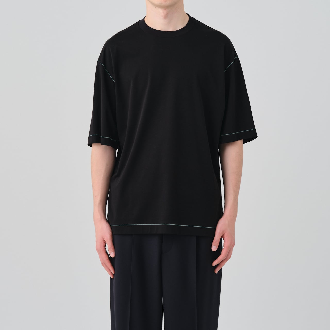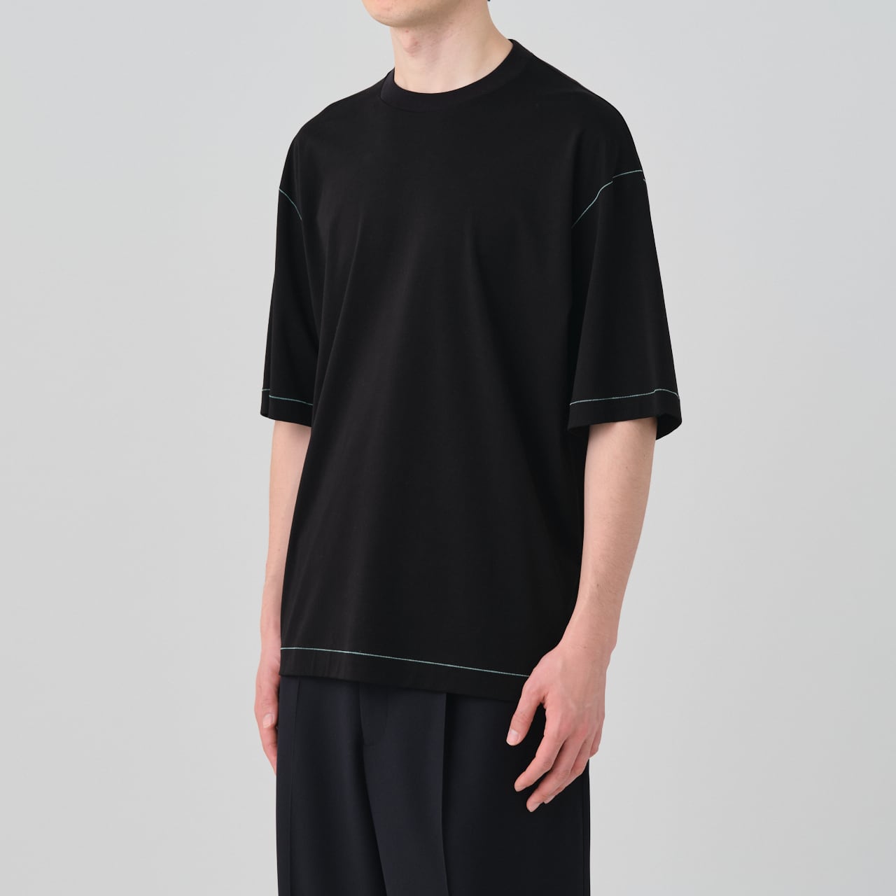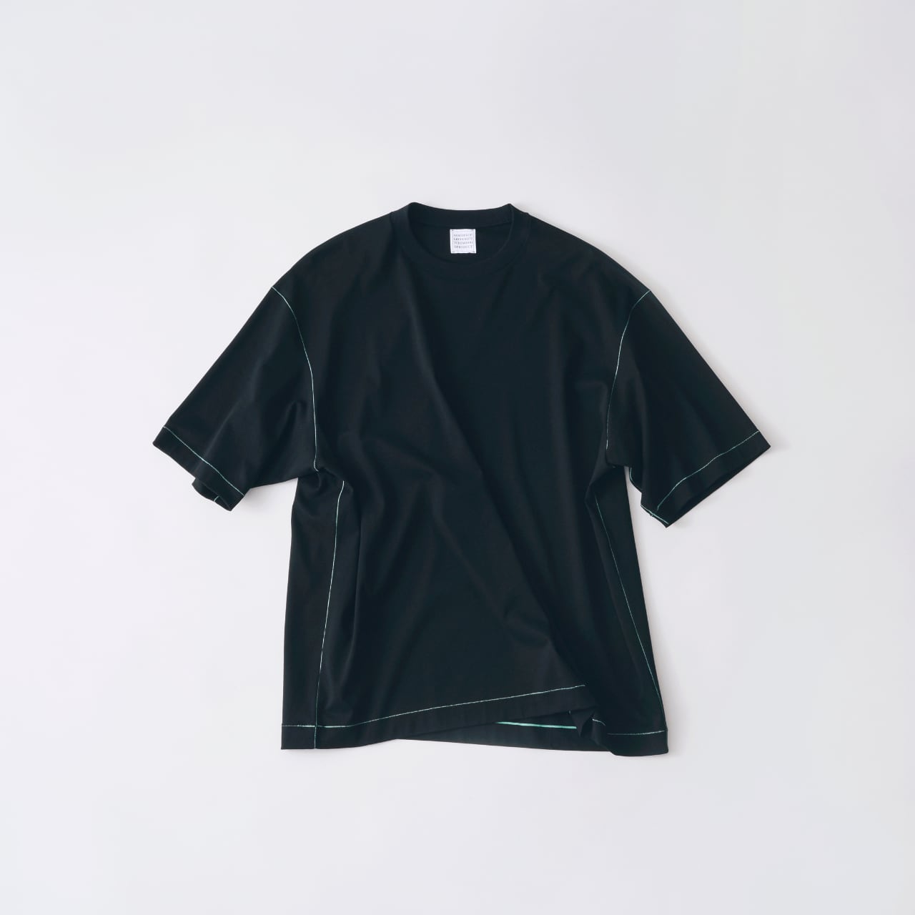 ワイドシルエットが特徴のカラーステッチ、クルーネックショートスリーブT。