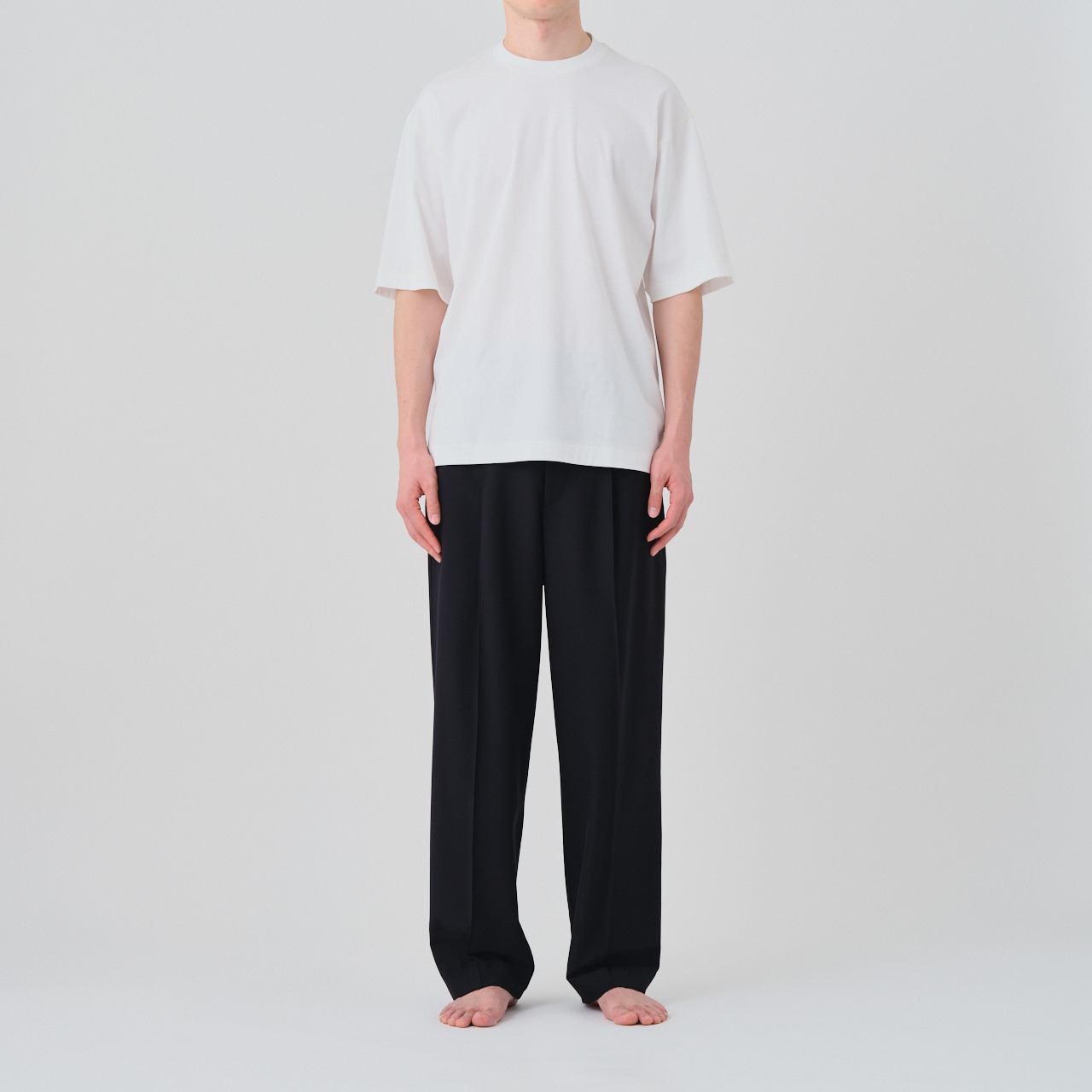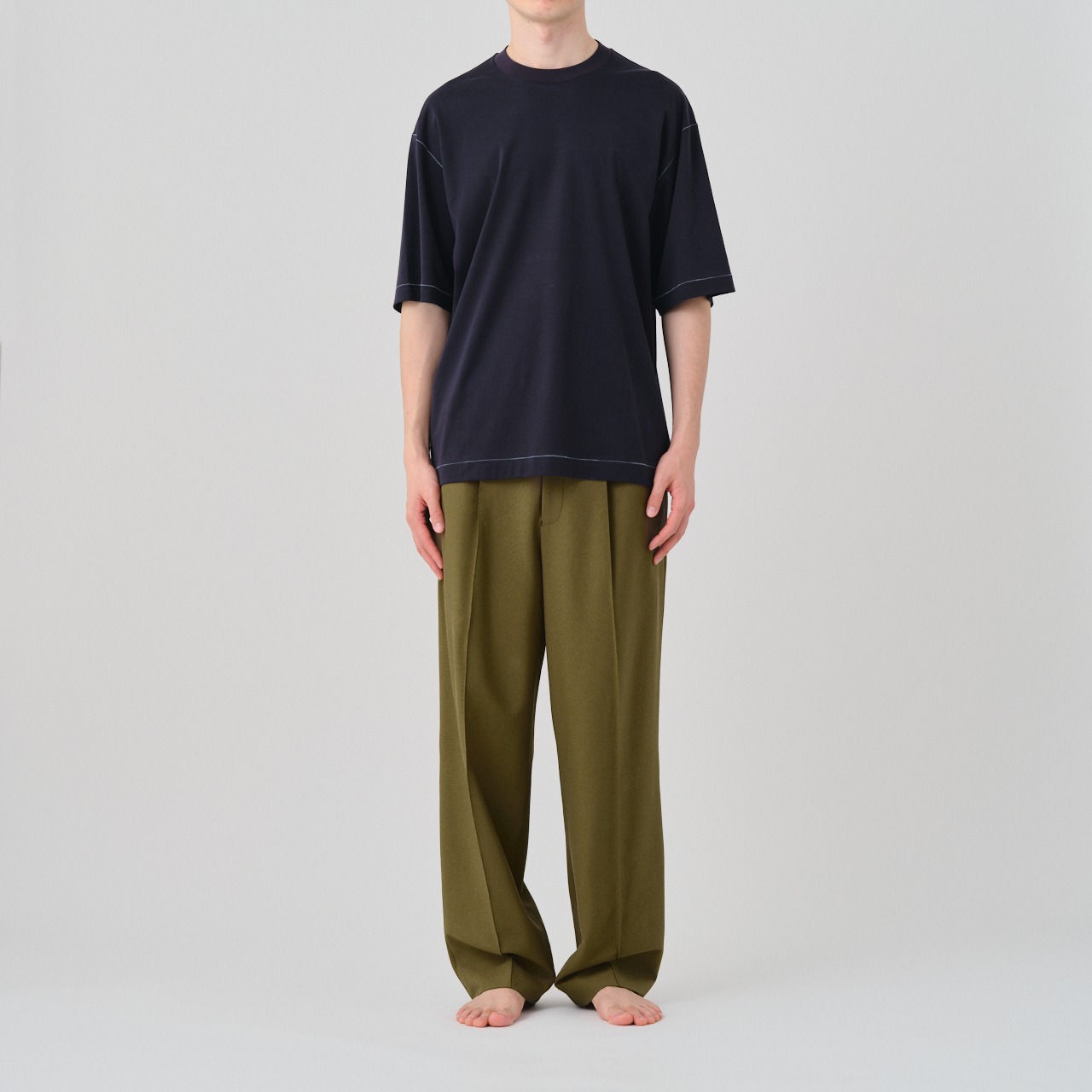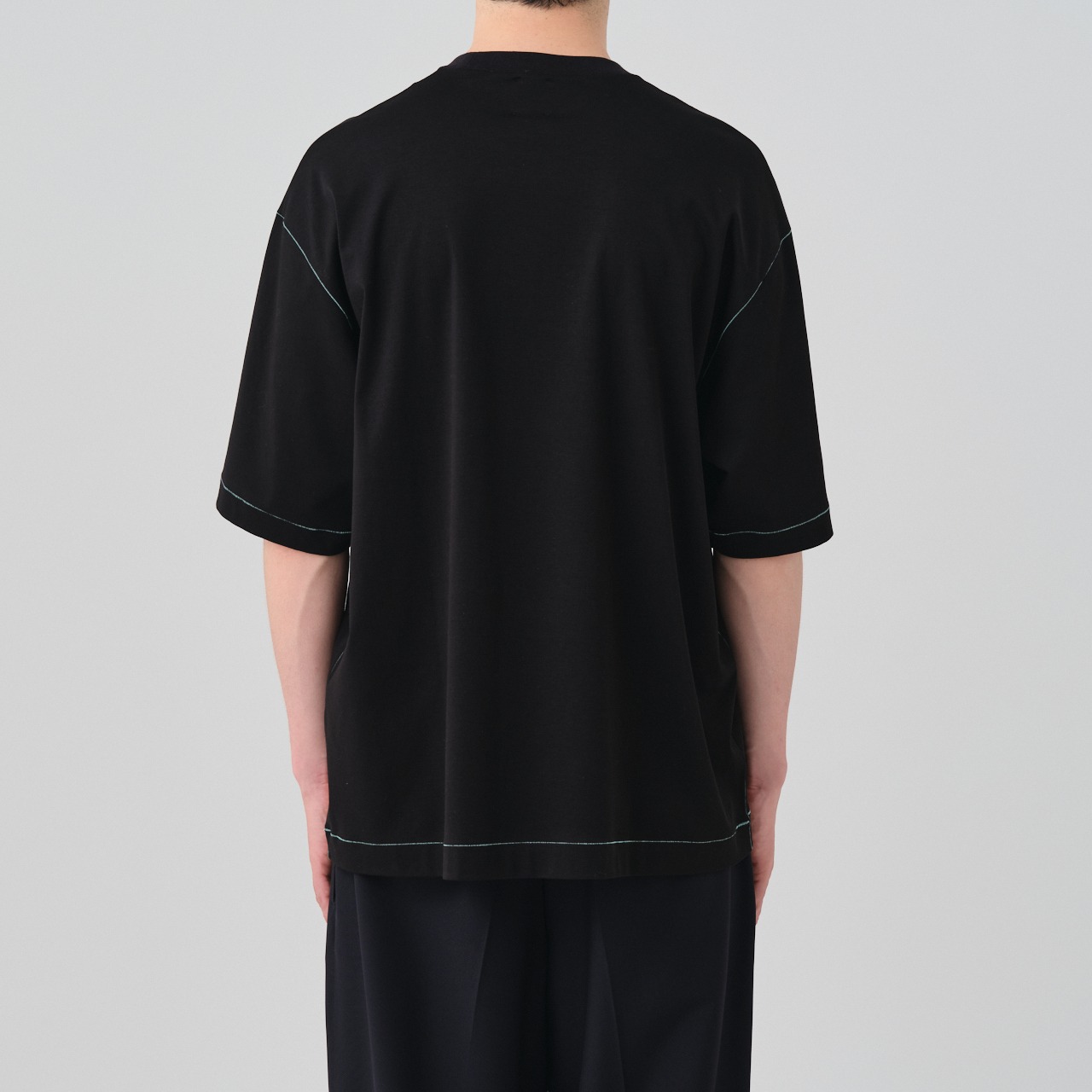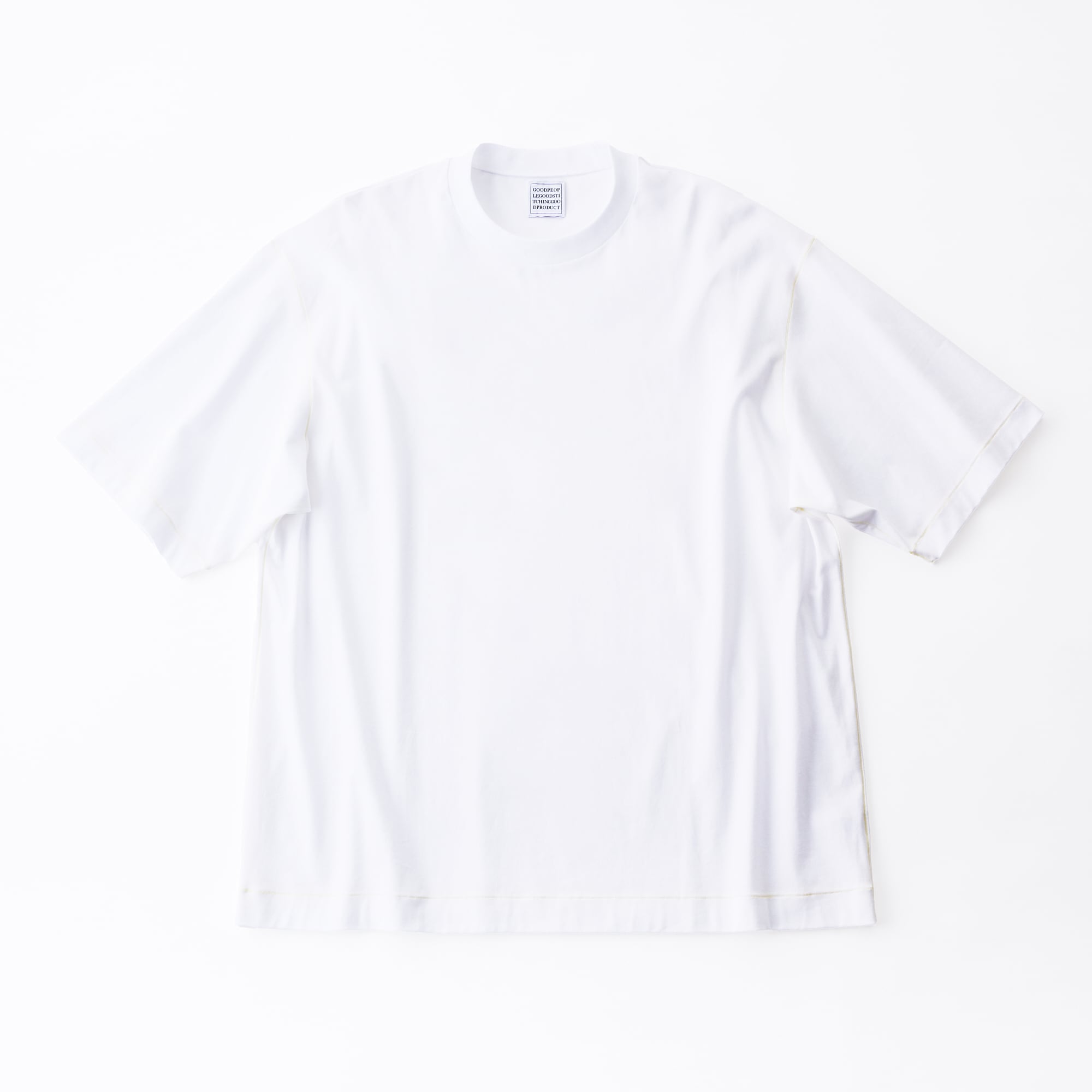 ワイドシルエットが特徴のカラーステッチ、クルーネックショートスリーブT。
