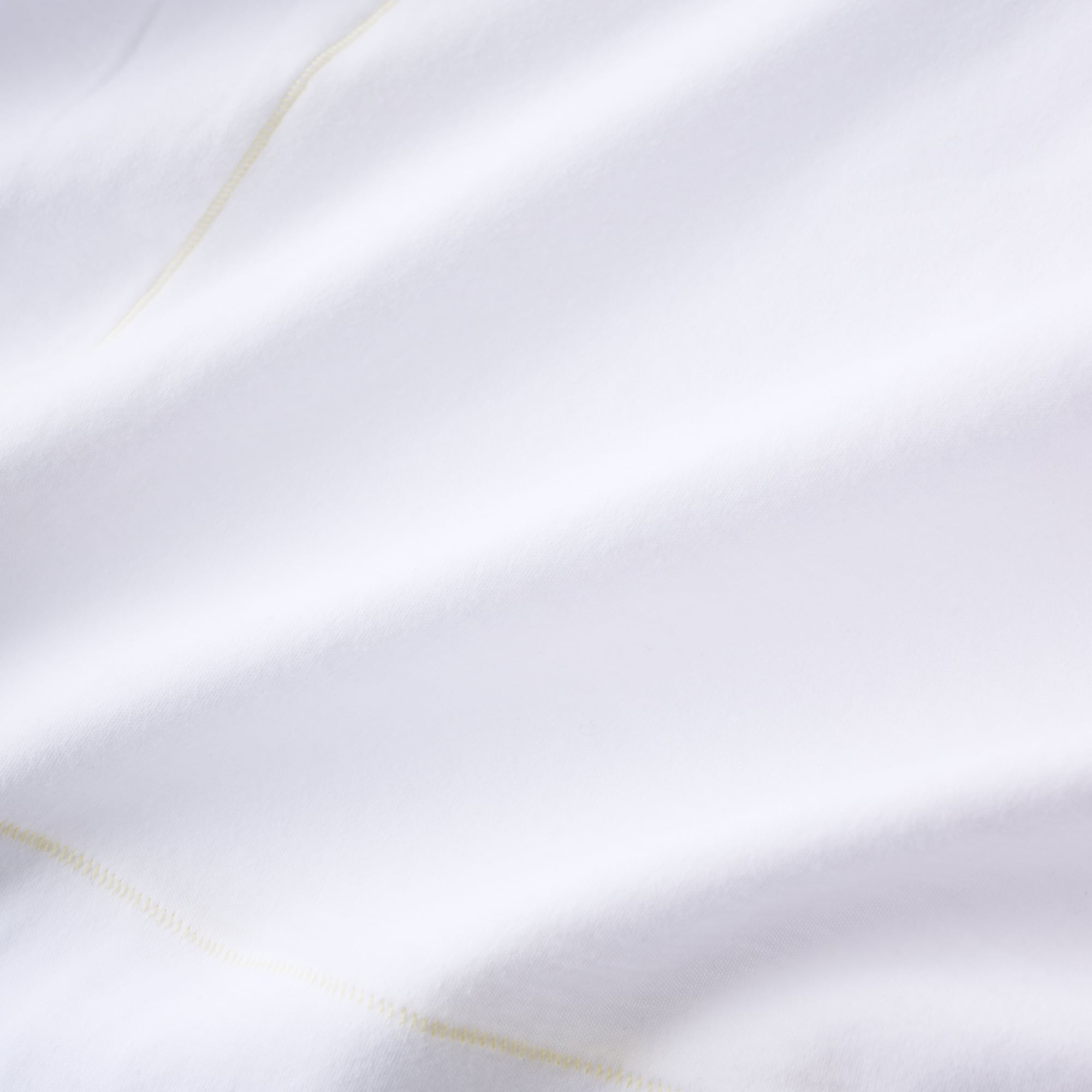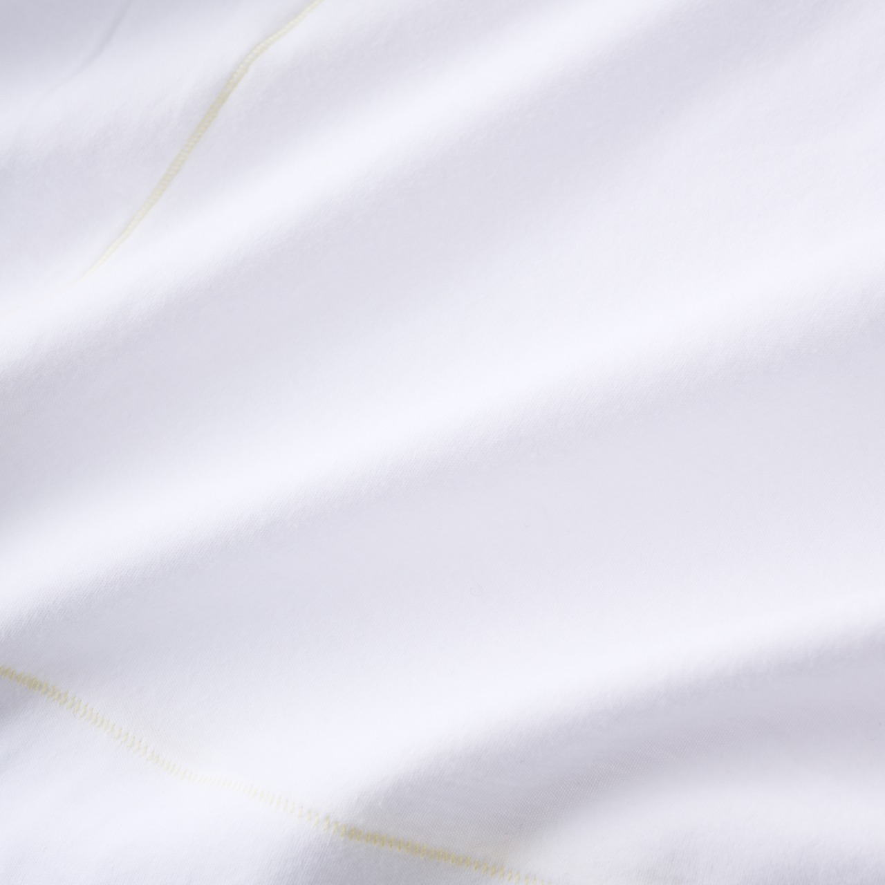 特殊ミシン(Mlock®)を使い、縫い合わせる時に必要な縫い代を極限まで細くする事で、素材の良さを100%引き出しています。見た目にも美しく、肌に直接触れる部分を最小限にし、着心地の軽さ、快適さを追求しています。