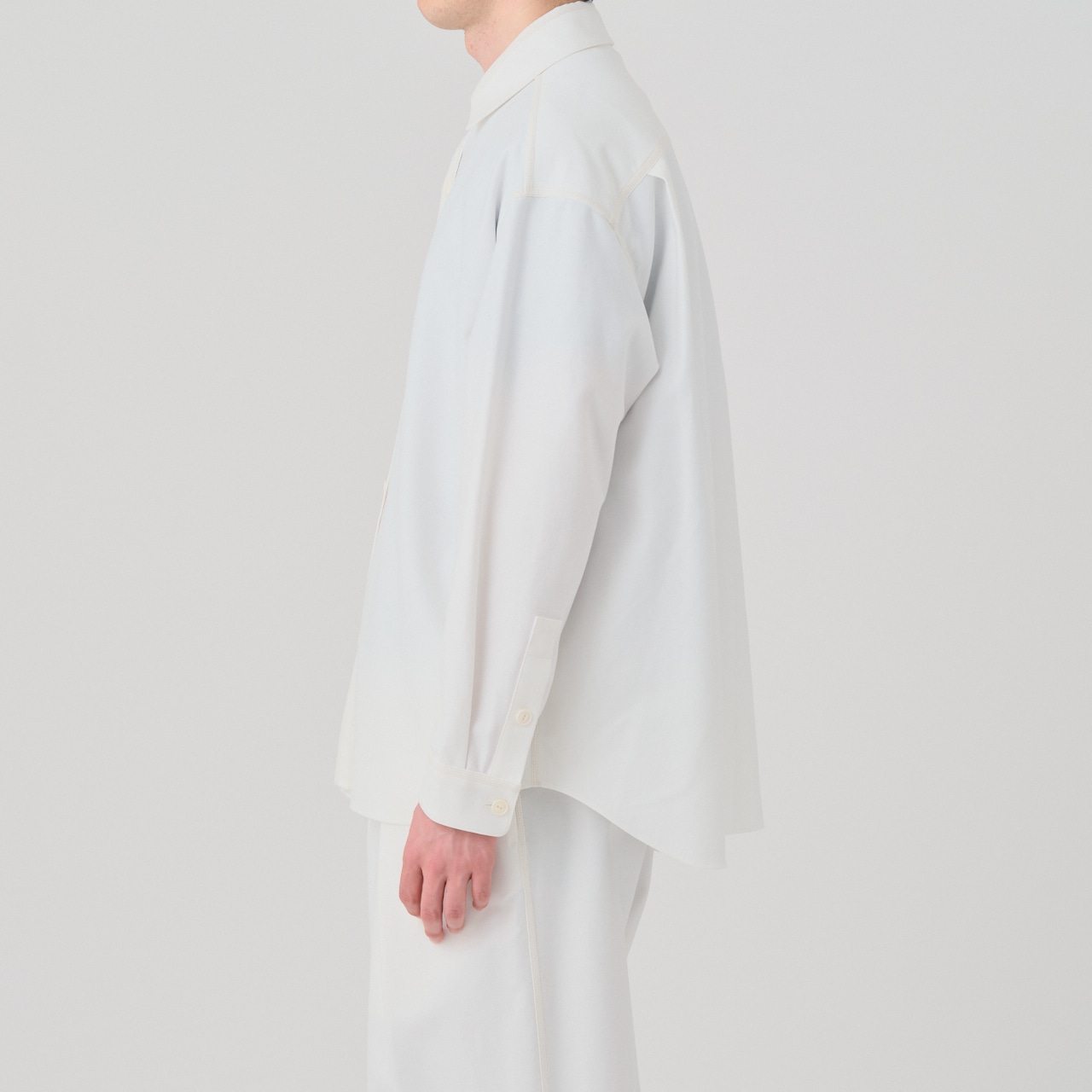 Featuring special stitching with slightly different colored, thick threads, this overshirt combines boldness and delicacy and can also be worn as a set with the 01-01-1828 Color Stitch One Tuck Straight Pants.