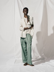 The fabric, finished to be elegant, supple, comfortable, and lightweight, is a cotton twill material unlike any seen before. By using a special sewing machine (Mlock®) and minimizing the seam allowance to the utmost, the quality of the material is fully brought out. It is not only visually beautiful but also designed for lightness and comfort.