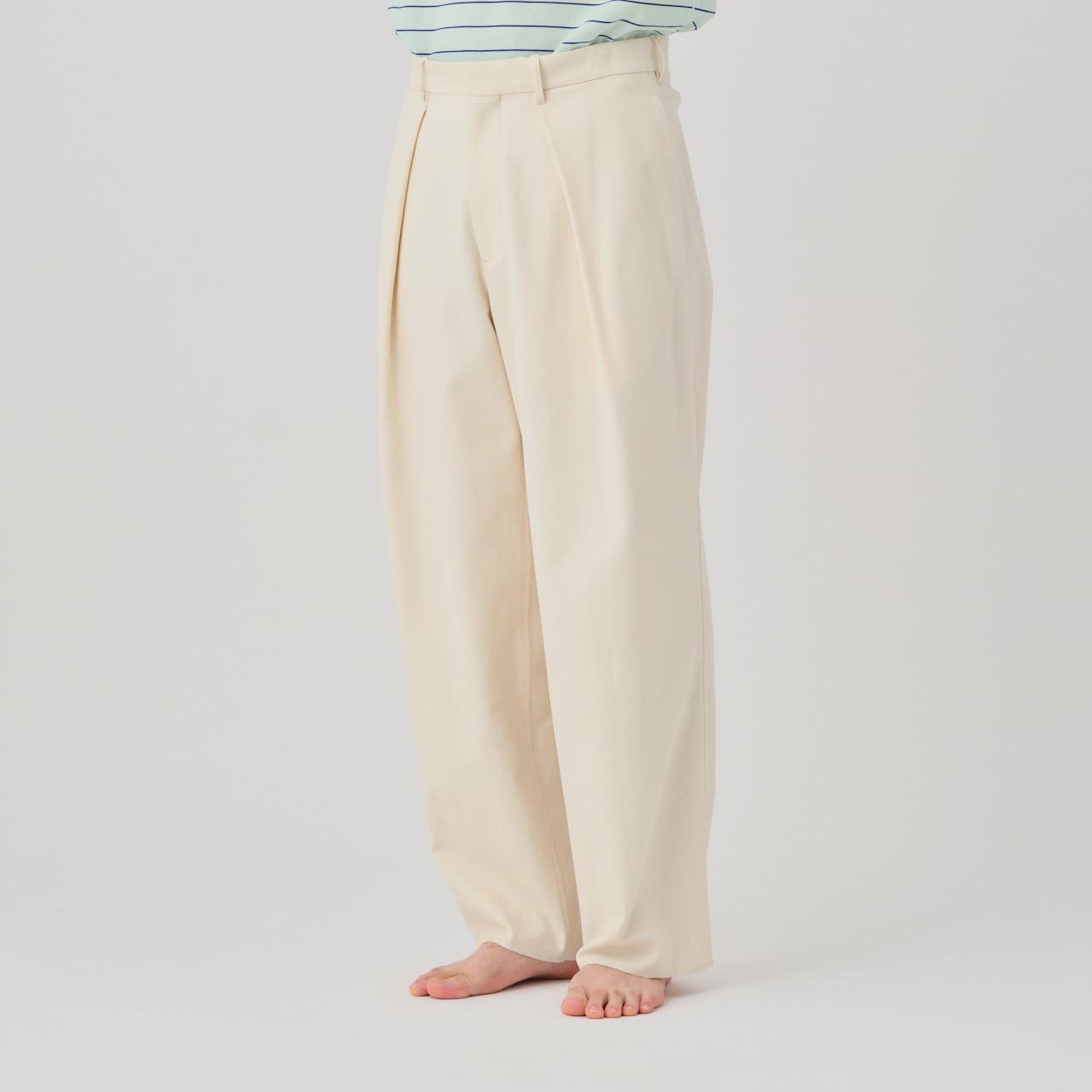 コットンのバランサーキュラー®生地を使用した、ワンタックストレートパンツ。