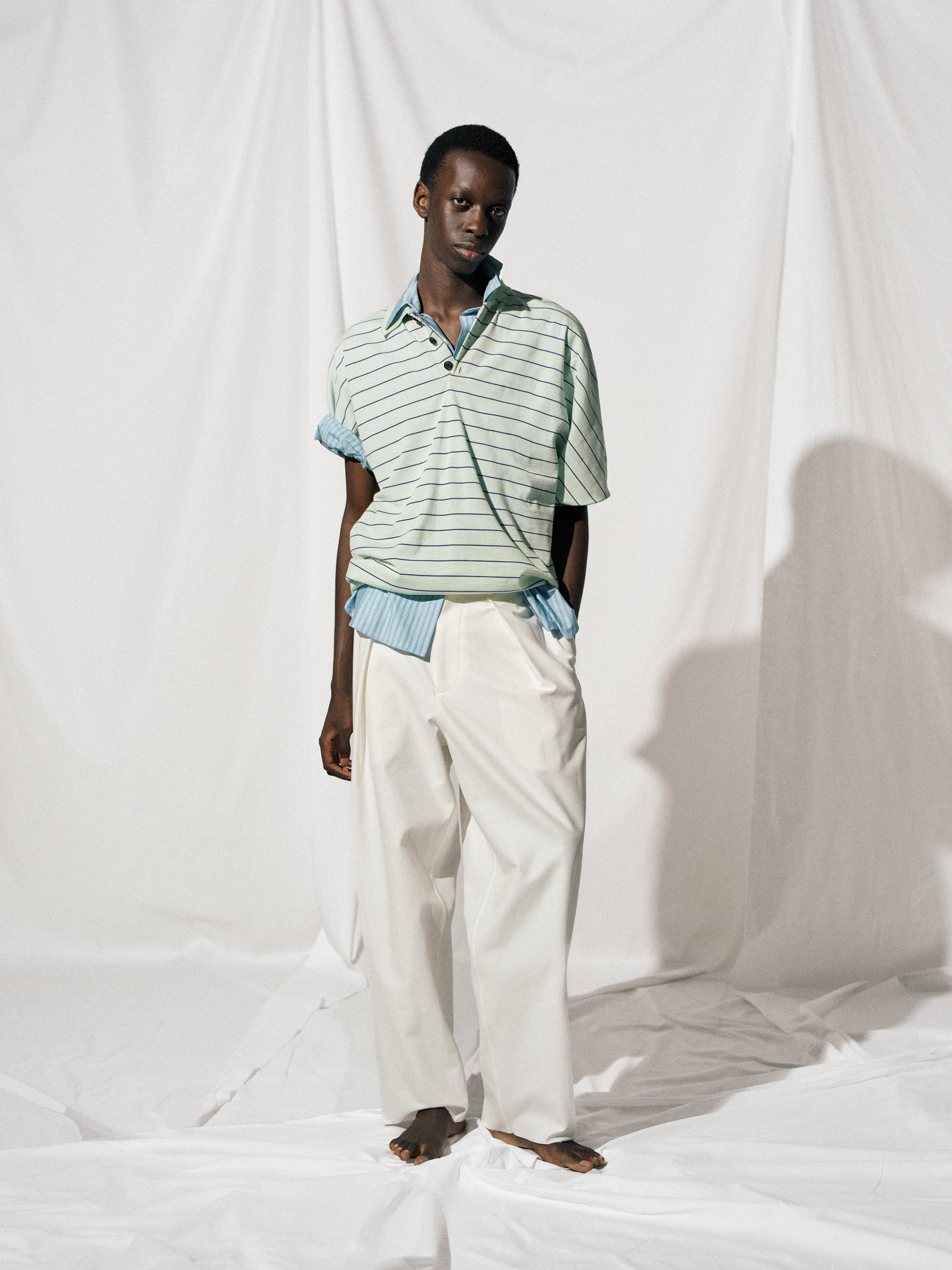 One-tuck straight pants made with cotton Balancer Circular® fabric.