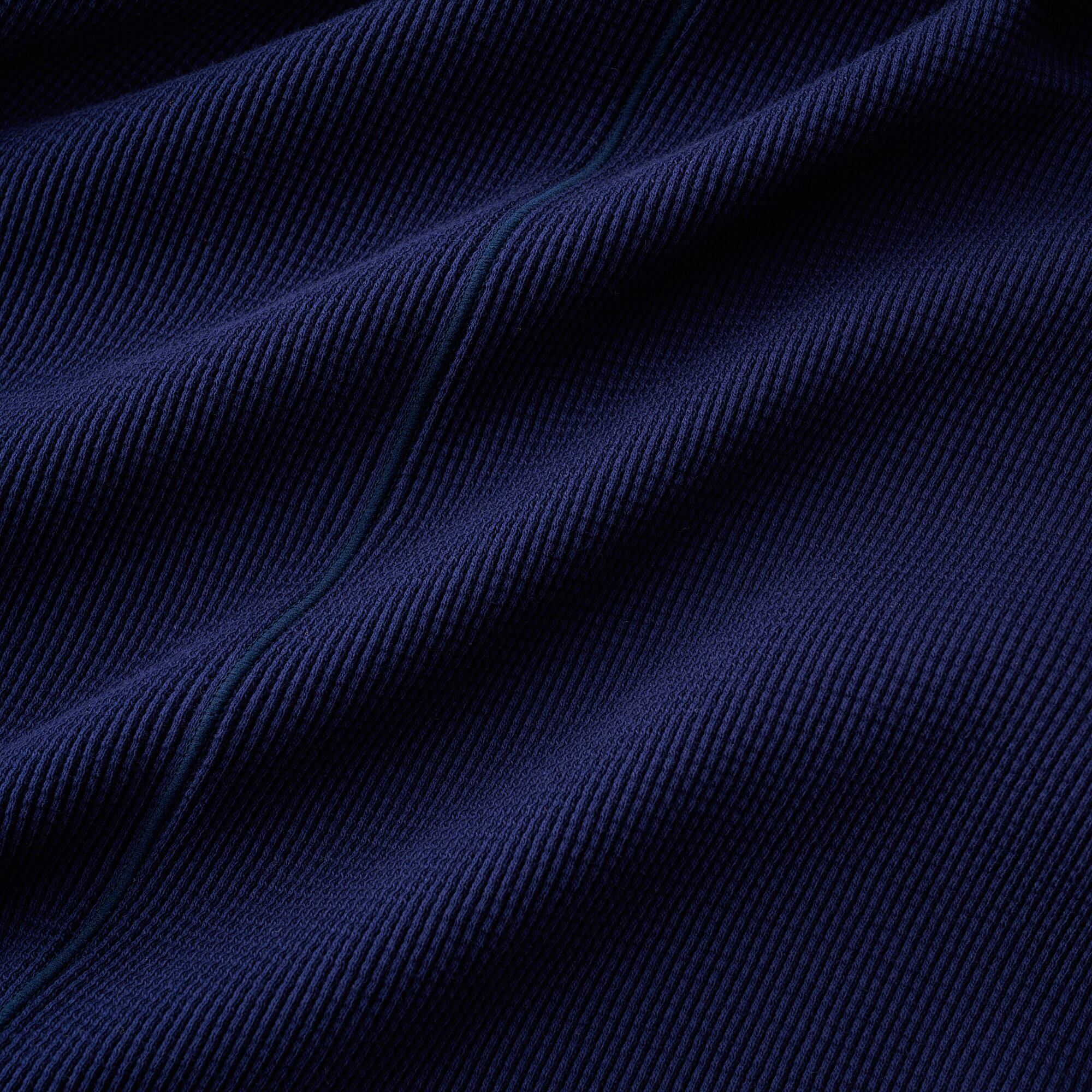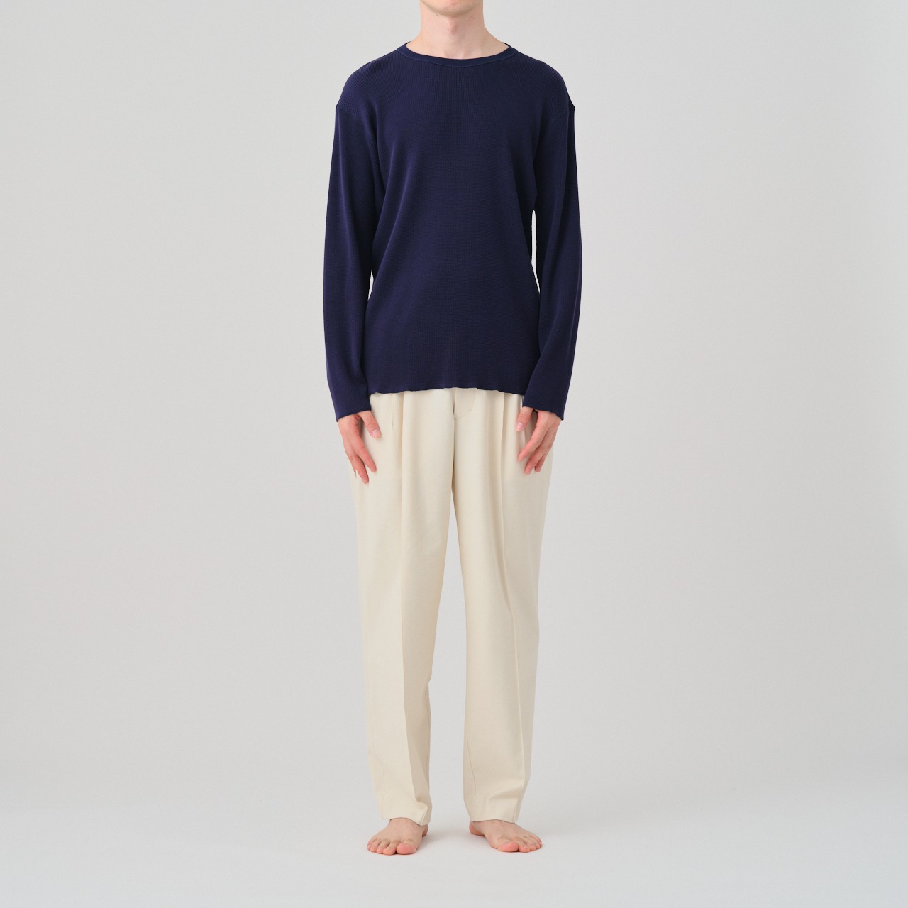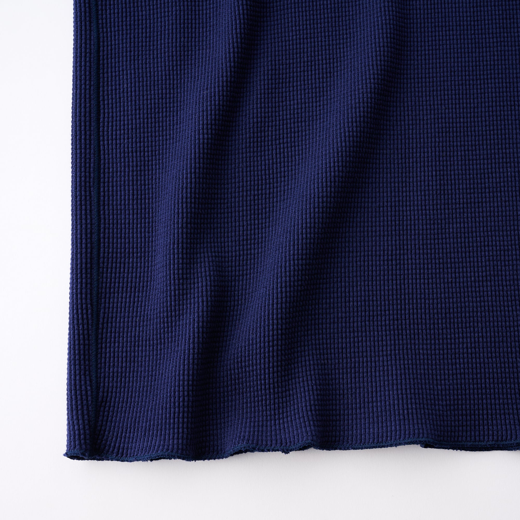 Using rare organic long-staple cotton and yarn with the perfect thickness of 48/2, it provides just the right thickness for a thermal while maintaining a light and airy texture. Additionally, it features a soft touch against the skin, thanks to the low-pile, gently twisted yarn.