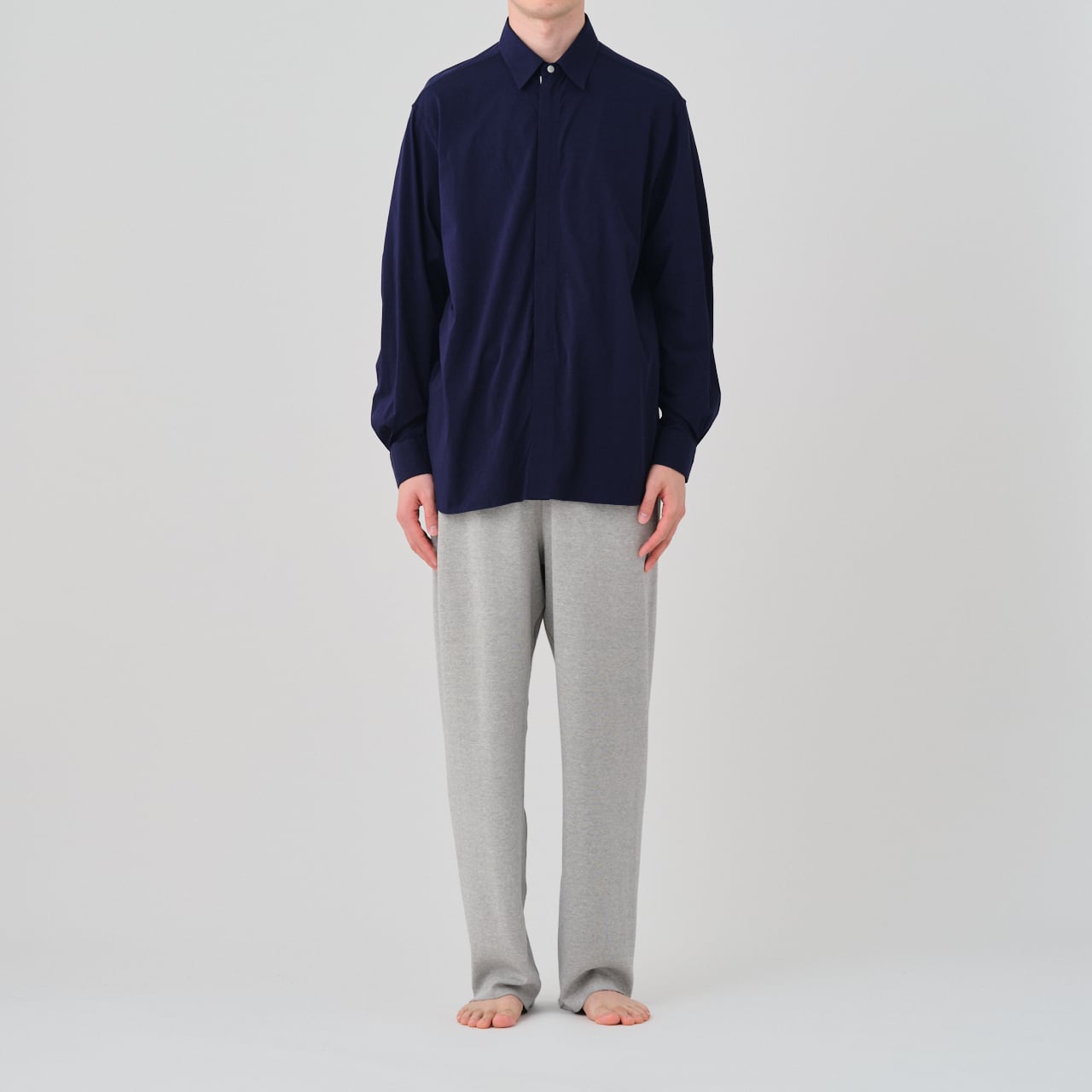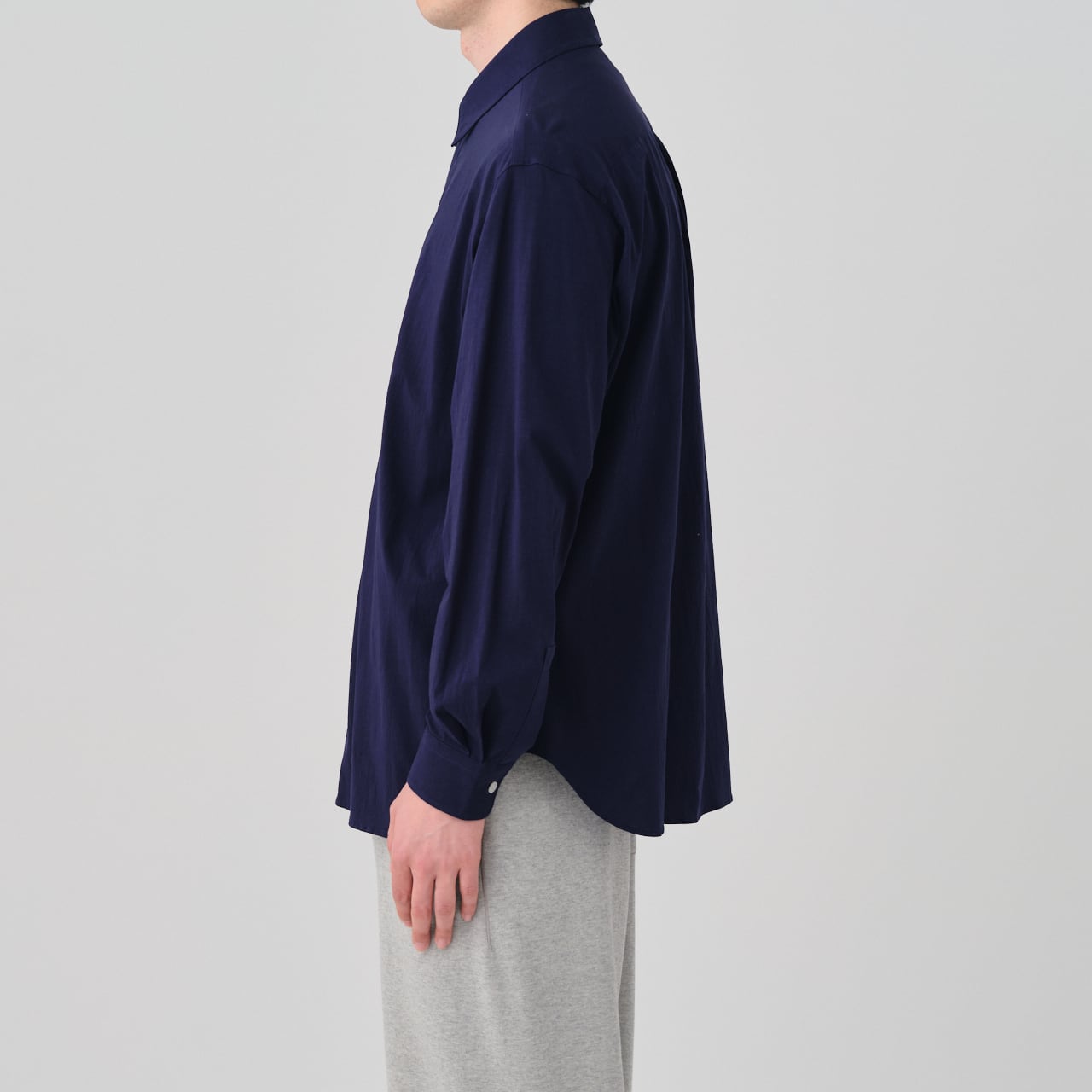 The fabric, which is made by a 46-gauge knitting machine, which is rare in Japan, has an elegant luster unique to fine counts, and is characterized by its cloth-like firmness and comfortable elasticity unique to cut-and-sew.