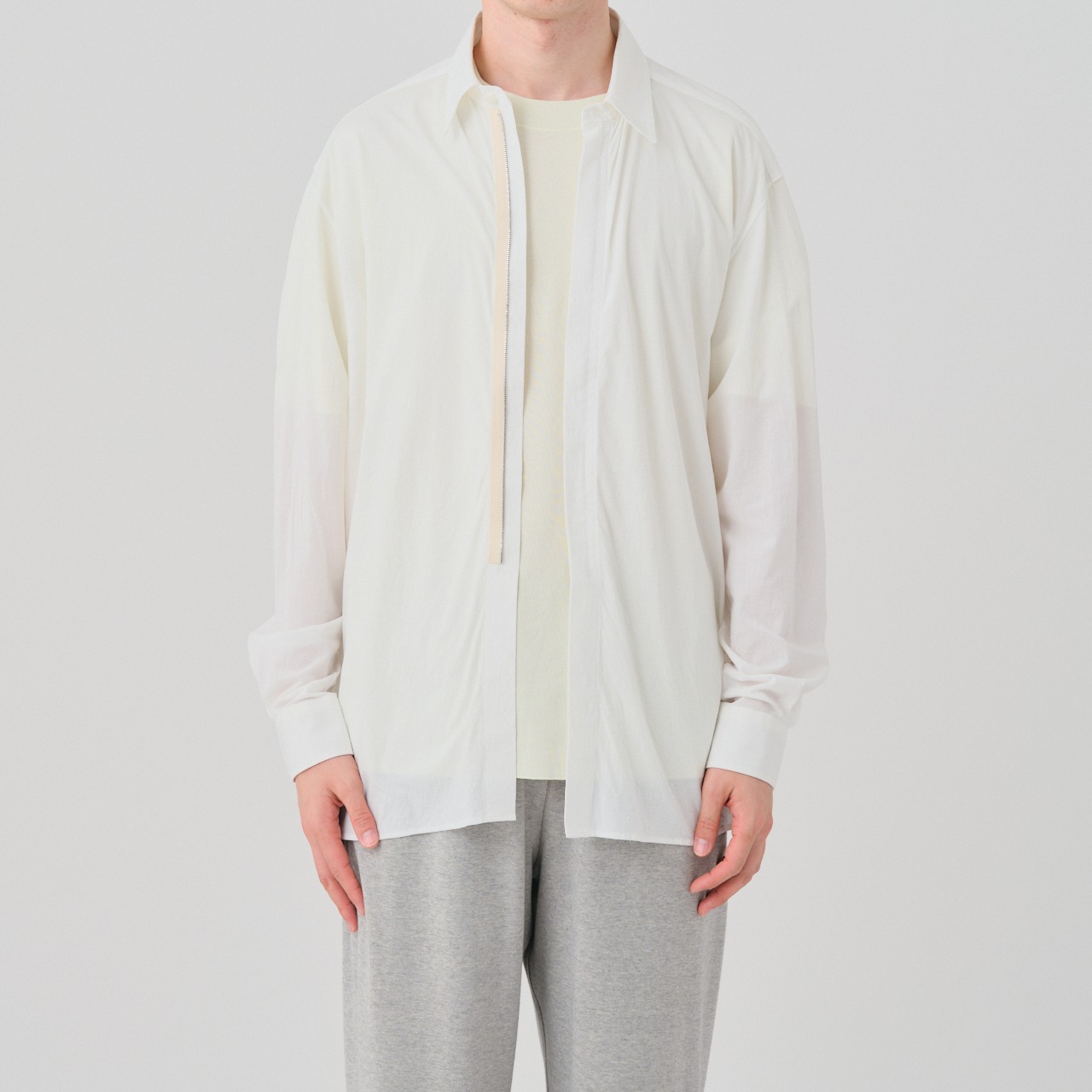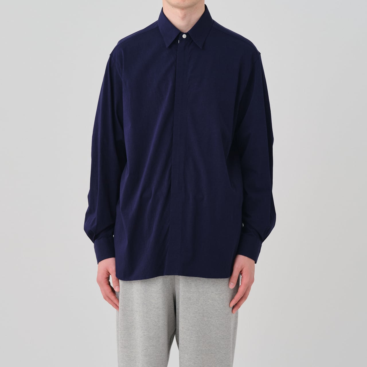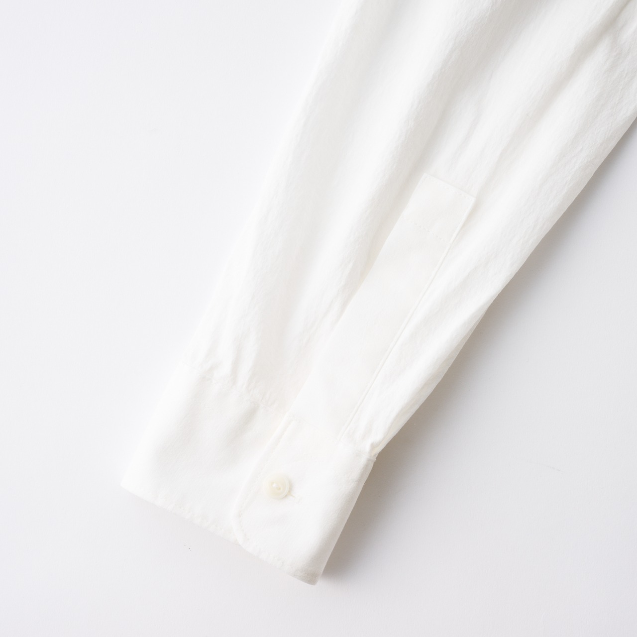生地に塩縮加工を施すことで、洗いざらしのシャツ地のようなナチュラルなシワ感をだしています。
