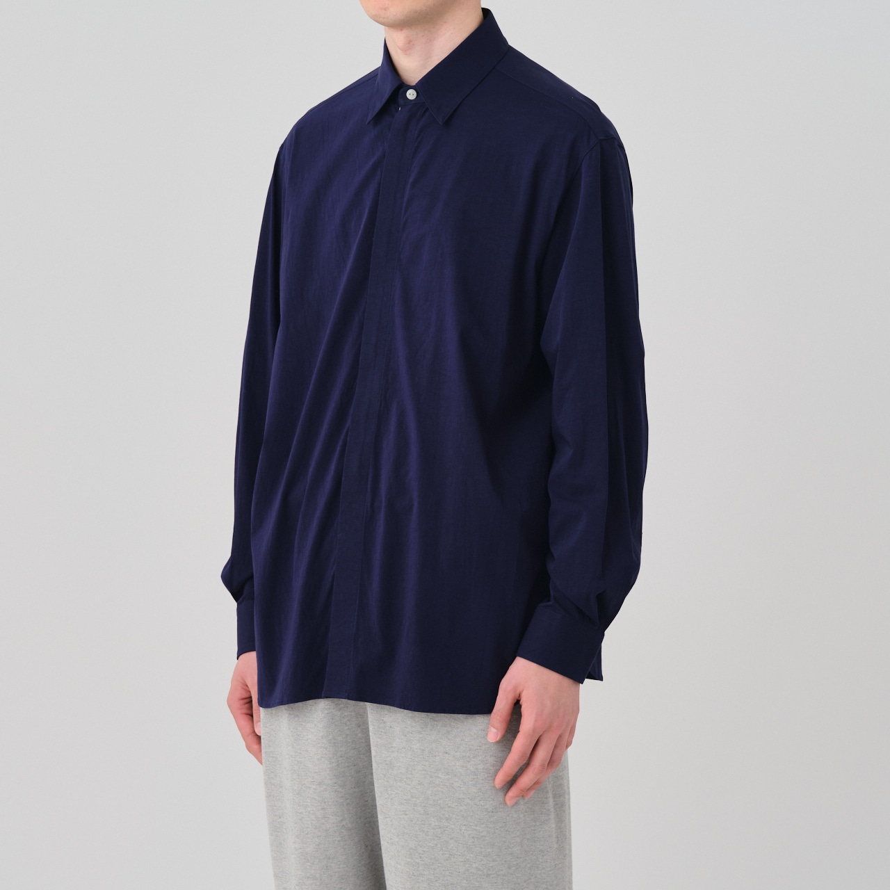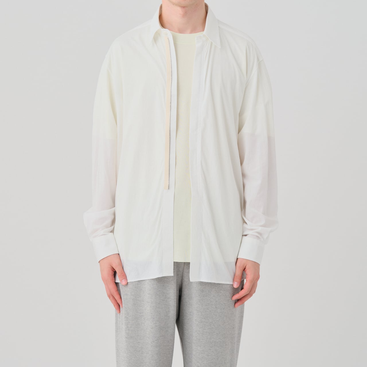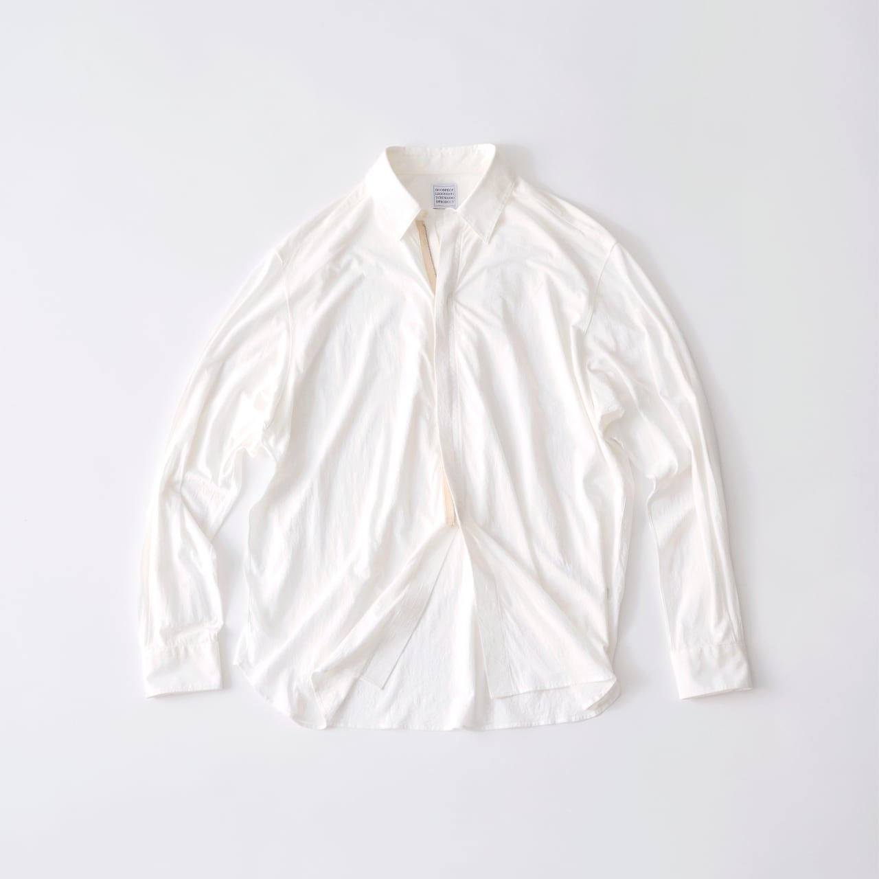 生地に塩縮加工を施すことで、洗いざらしのシャツ地のようなナチュラルなシワ感をだしています。