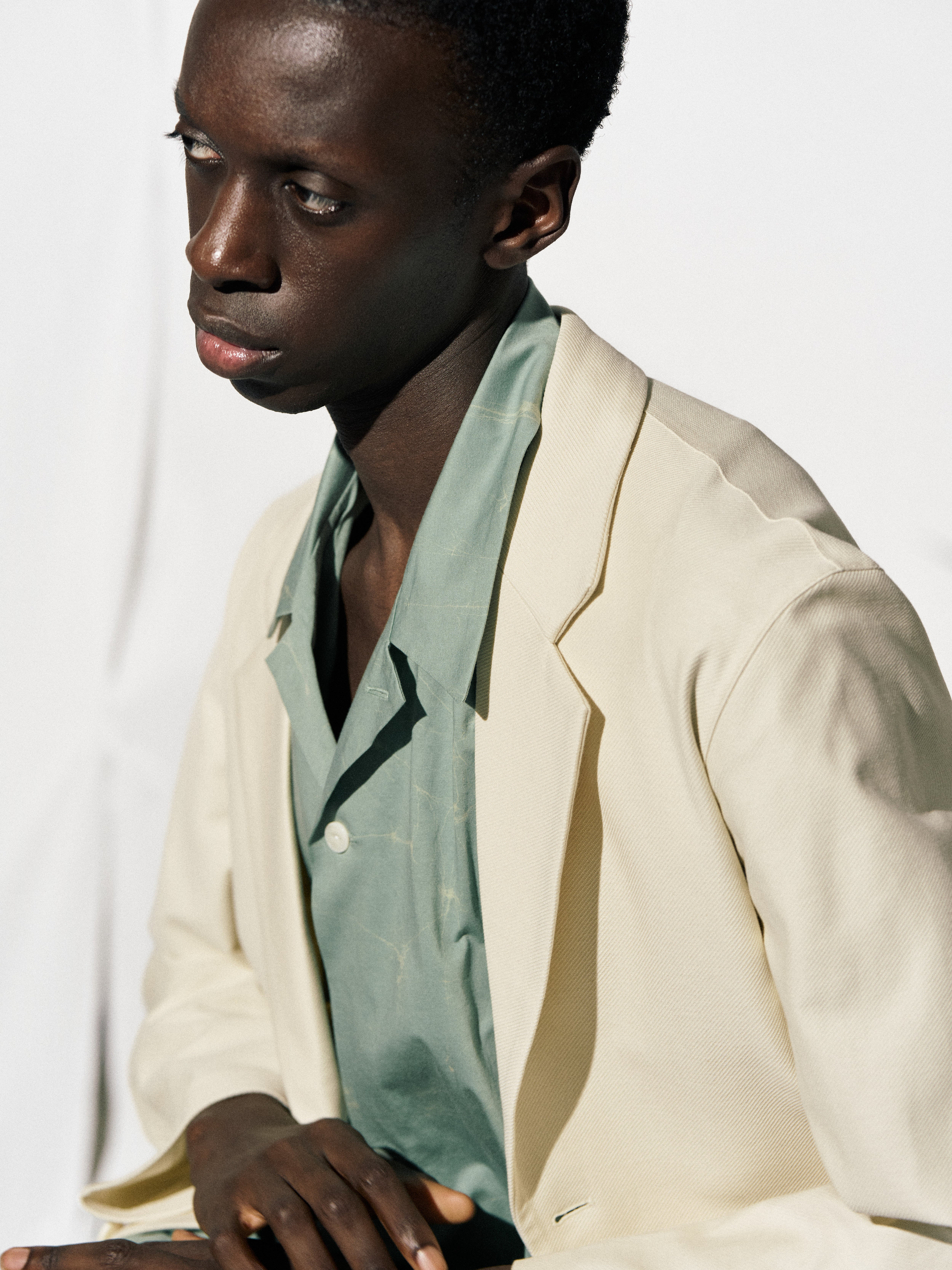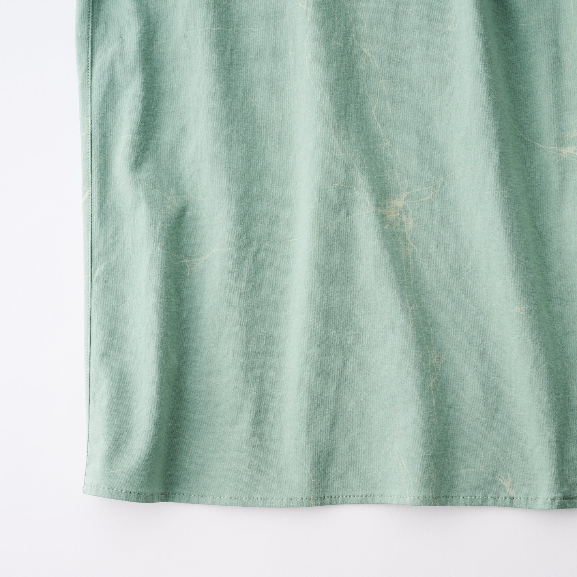 生地に塩縮加工を施すことで、洗いざらしのシャツ地のようなナチュラルなシワ感をだしています。