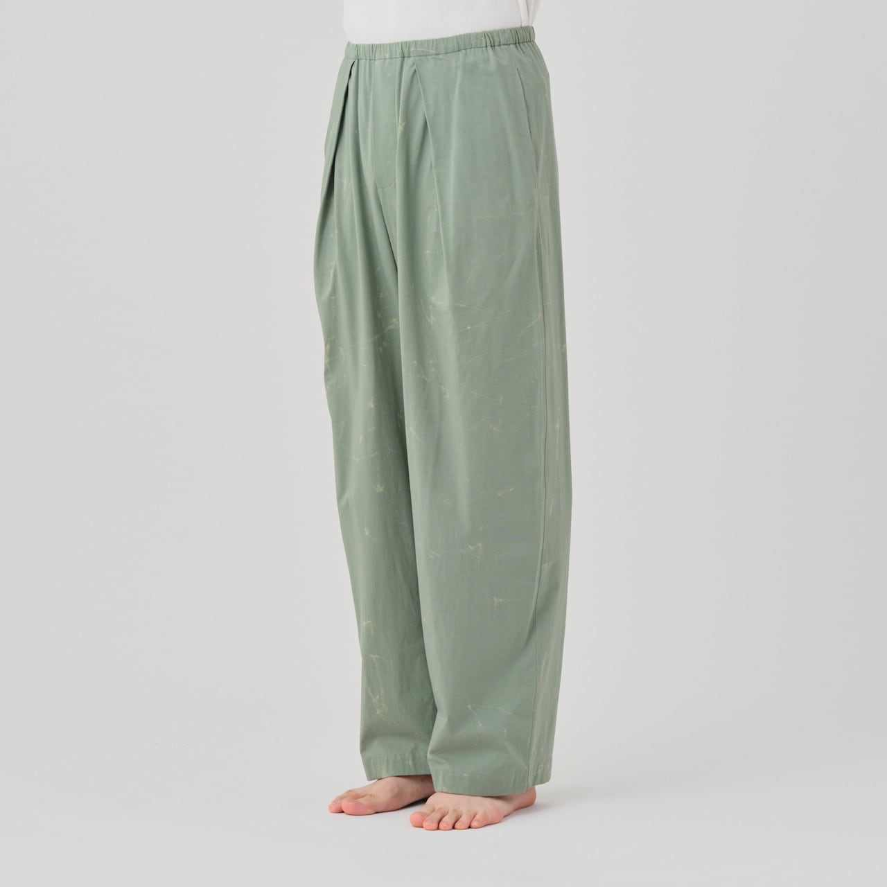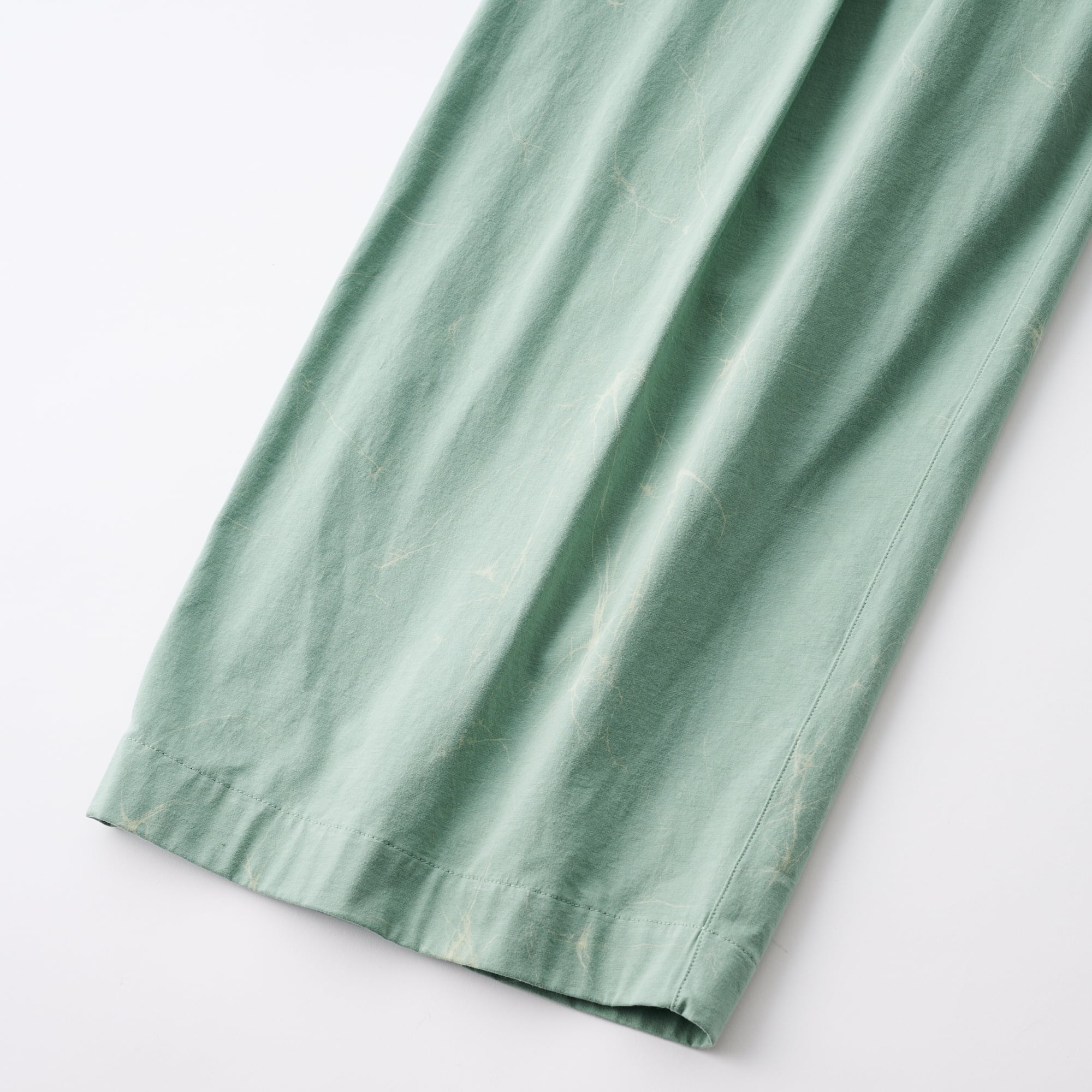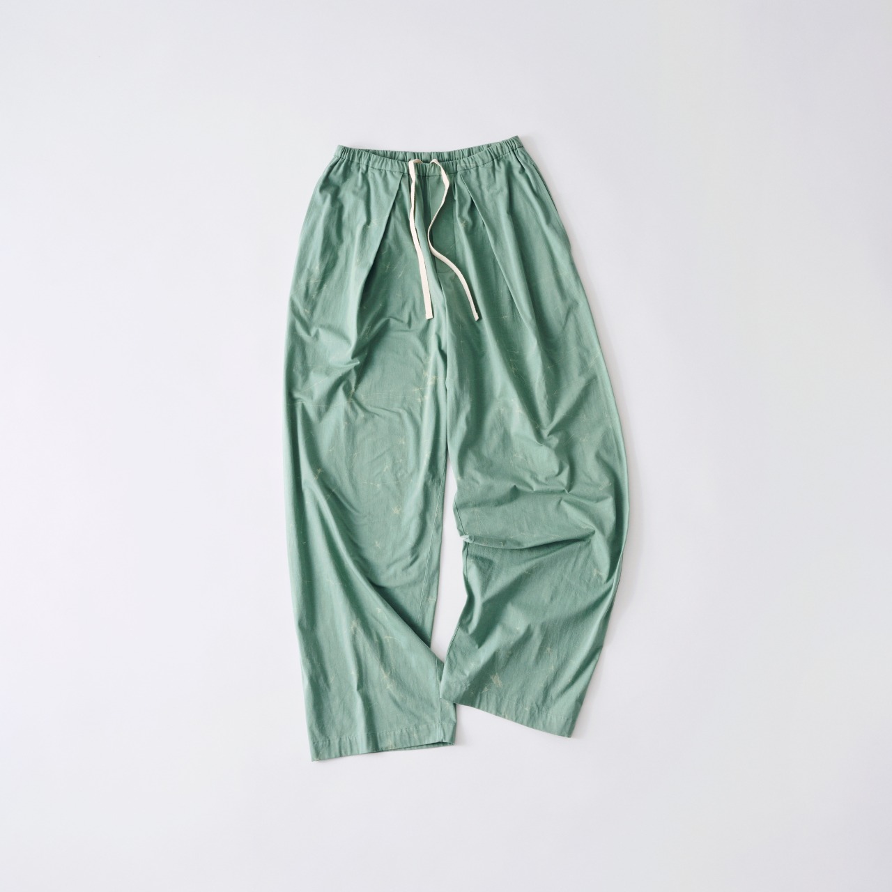 Traditional Japan technique, relaxed silhouette with wax ass dyeing, easy pants.