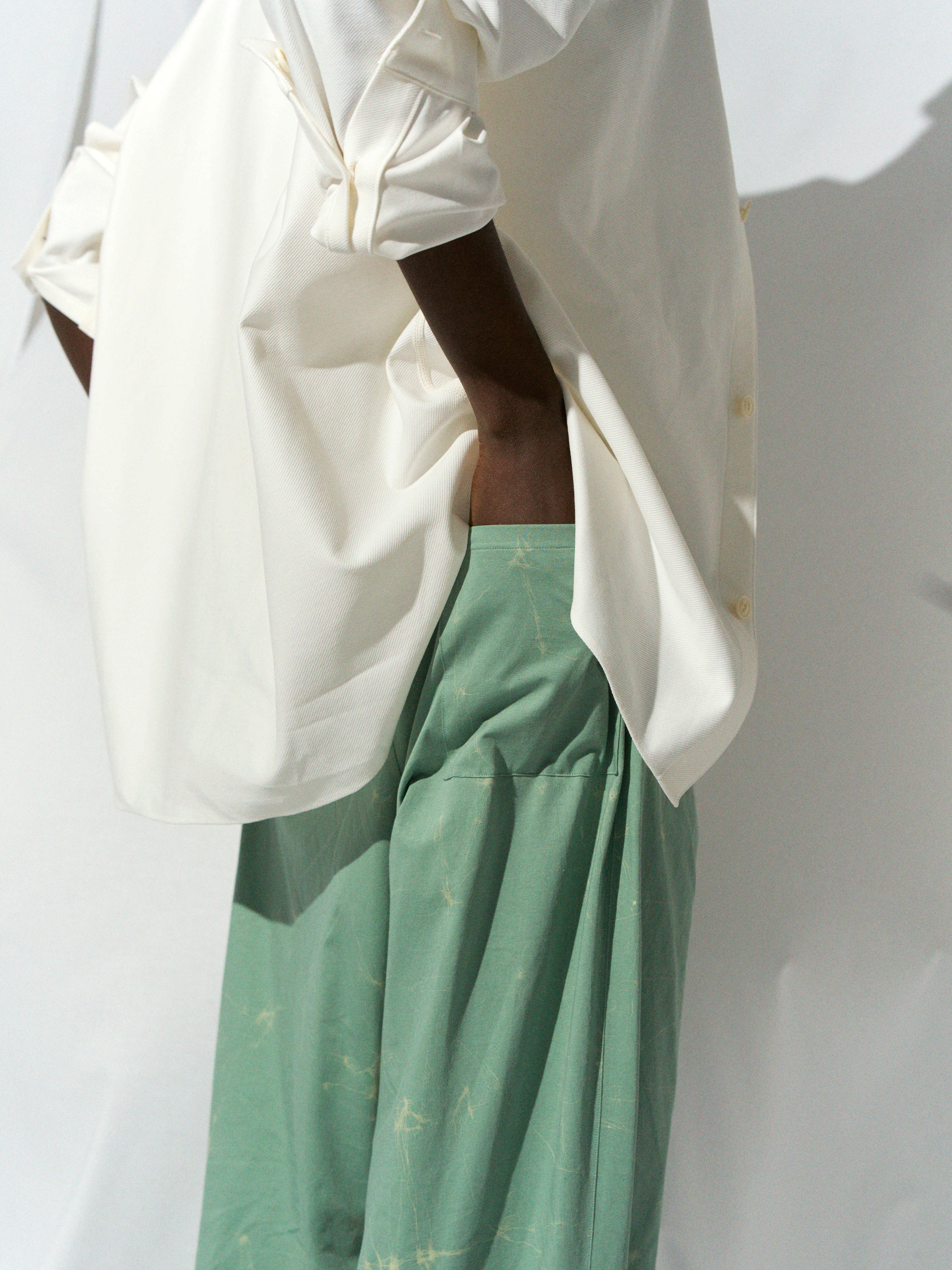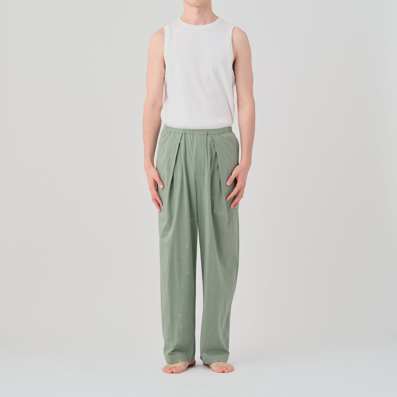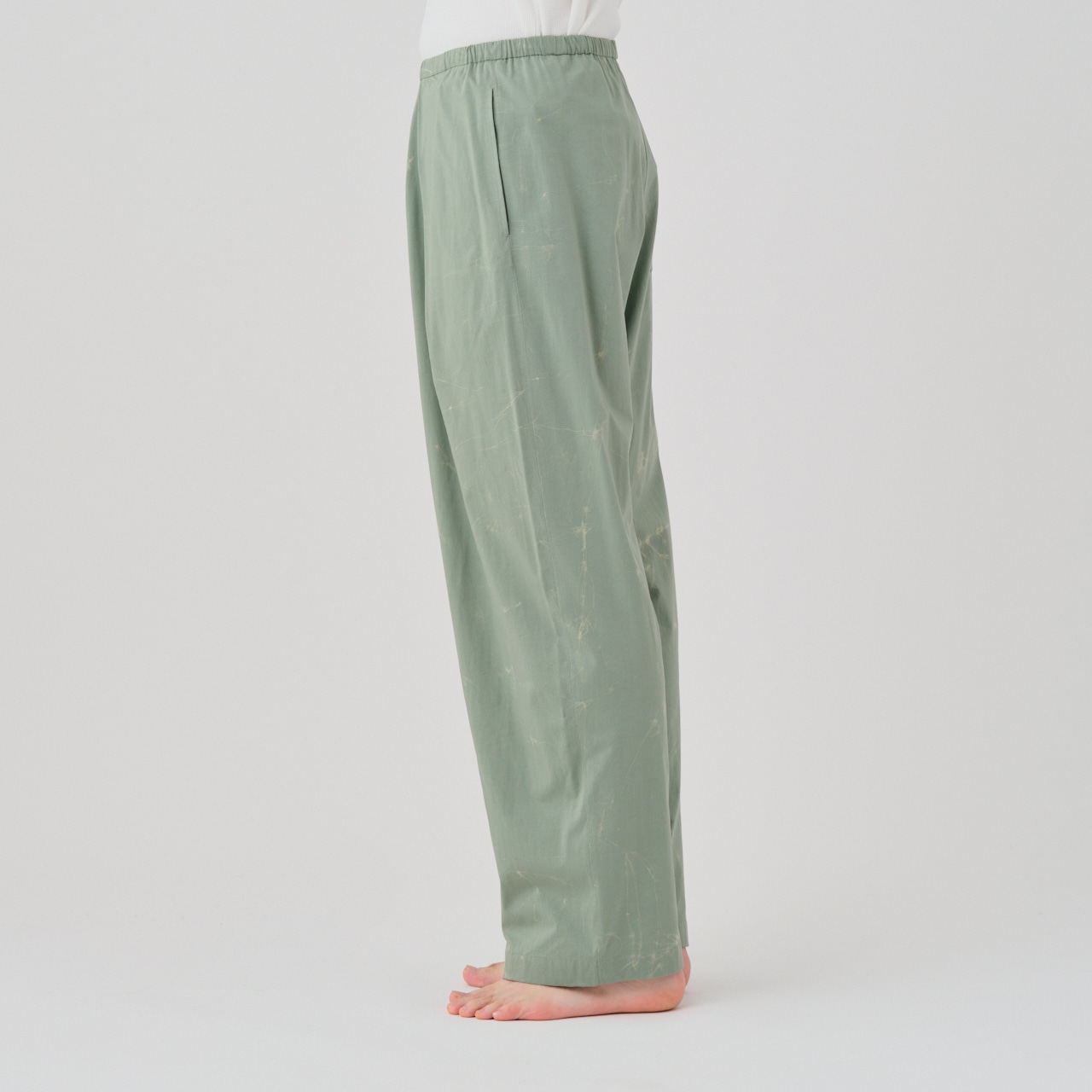 Traditional Japan technique, relaxed silhouette with wax ass dyeing, easy pants.