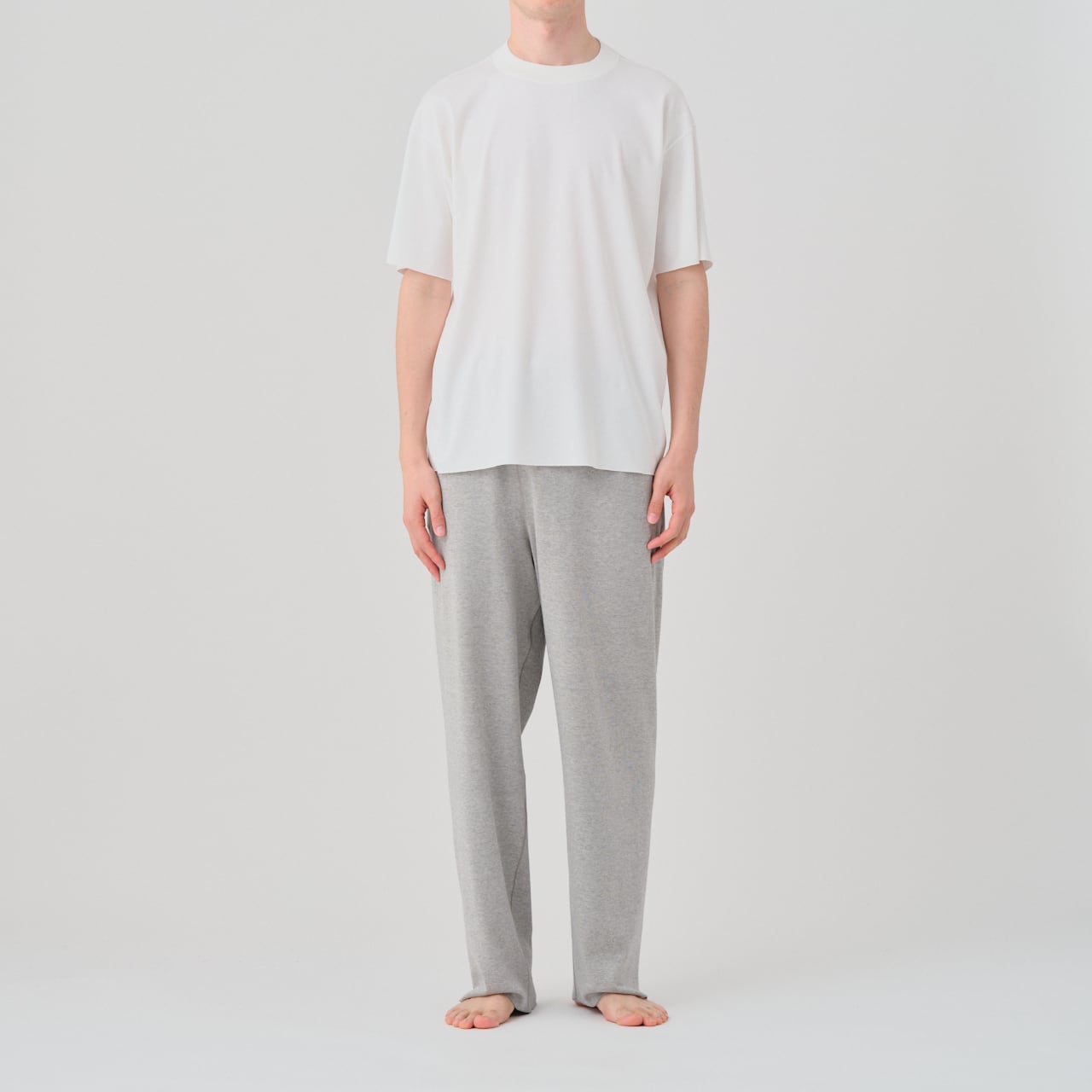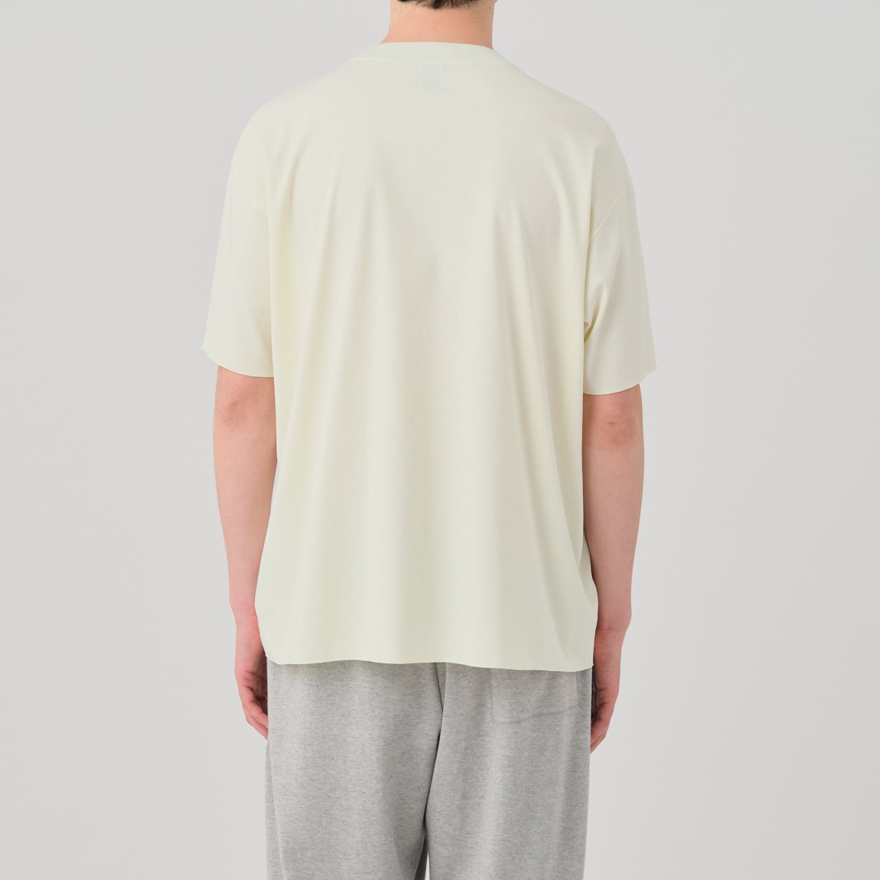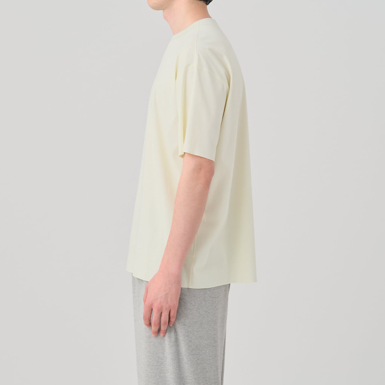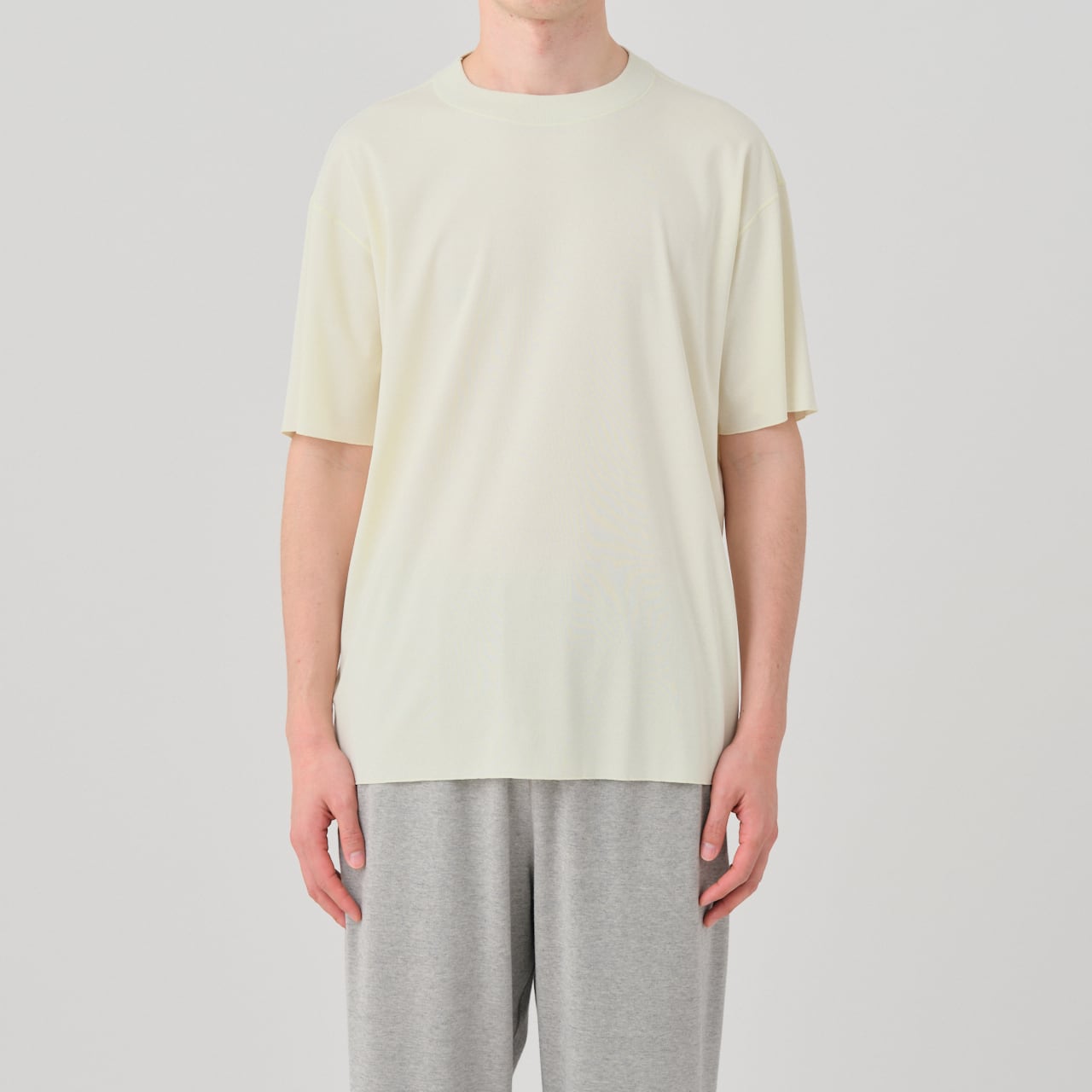ハイゲージフライス素材のワイドシルエット、クルーネックハーフスリーブT。