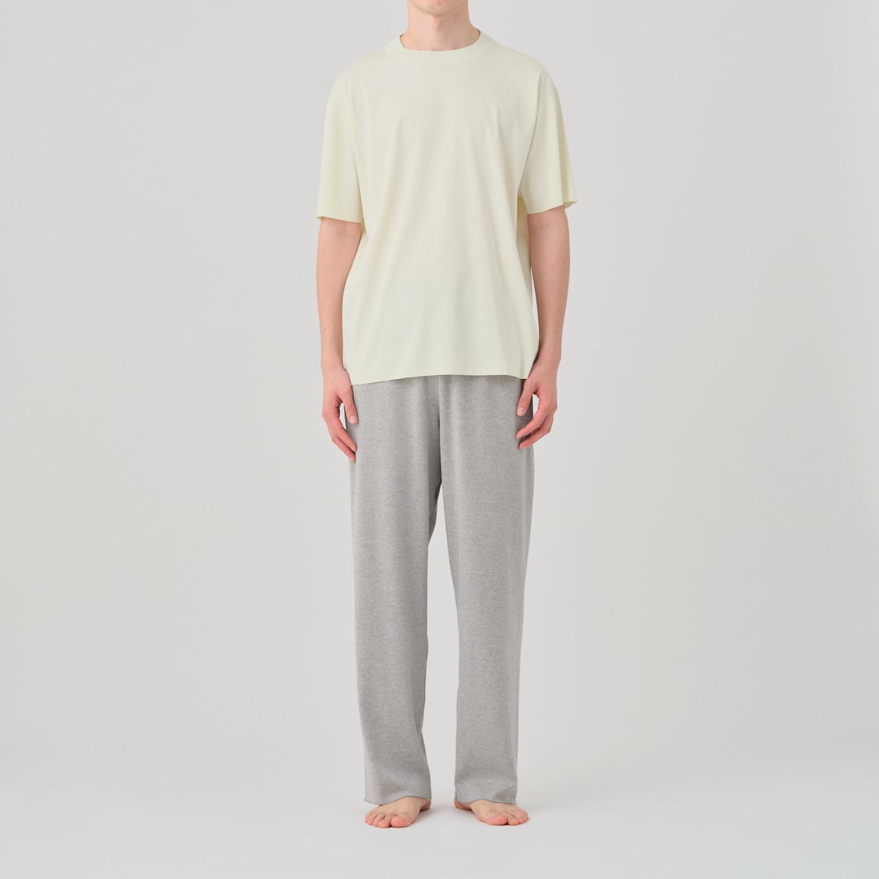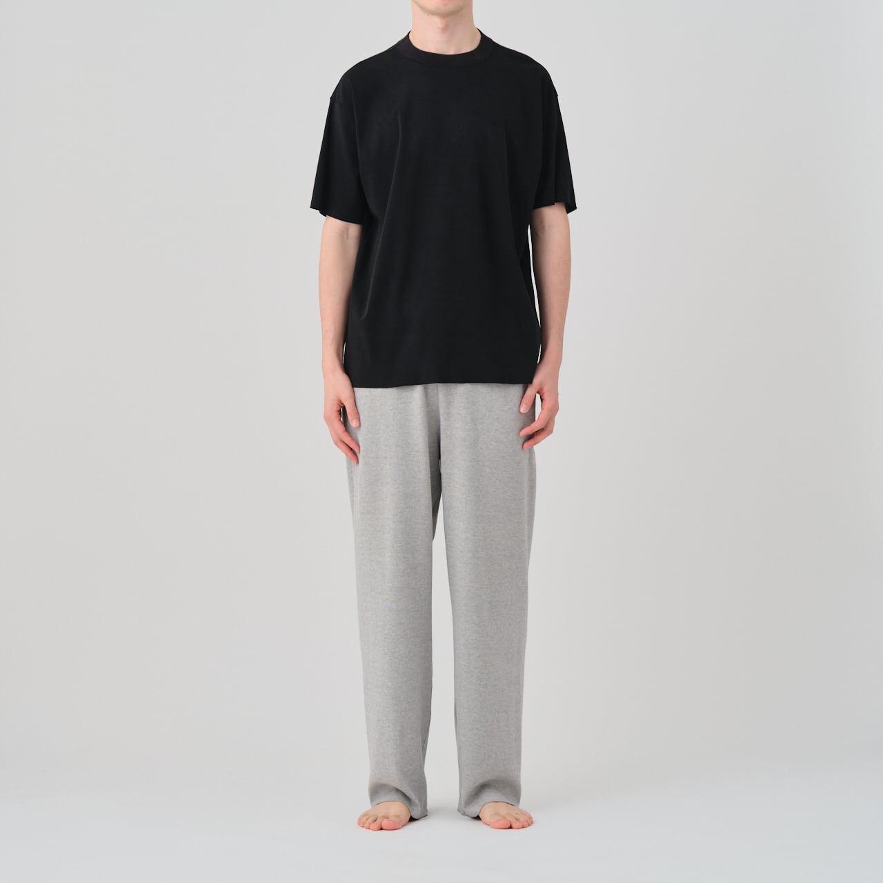 GGGの新たな定番フライス素材は、ハイゲージの編み機を使うことで、高密度ながら伸びやかで、透け感が少なく、ストレスの少ない気心地が特徴です。毛羽の少ない強撚糸を使うことで、シルキーでドライタッチに仕上げています。