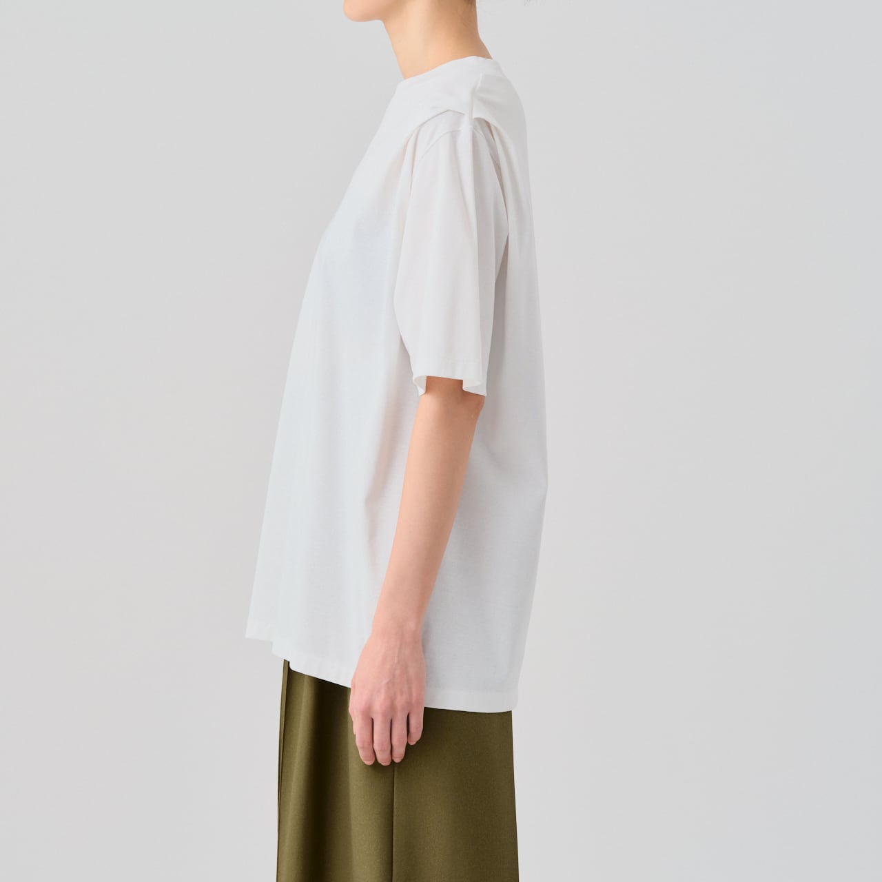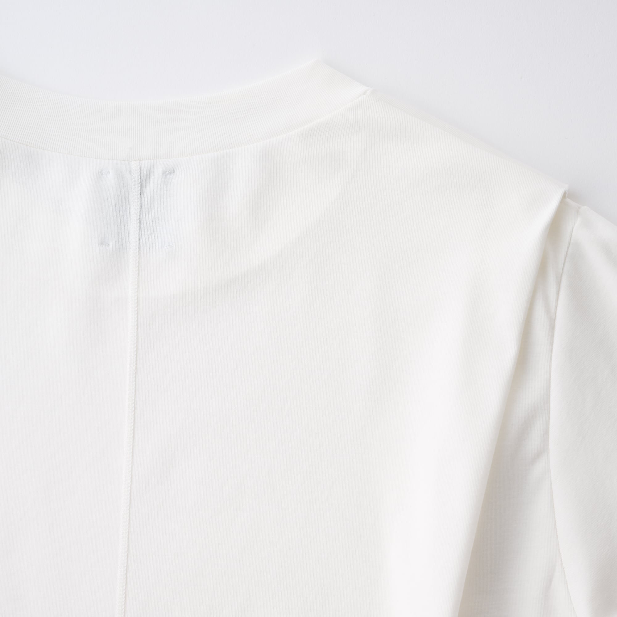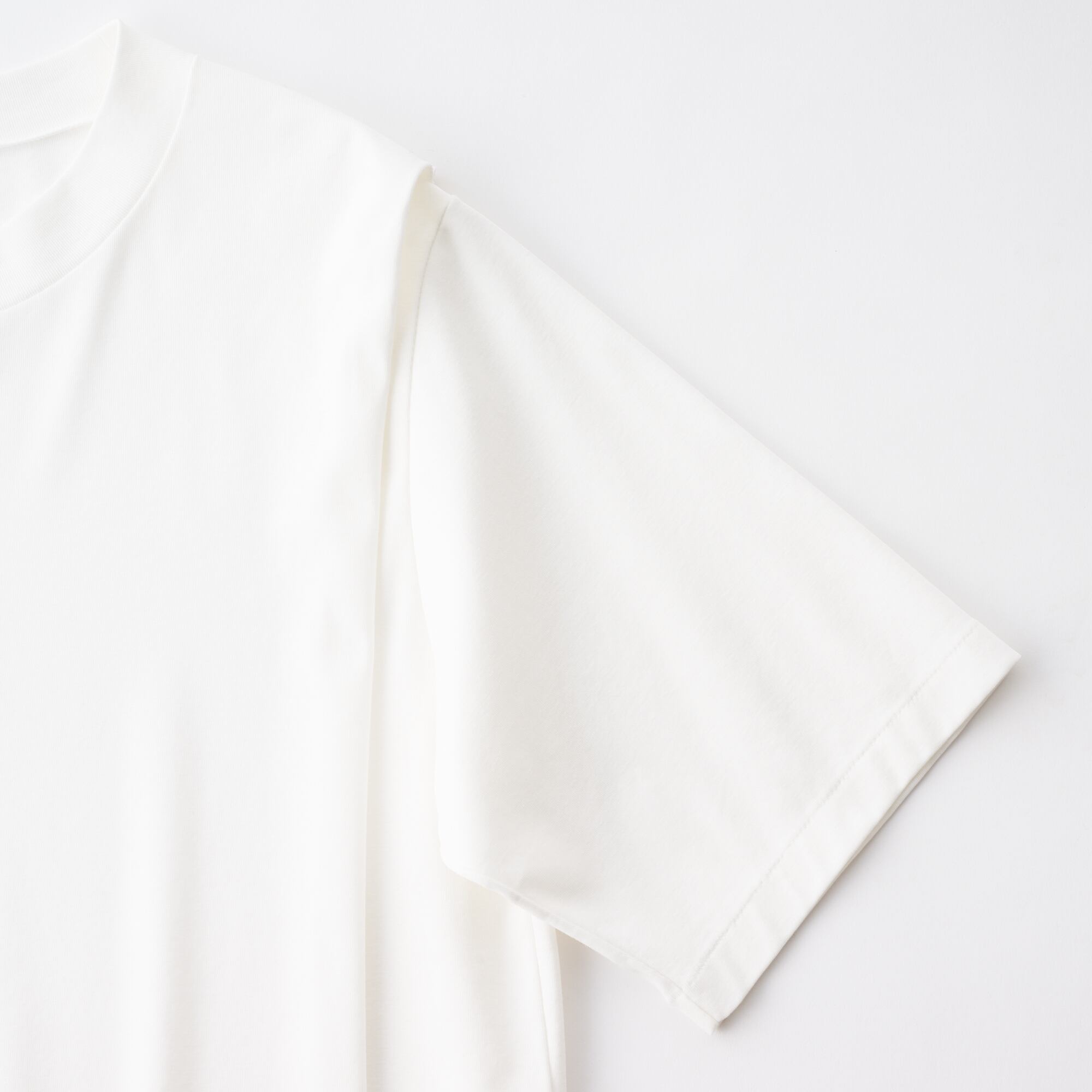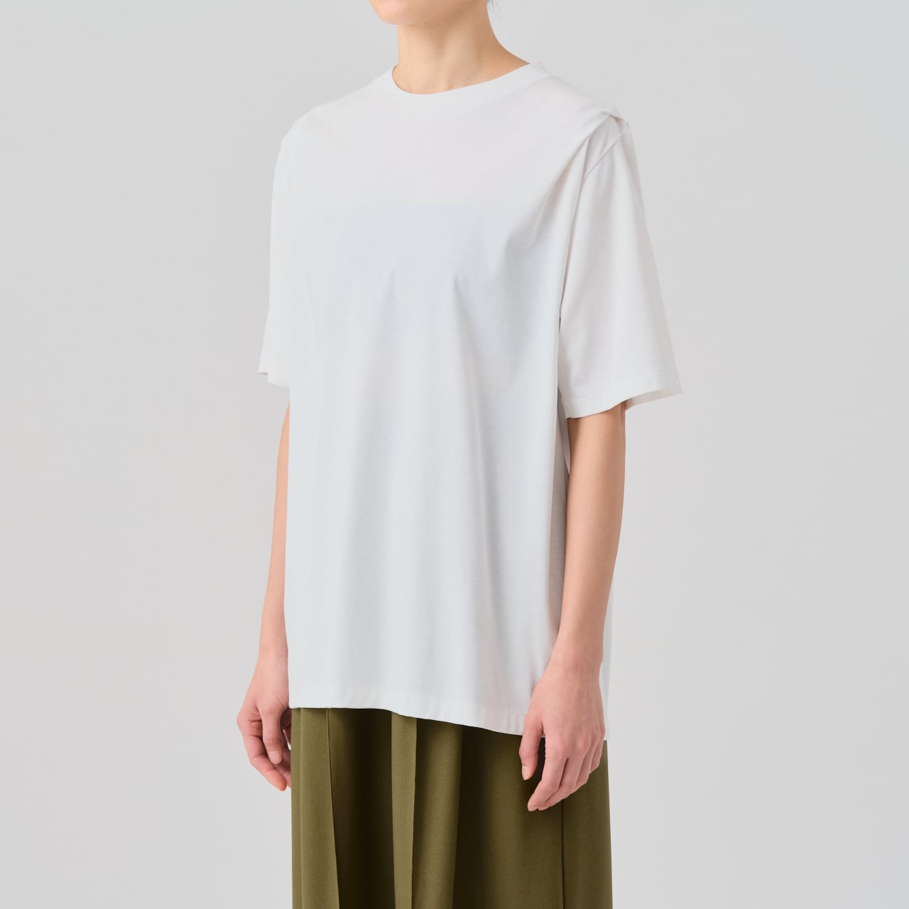 ハイゲージフライス素材の、肩にプリーツの入ったクルーネックショートスリーブT。