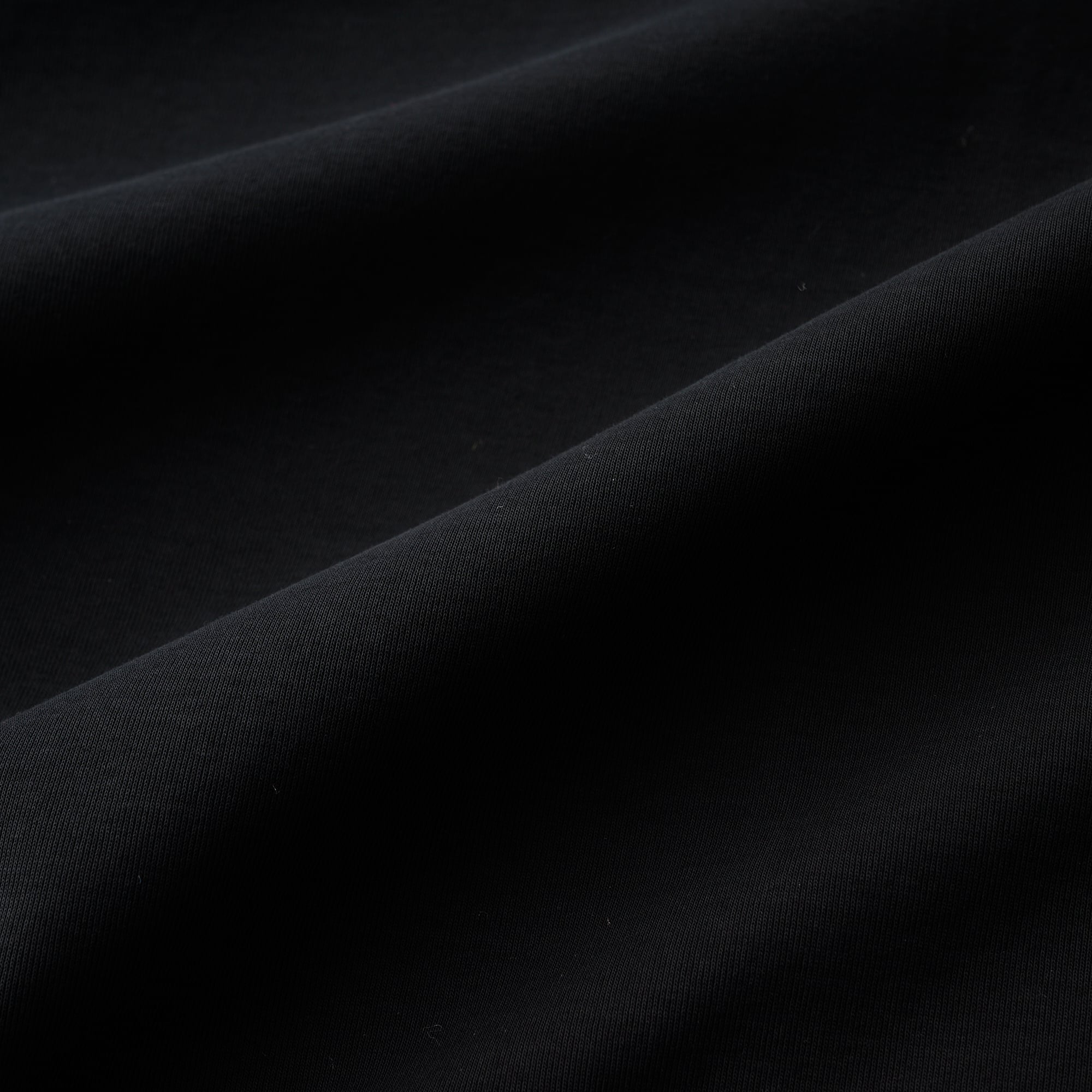 GGGの新たな定番フライス素材は、ハイゲージの編み機を使うことで、高密度ながら伸びやかで、透け感が少なく、ストレスの少ない気心地が特徴です。毛羽の少ない強撚糸を使うことで、シルキーでドライタッチに仕上げています。