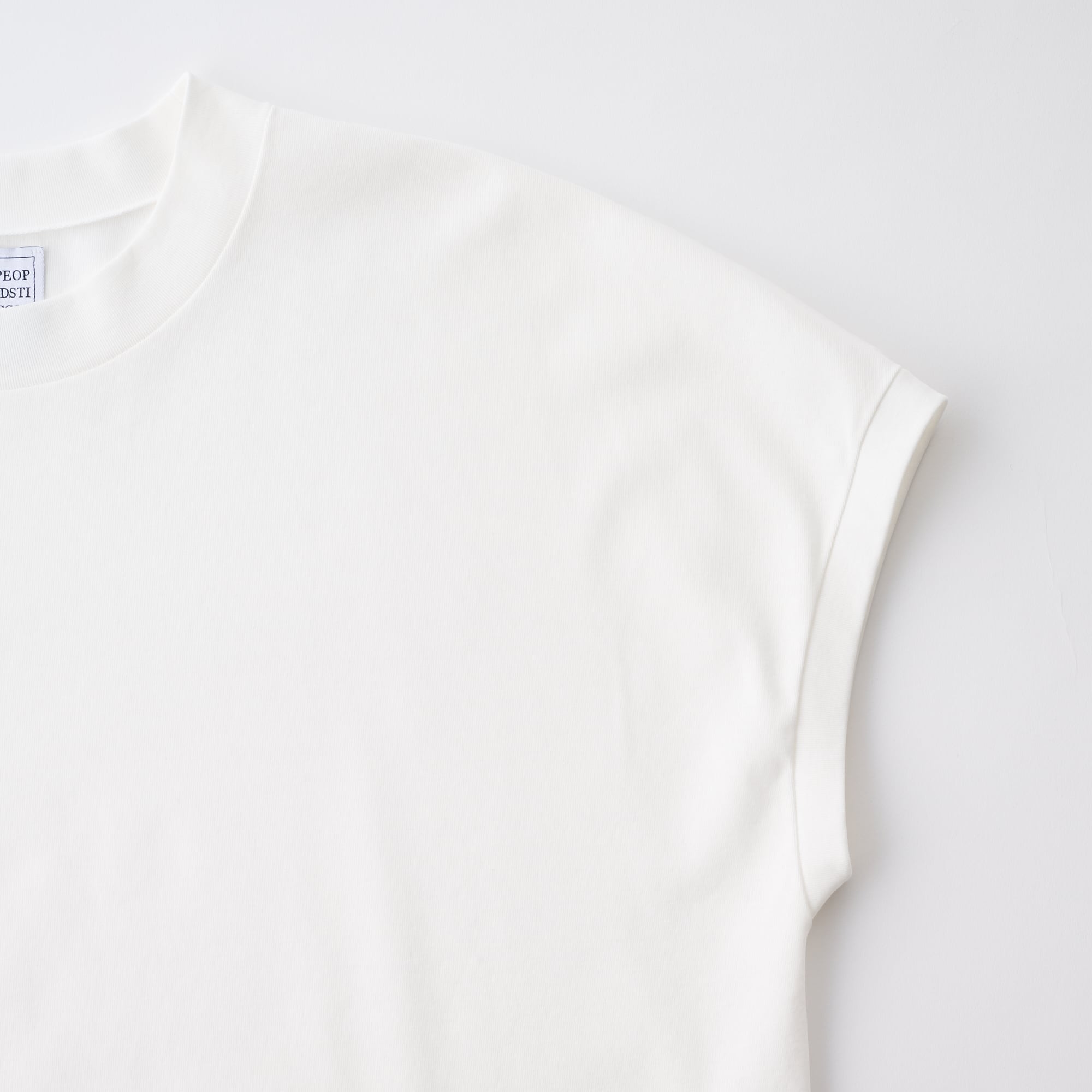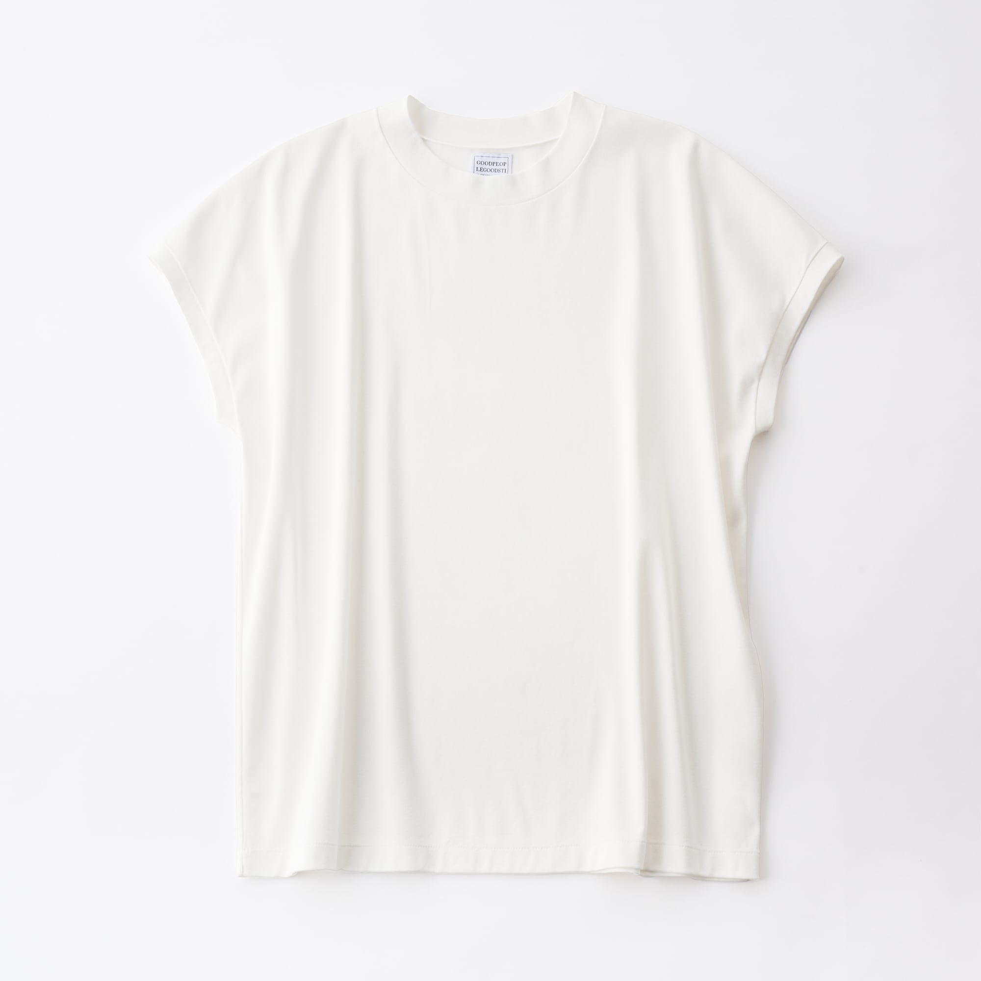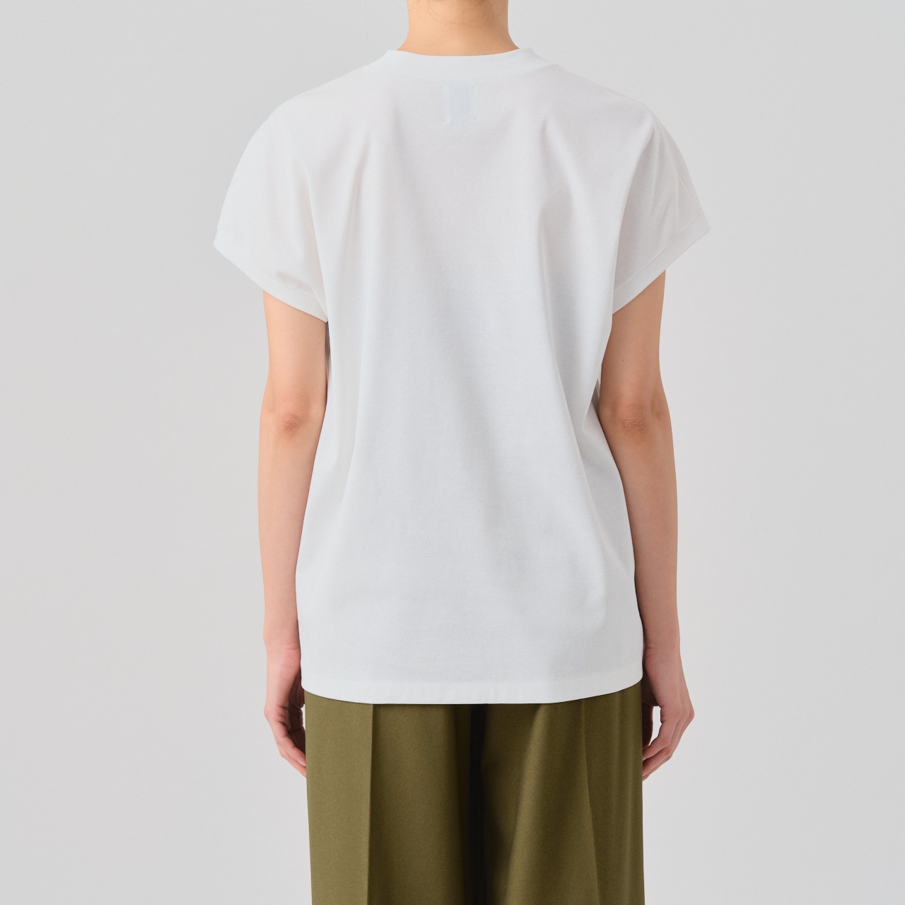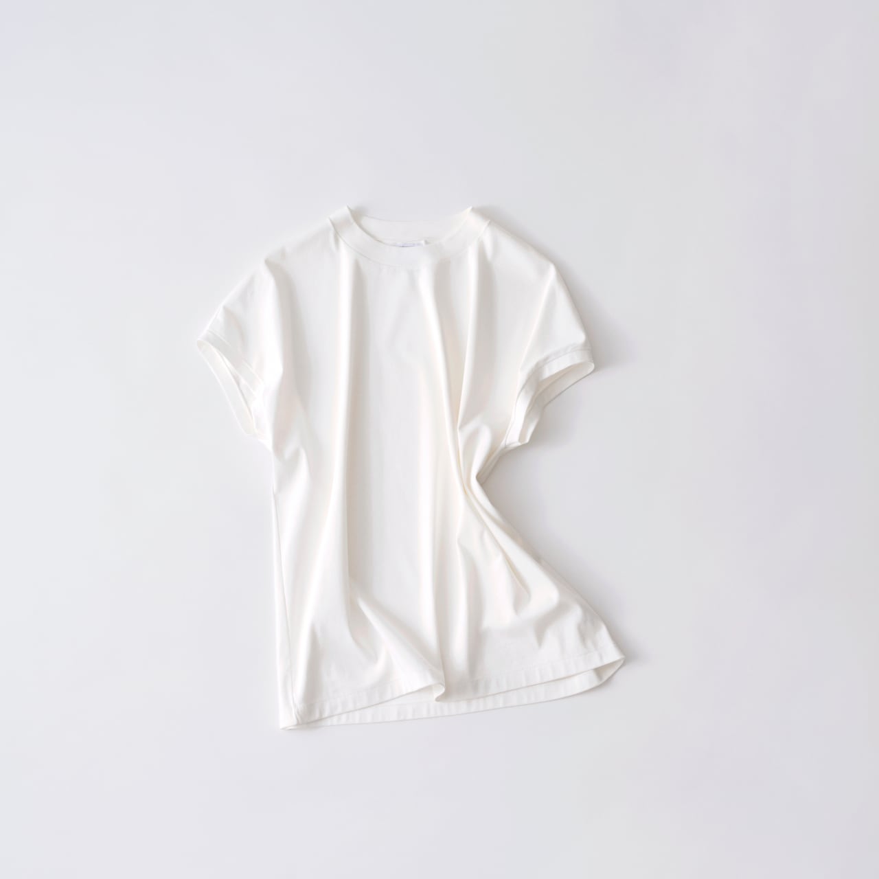 肩のラインをすっきり見せるフレンチスリーブで、クリーンな印象のTシャツです。
