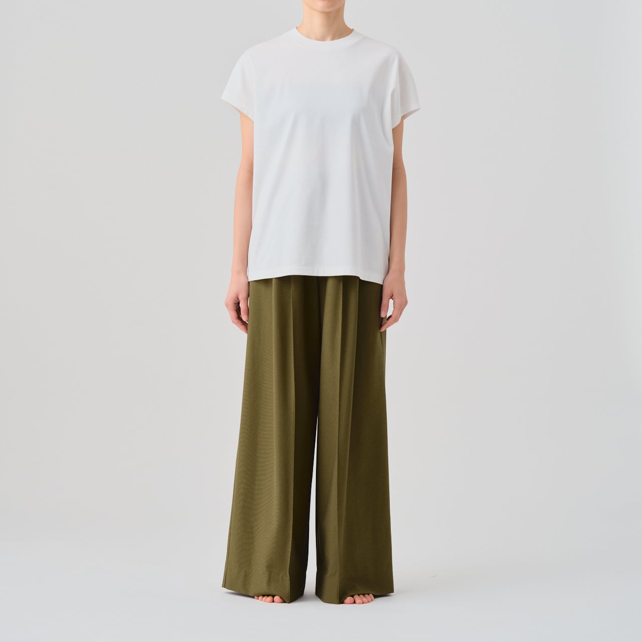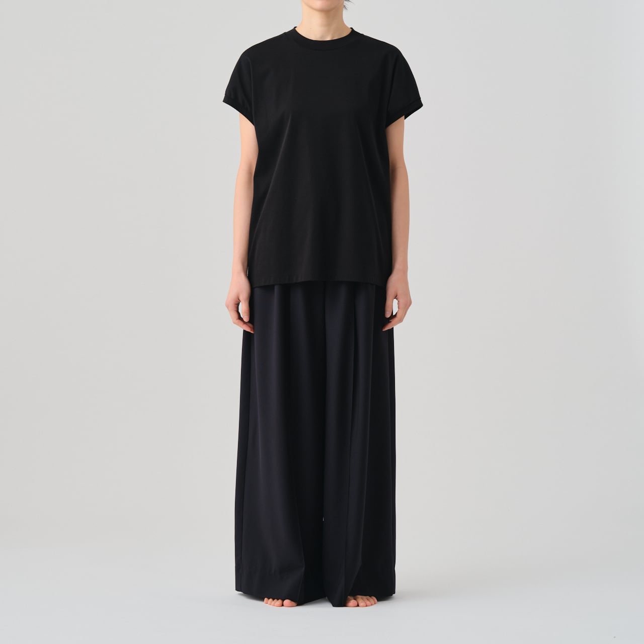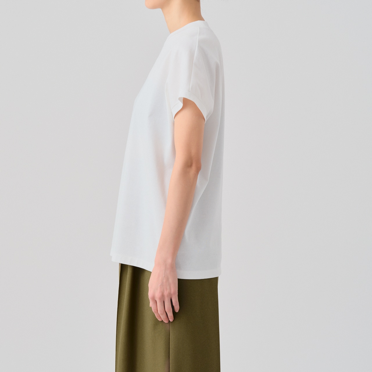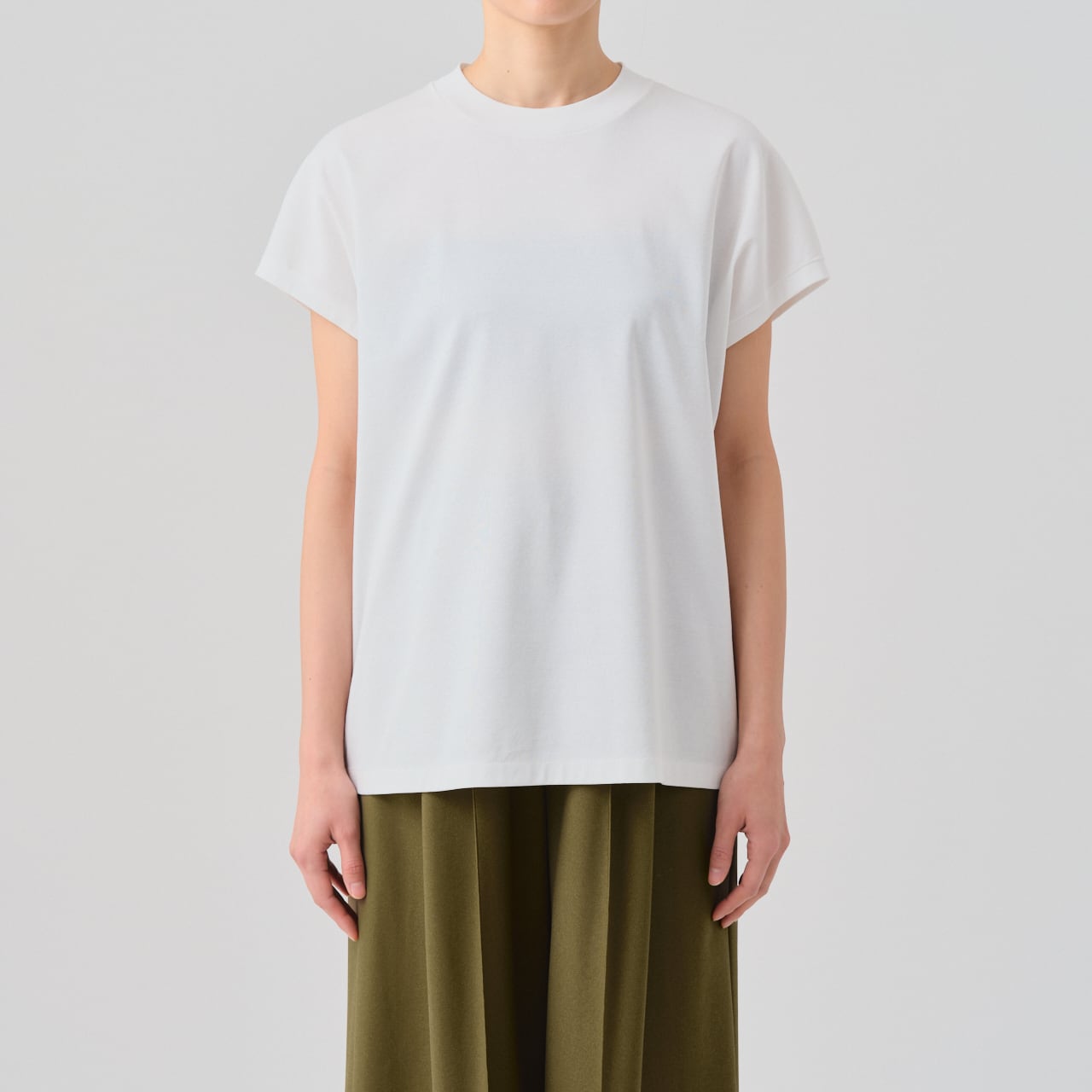 ハイゲージフライス素材の、クルーネックフレンチスリーブT。