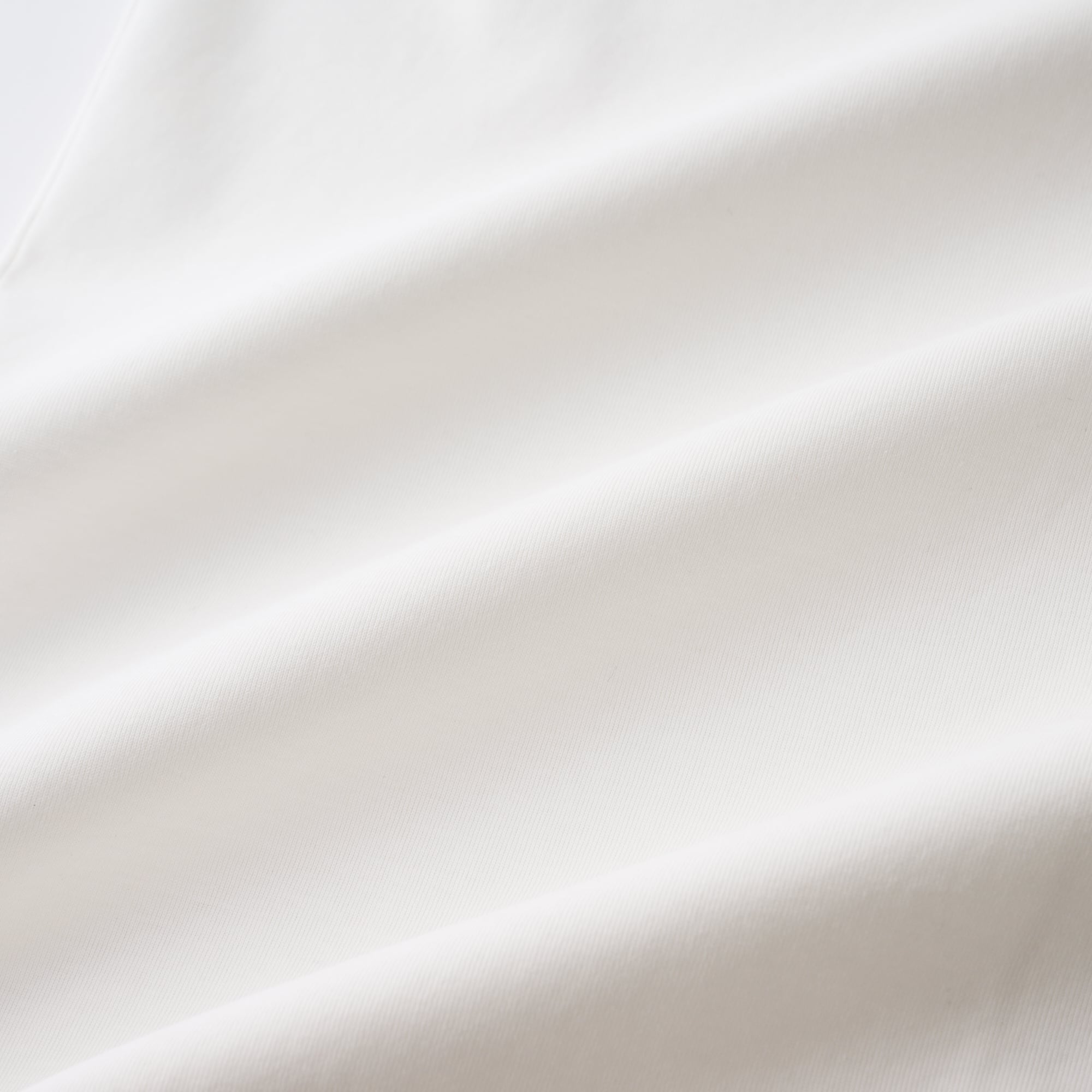 GGGの新たな定番フライス素材は、ハイゲージの編み機を使うことで、高密度ながら伸びやかで、透け感が少なく、ストレスの少ない気心地が特徴です。毛羽の少ない強撚糸を使うことで、シルキーでドライタッチに仕上げています。
