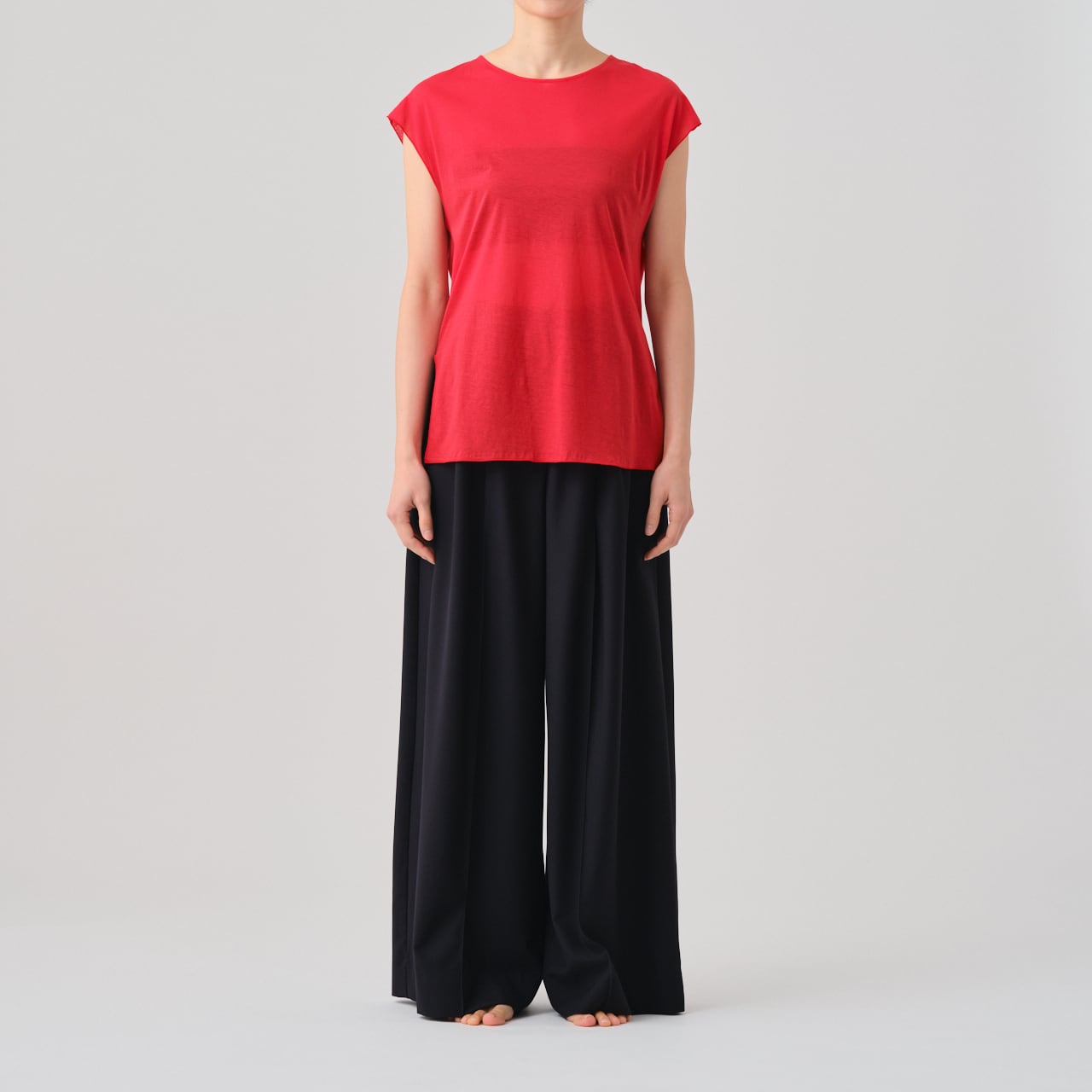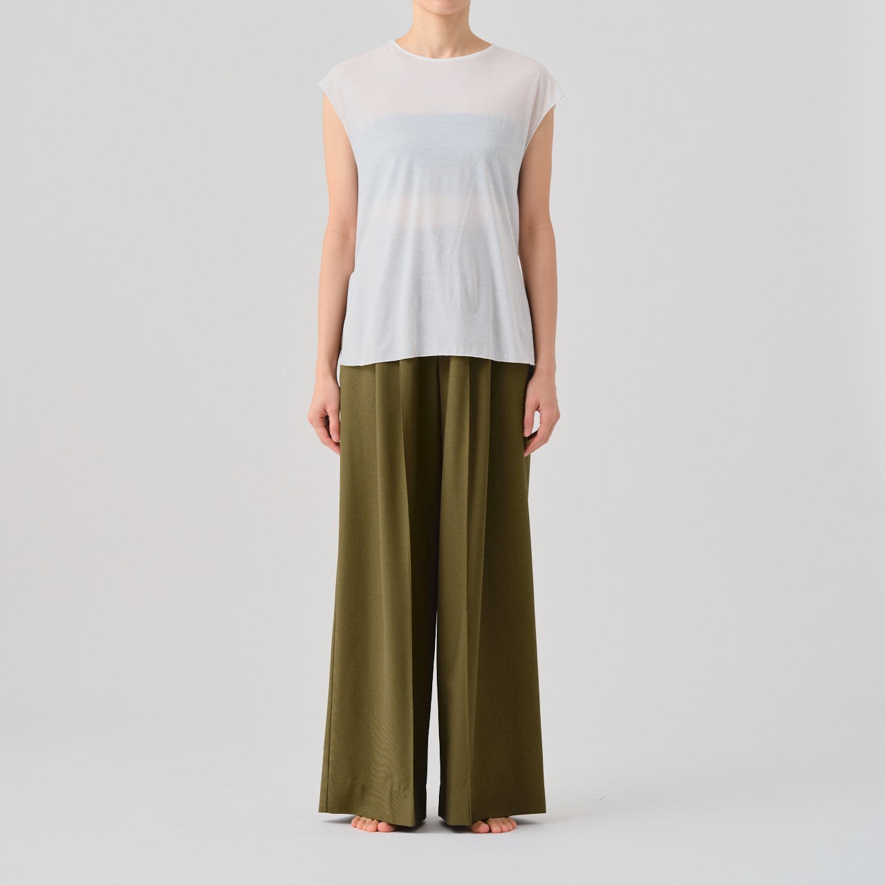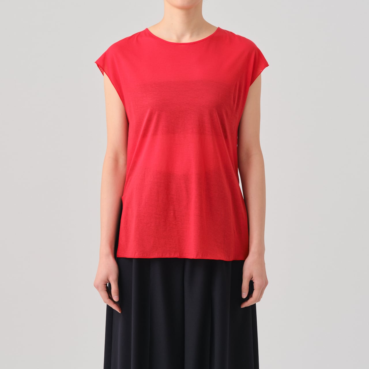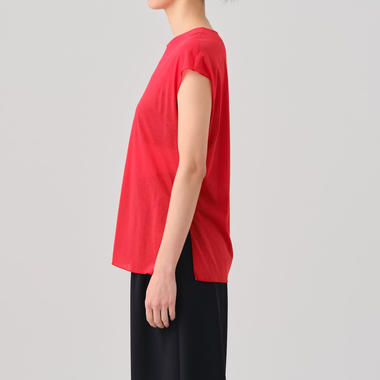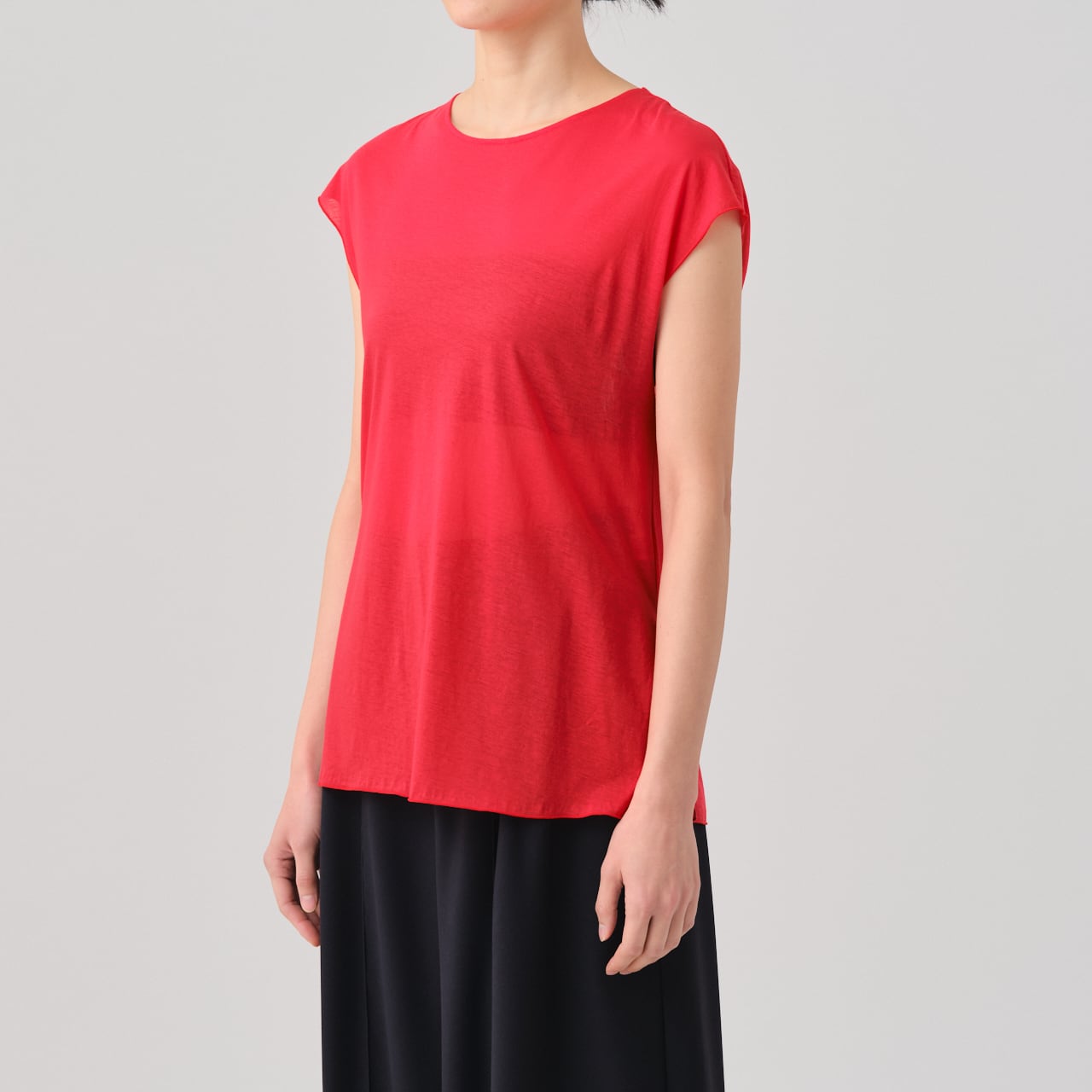 繊細な肌触りが特徴の、クルーネック、フレンチスリーブT。