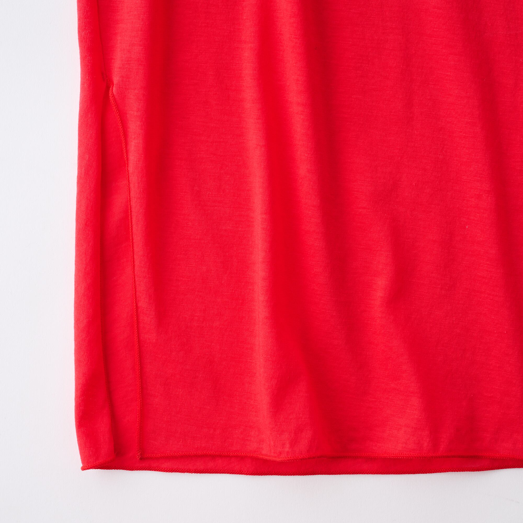 裾のサイドスリットは、動きやすさと抜け感を生み出し、レイヤードスタイルにもピッタリです。