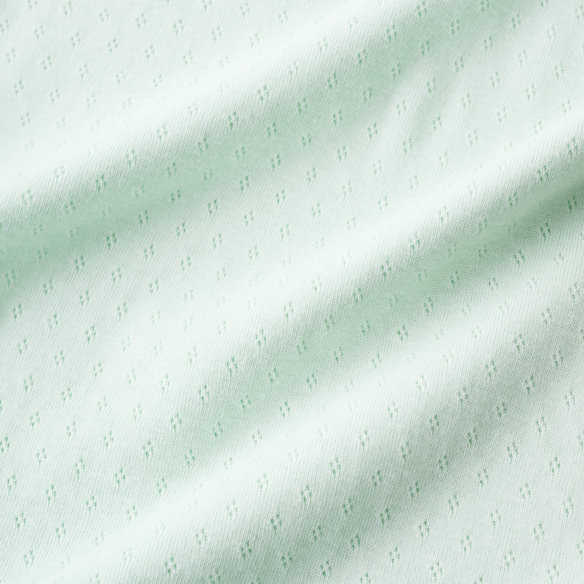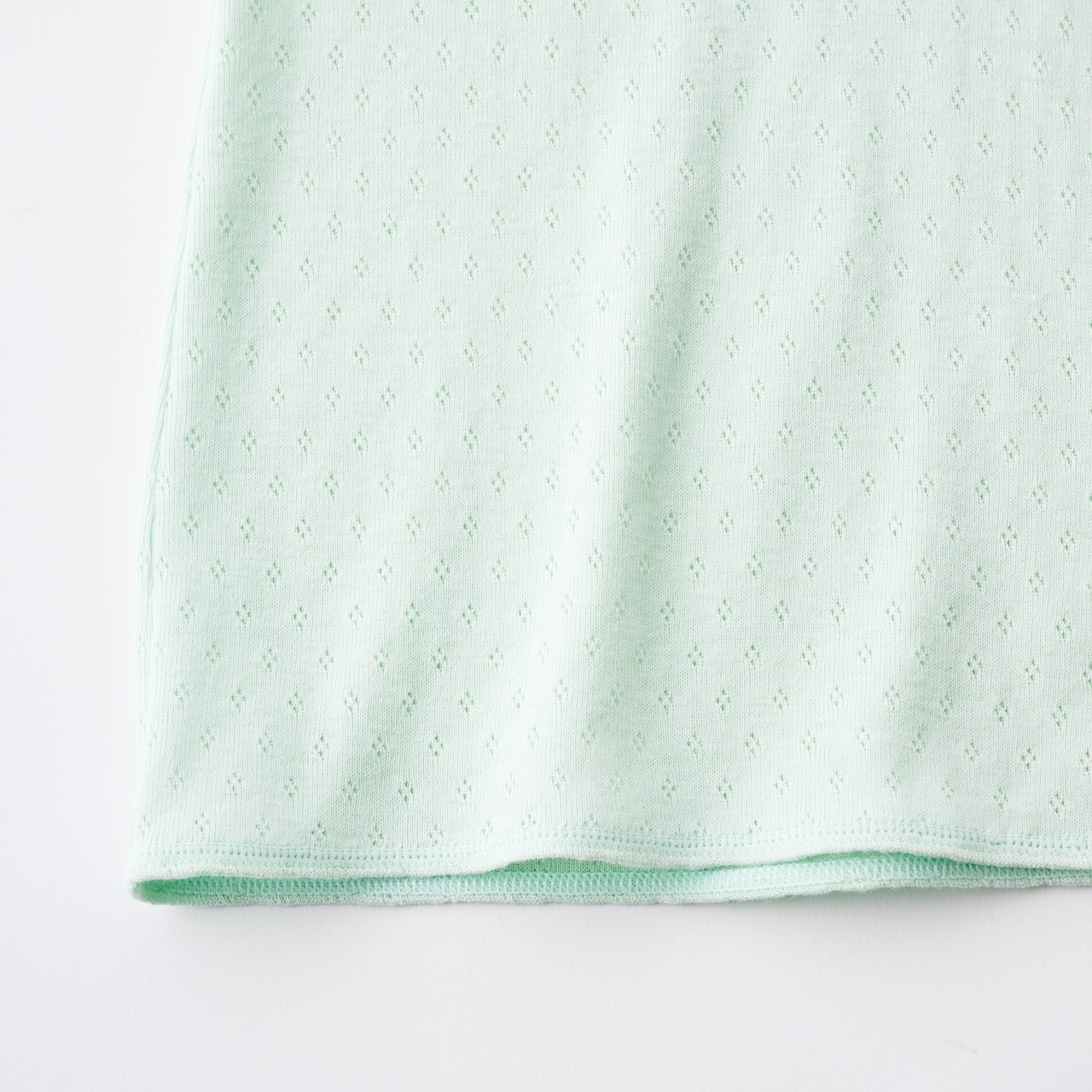 特別な編み機で編み立てたメッシュの軽さと、シルク混ならではの滑らかな肌触りが魅力の素材。