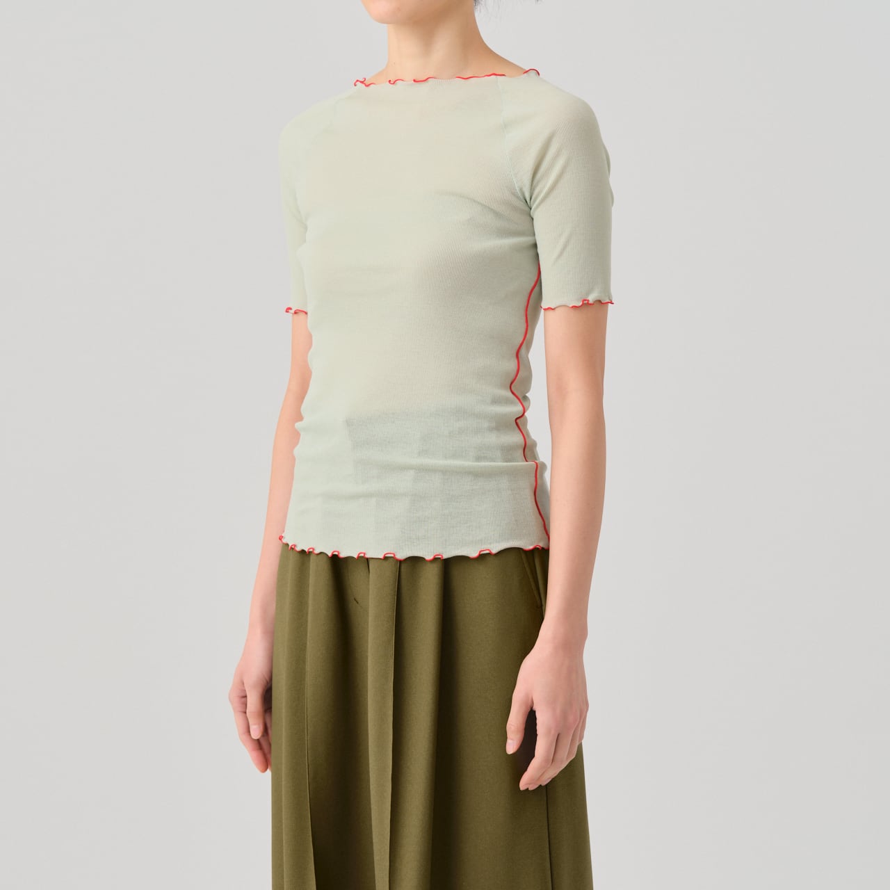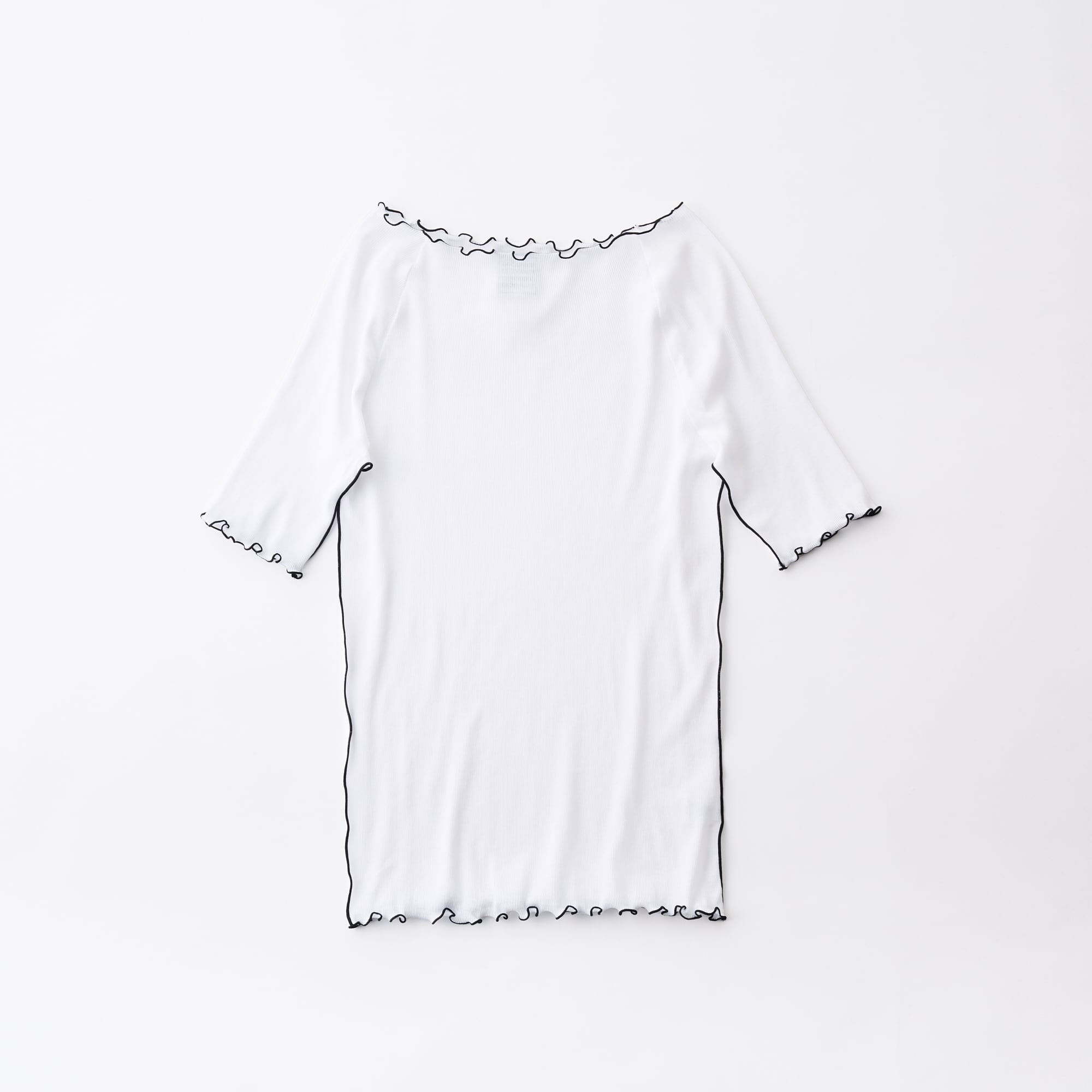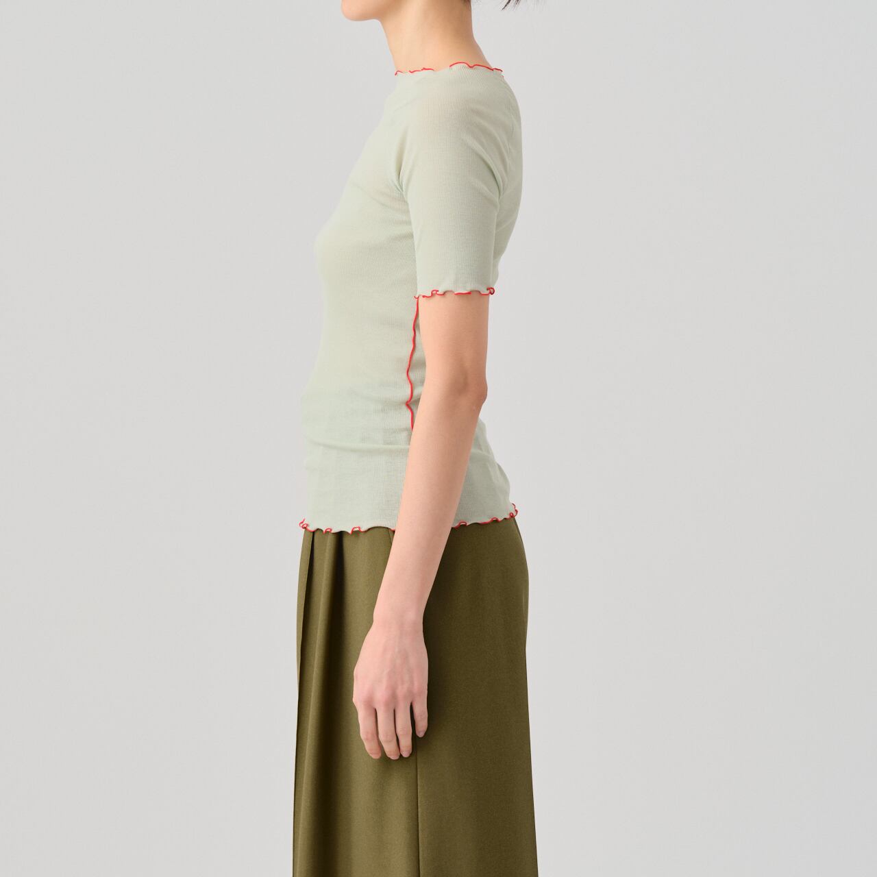 繊細な薄手のリブとステッチによるデザインが特徴のハーフスリーブT。