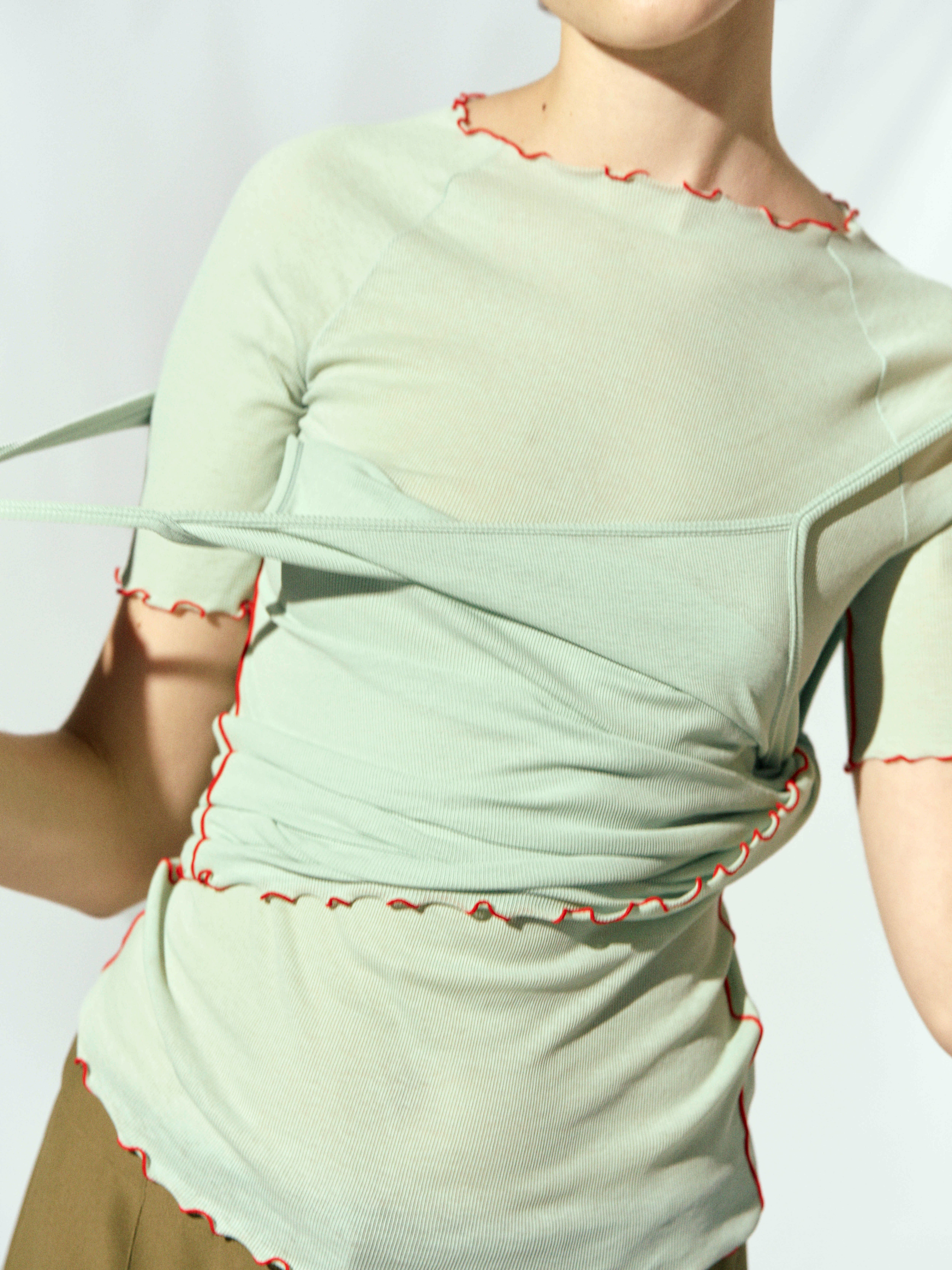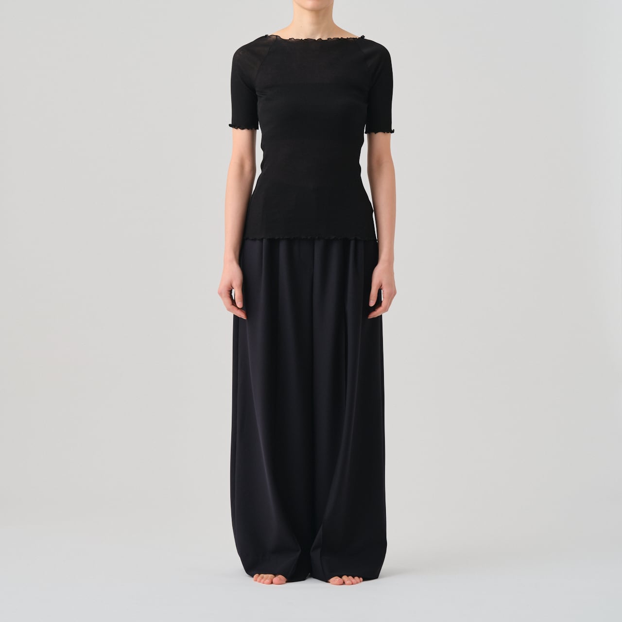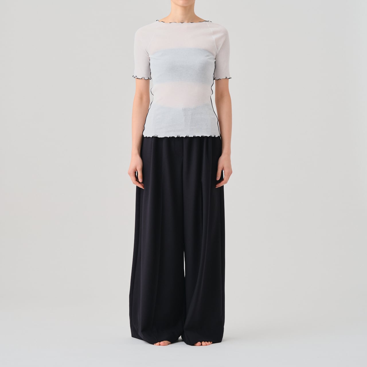 繊細な薄手のリブとステッチによるデザインが特徴のハーフスリーブT。