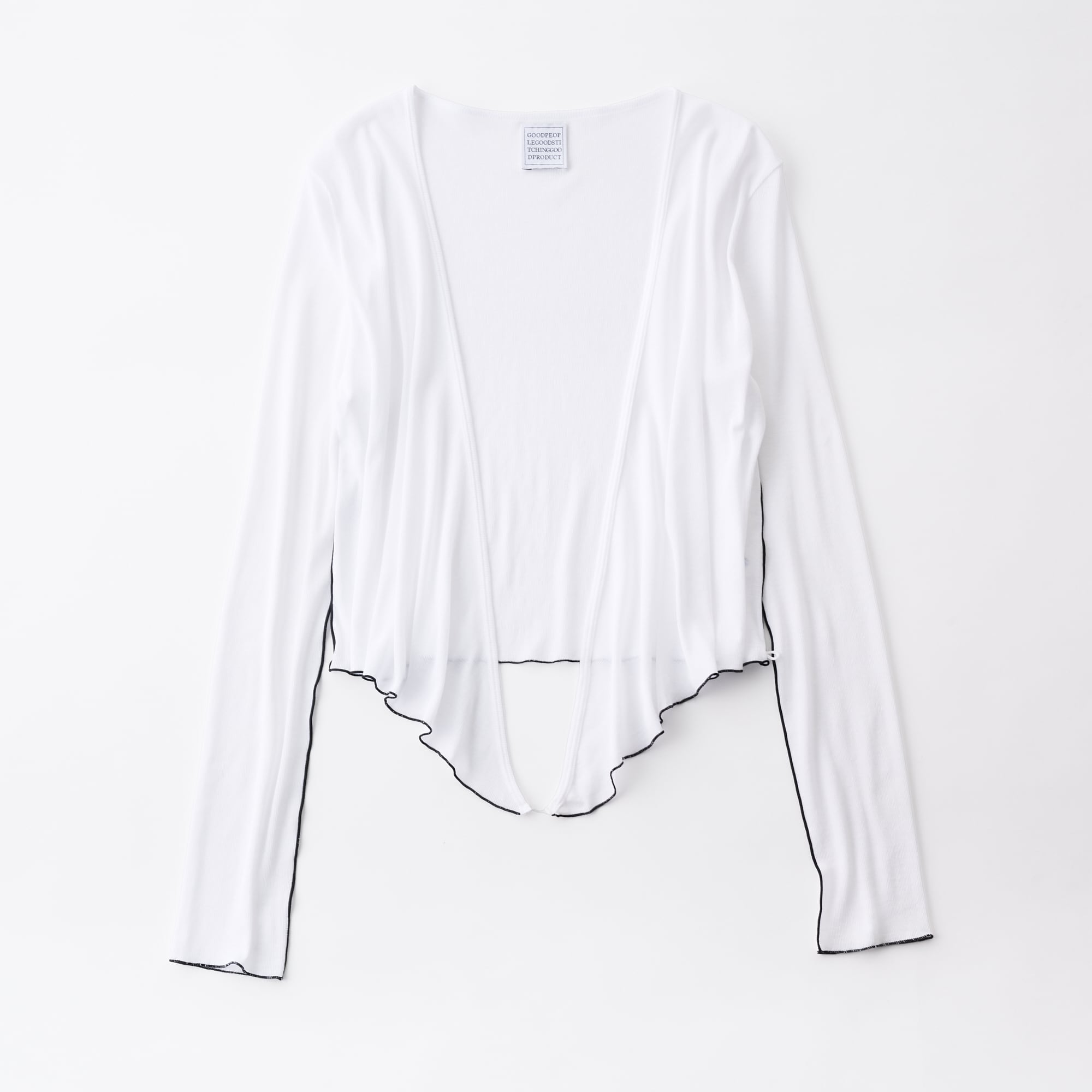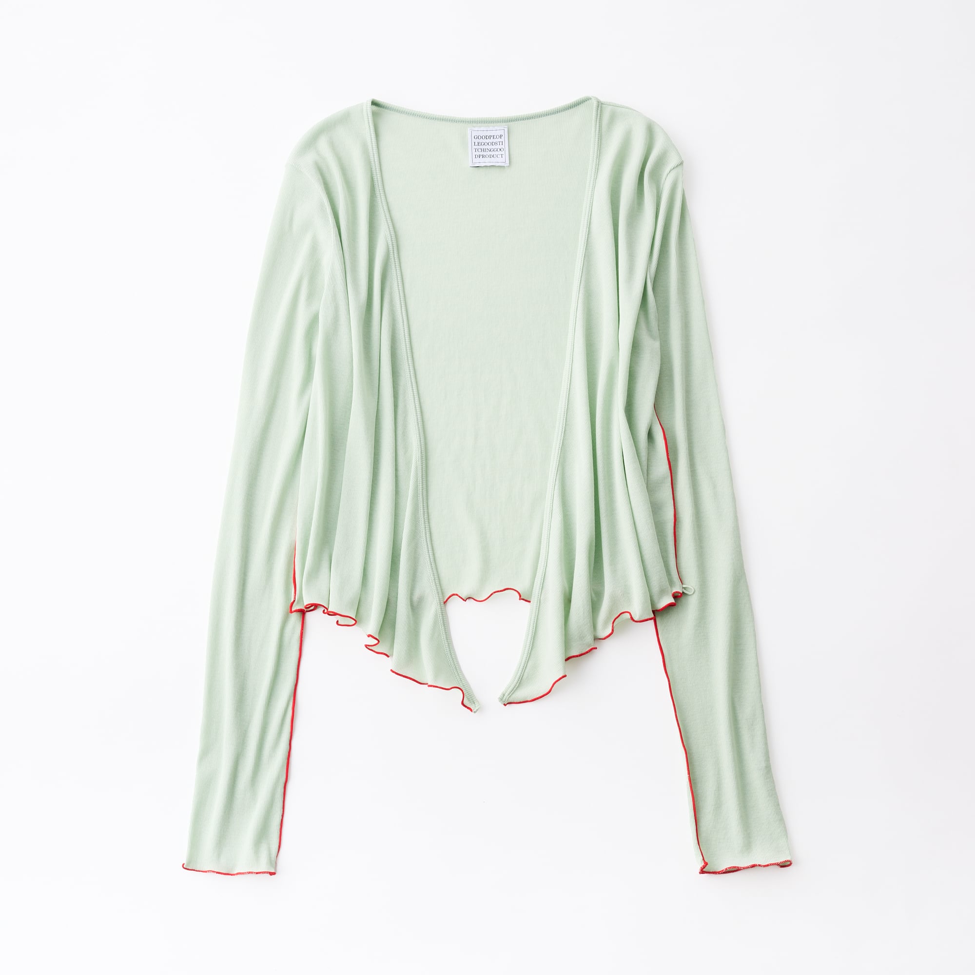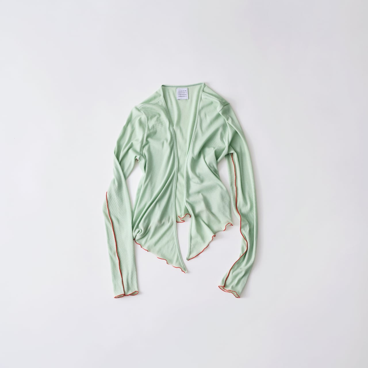 The beautifully three-dimensional stitching, applied almost like a graphic, adds depth to the design of the cardigan. You can enjoy it open with buttons undone or as an ensemble in the same fabric as the 02-01-1855 Mellow Edge Tank Top and 02-01-1856 Mellow Edge Half Sleeve T.