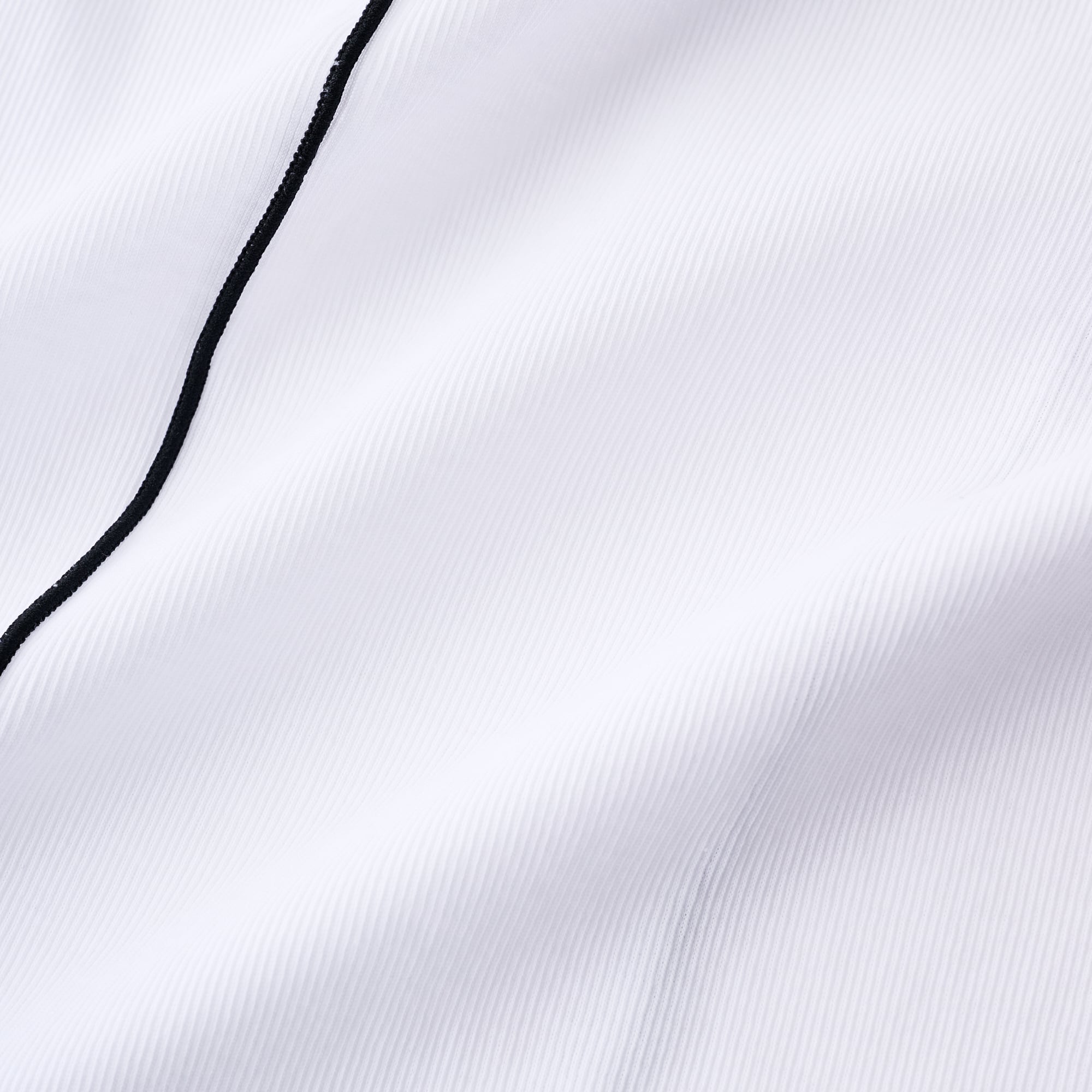Made from 100% cotton sheer rib fabric, it has low fuzziness and a dry touch. Despite this, it is soft and very silky. This fabric undergoes special processing to provide comfortable stretch and reduce the sagging that commonly occurs after wearing ribbed materials.