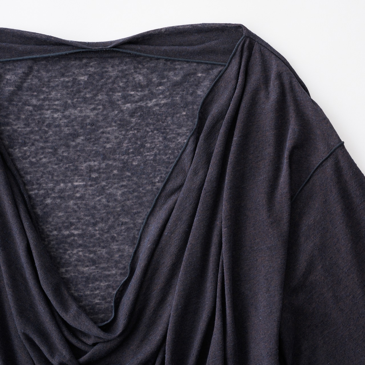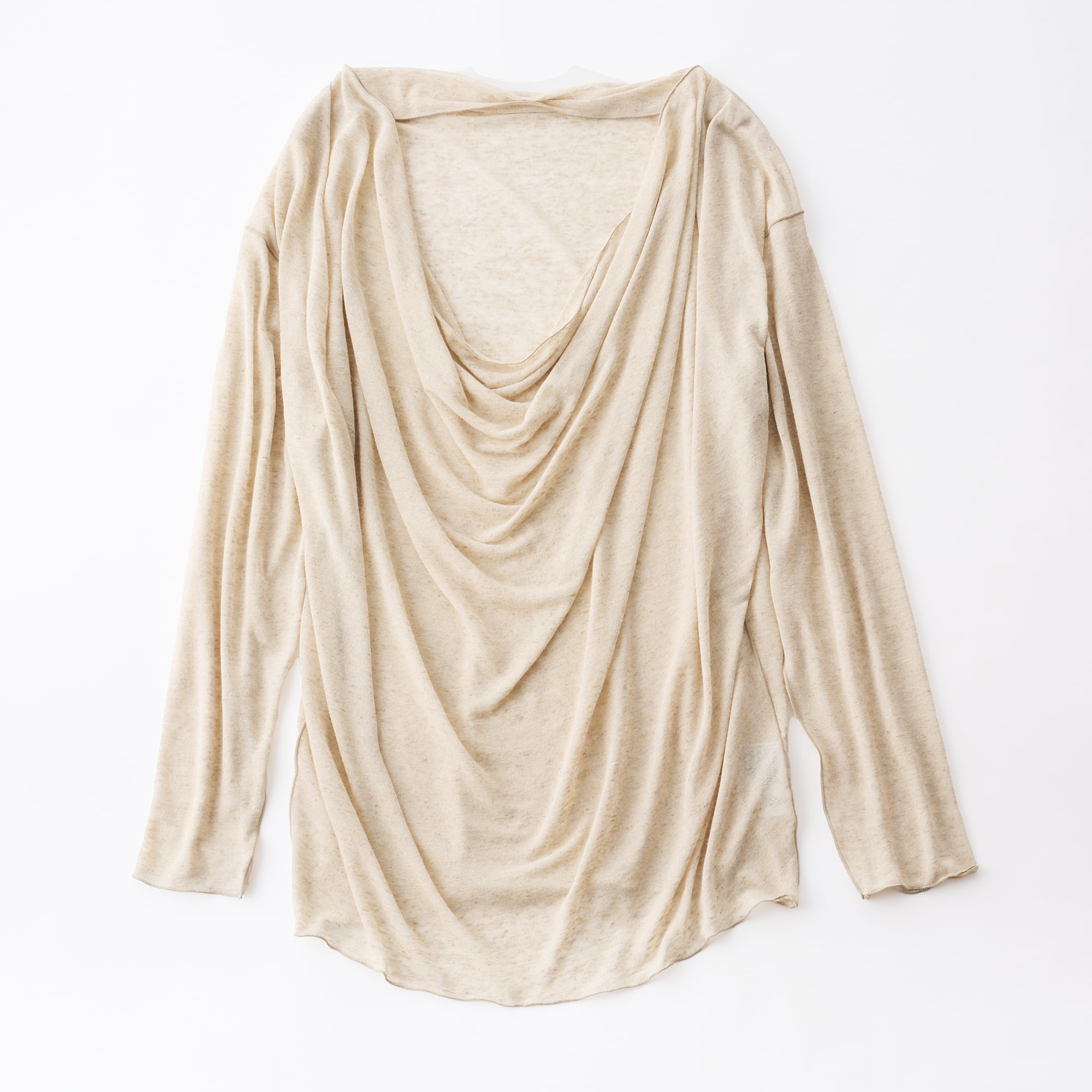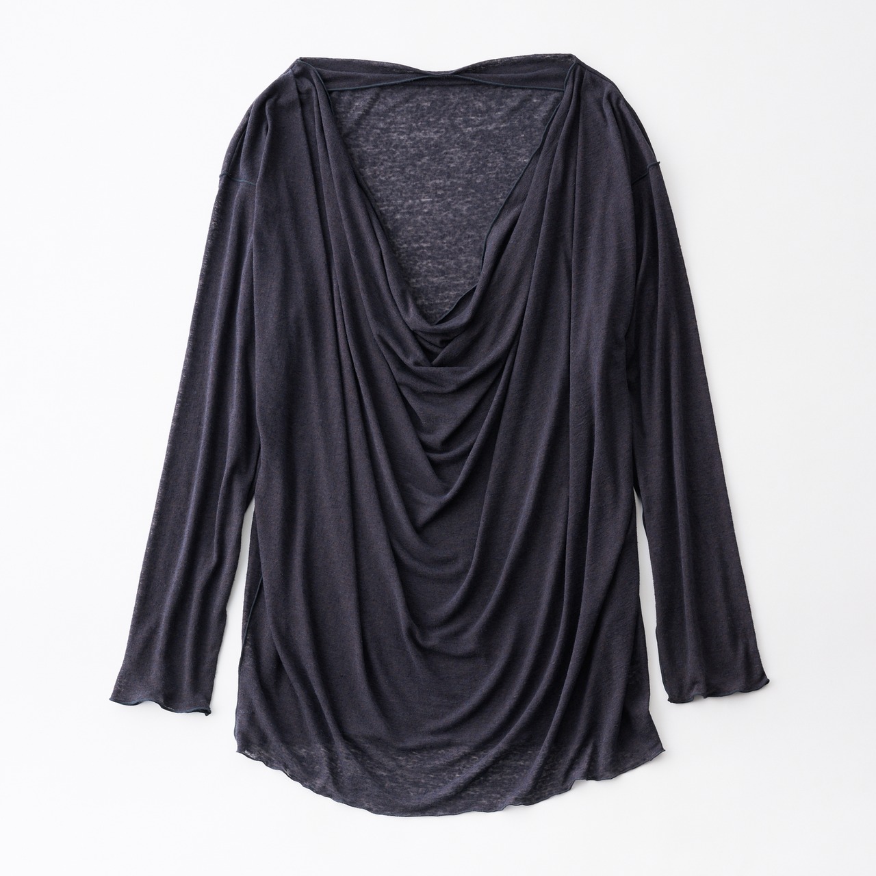 Linen Covered Polyester Core Fine Jersey Draped Long SleevePull Over