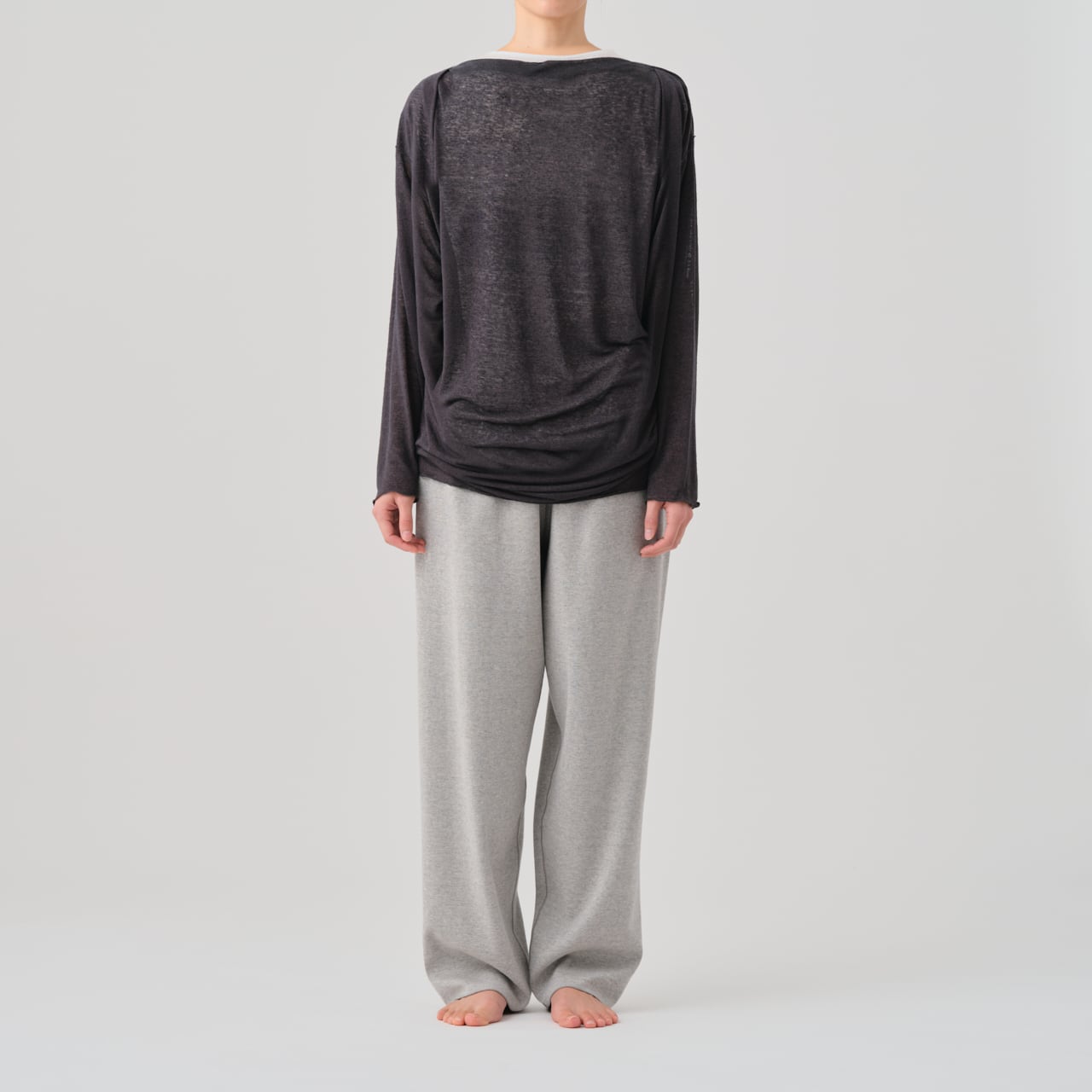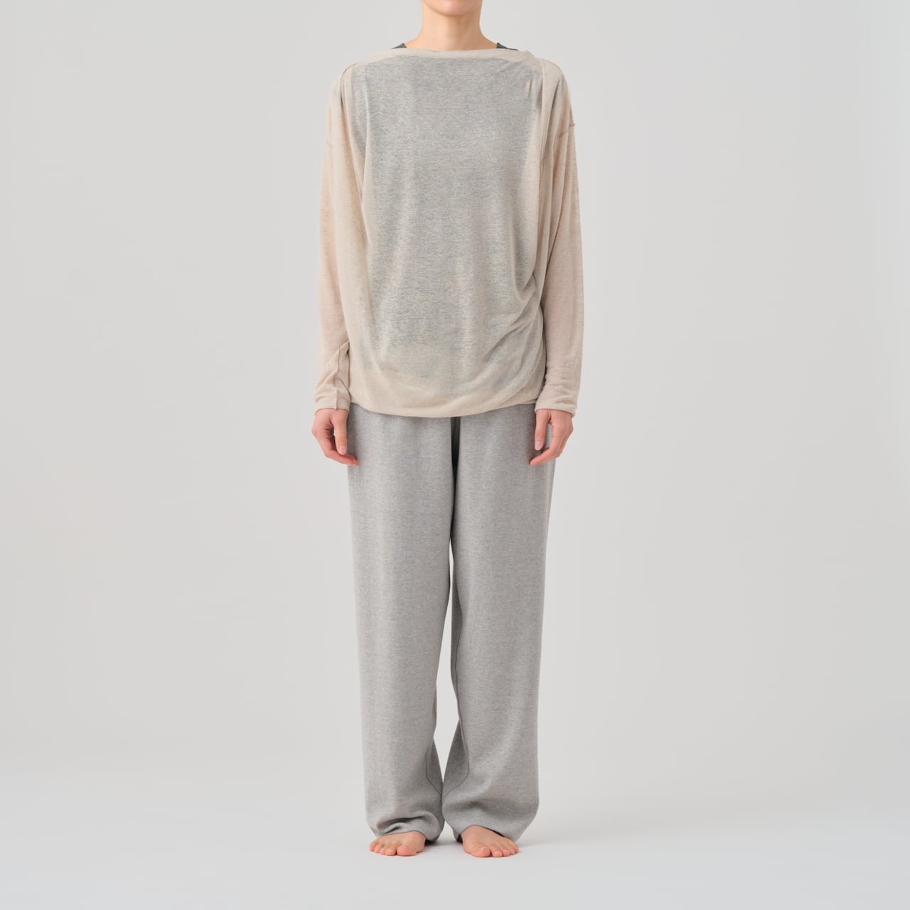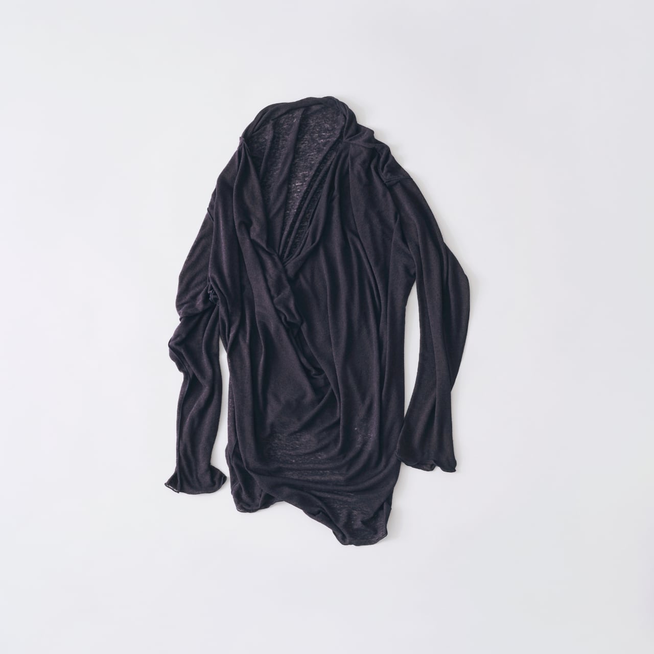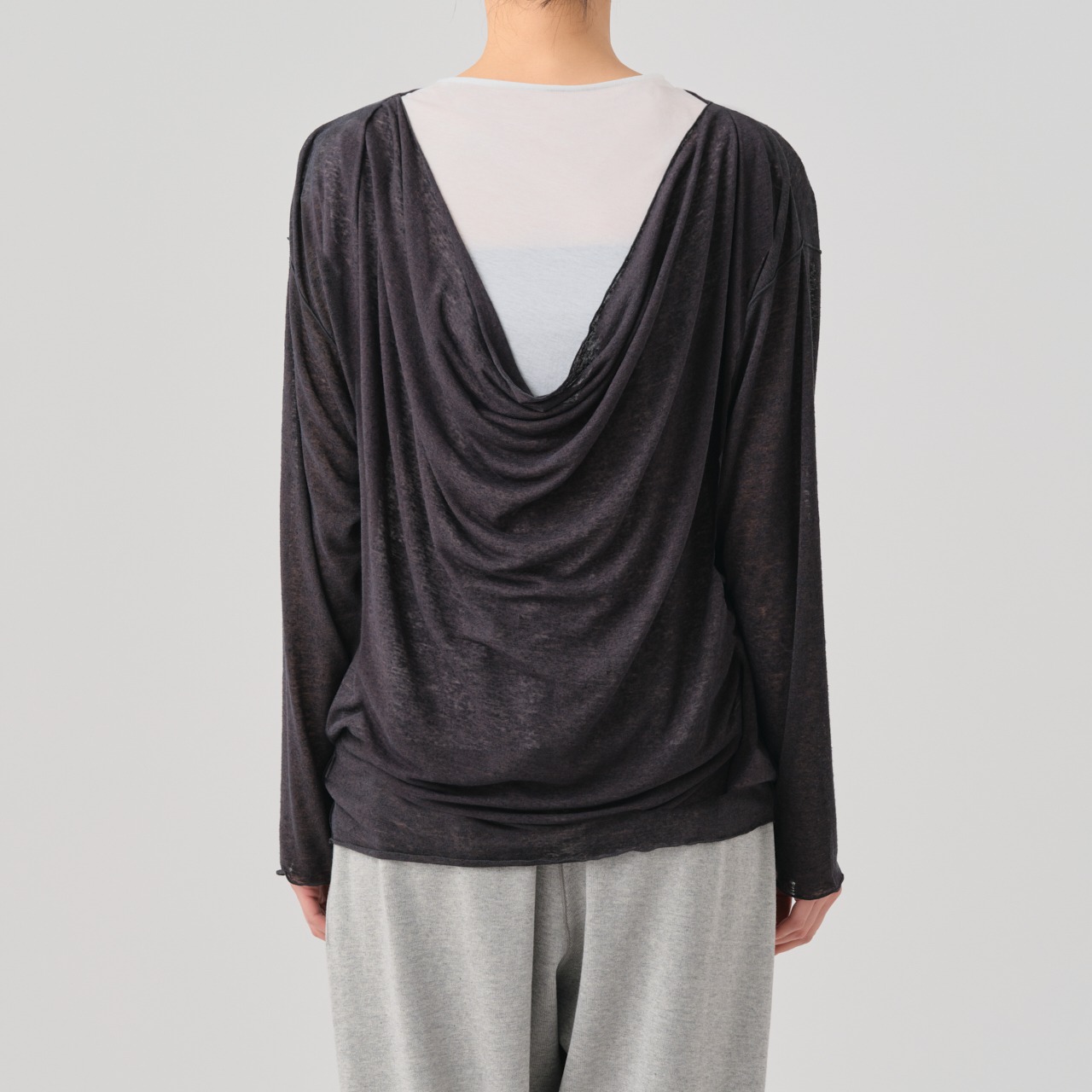 Linen Covered Polyester Core Fine Jersey Draped Long SleevePull Over