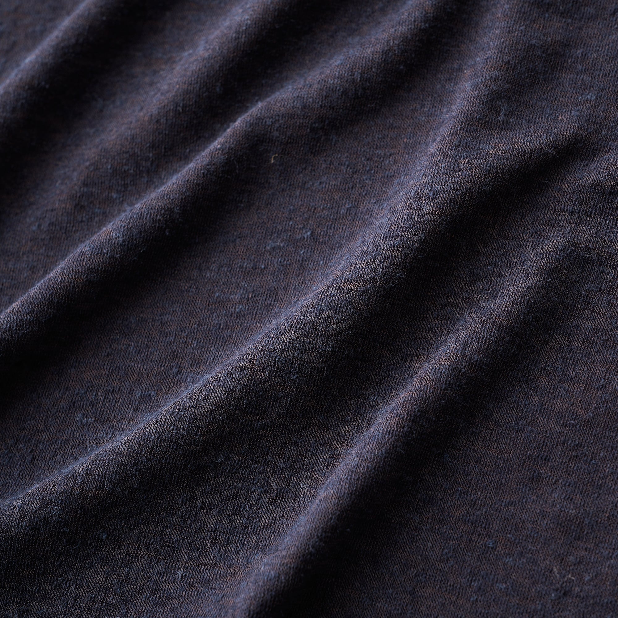芯にポリエステルを入れた、特別な極細番手のリネン糸で編んだ生地は、リネン本来の自然な風合いを持ちながら、とても軽やかで繊細に仕上がります。芯にポリエステルが入ることで、しなやかで美しいドレープ感が生まれるのも特徴です。