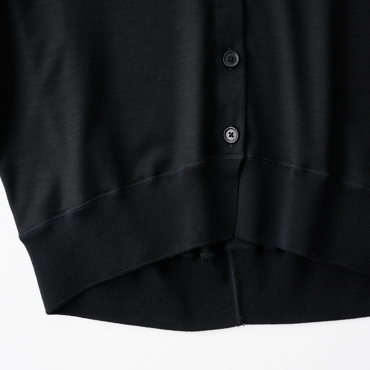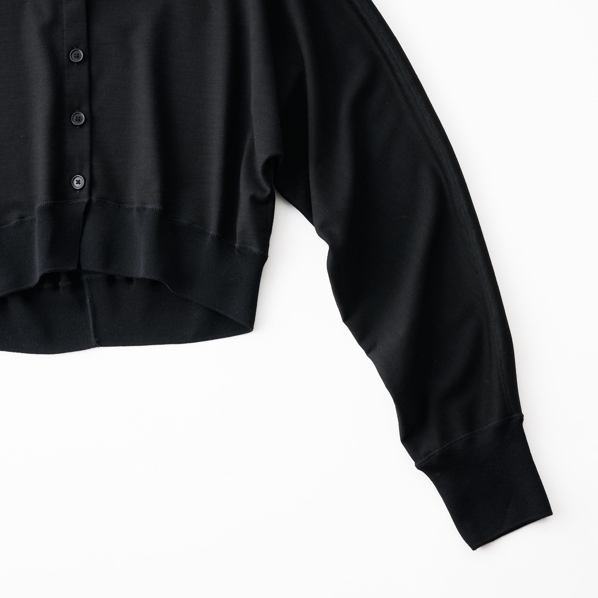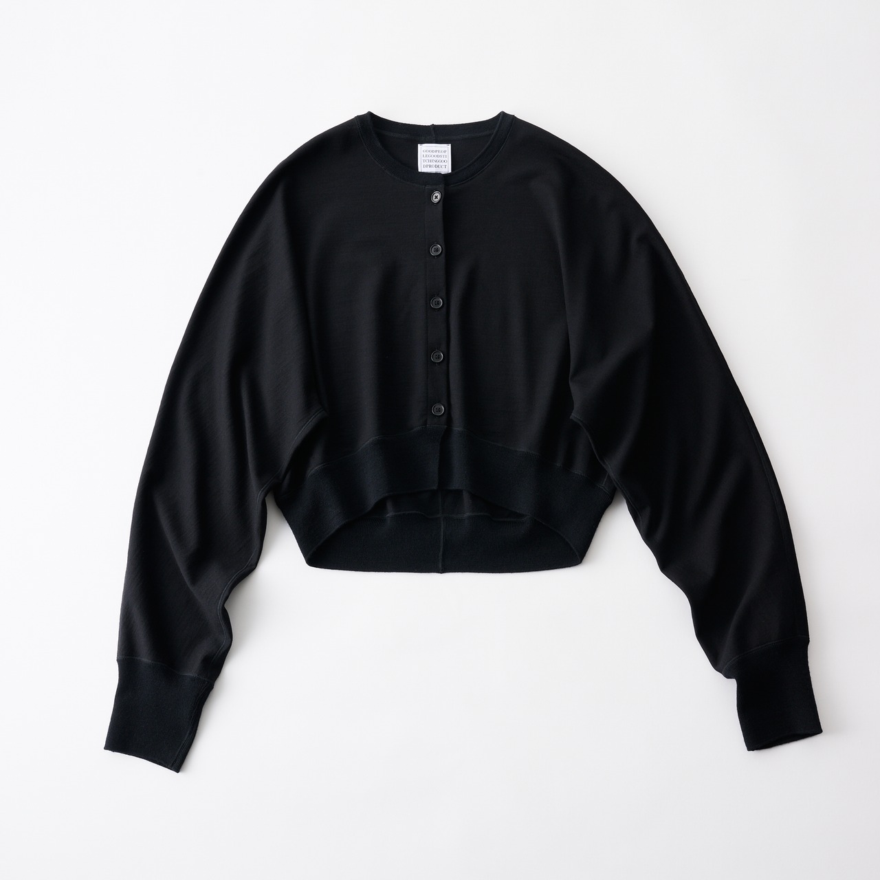 ウールのバランサーキュラー®生地を使用したドルマンスリーブ、クルーネックカーディガン。