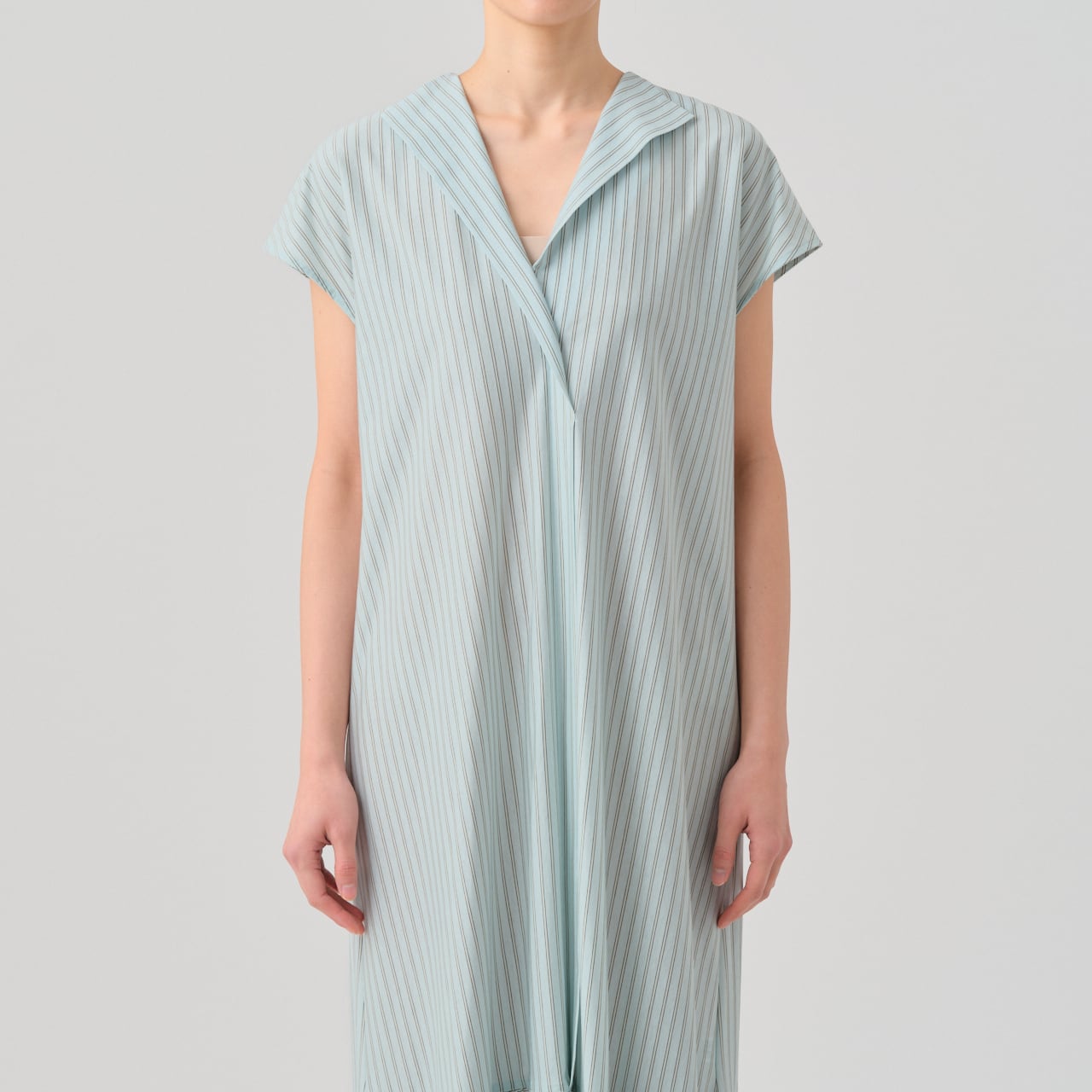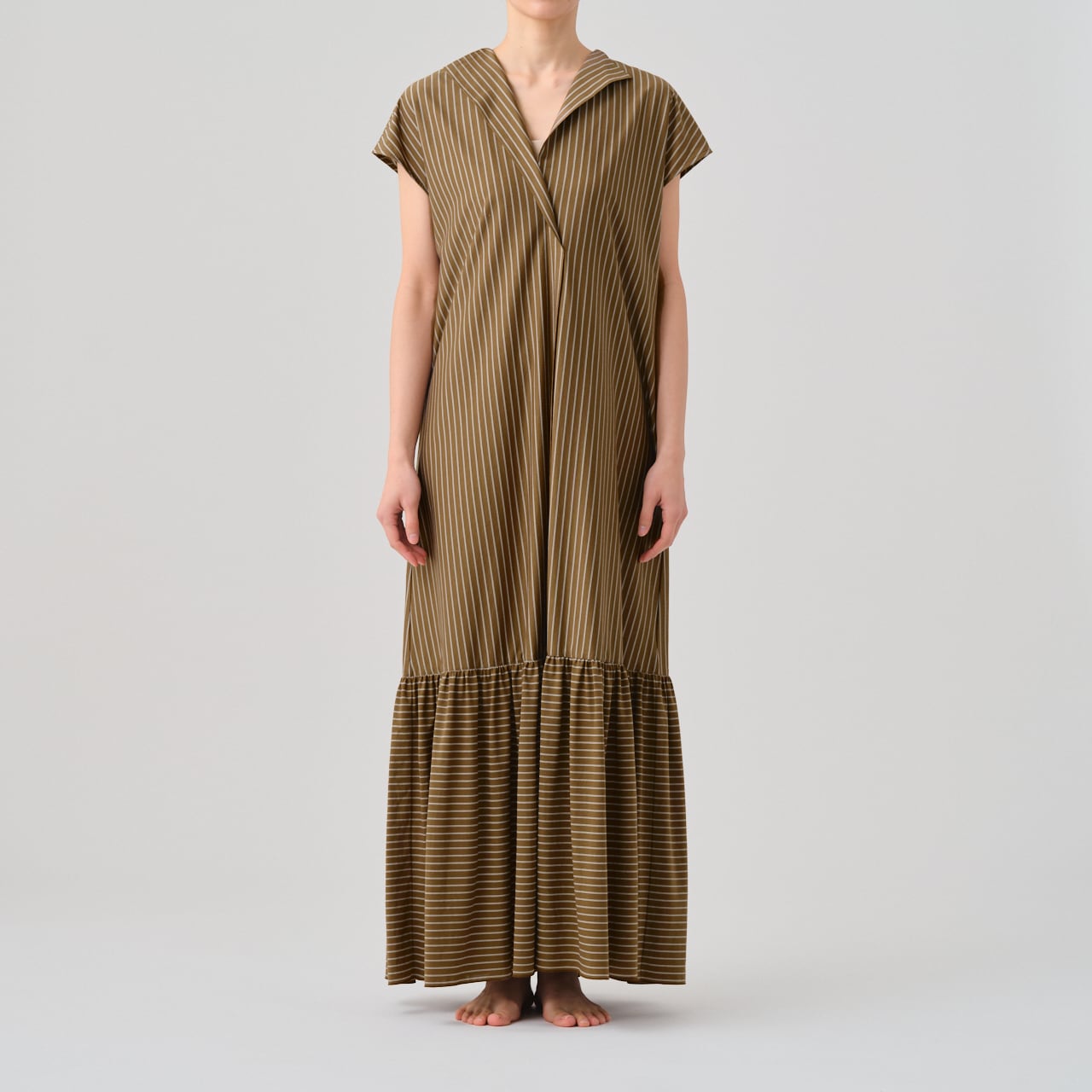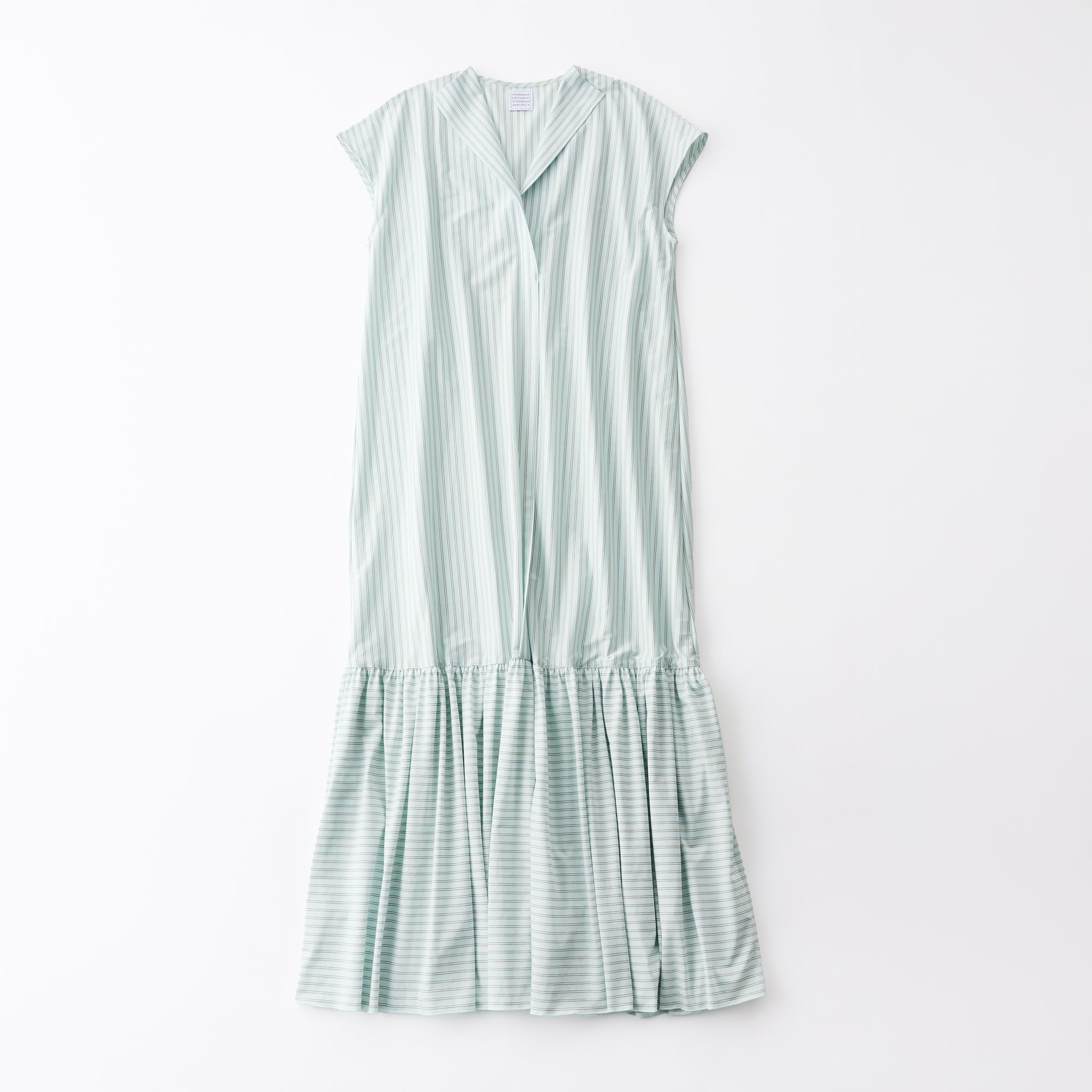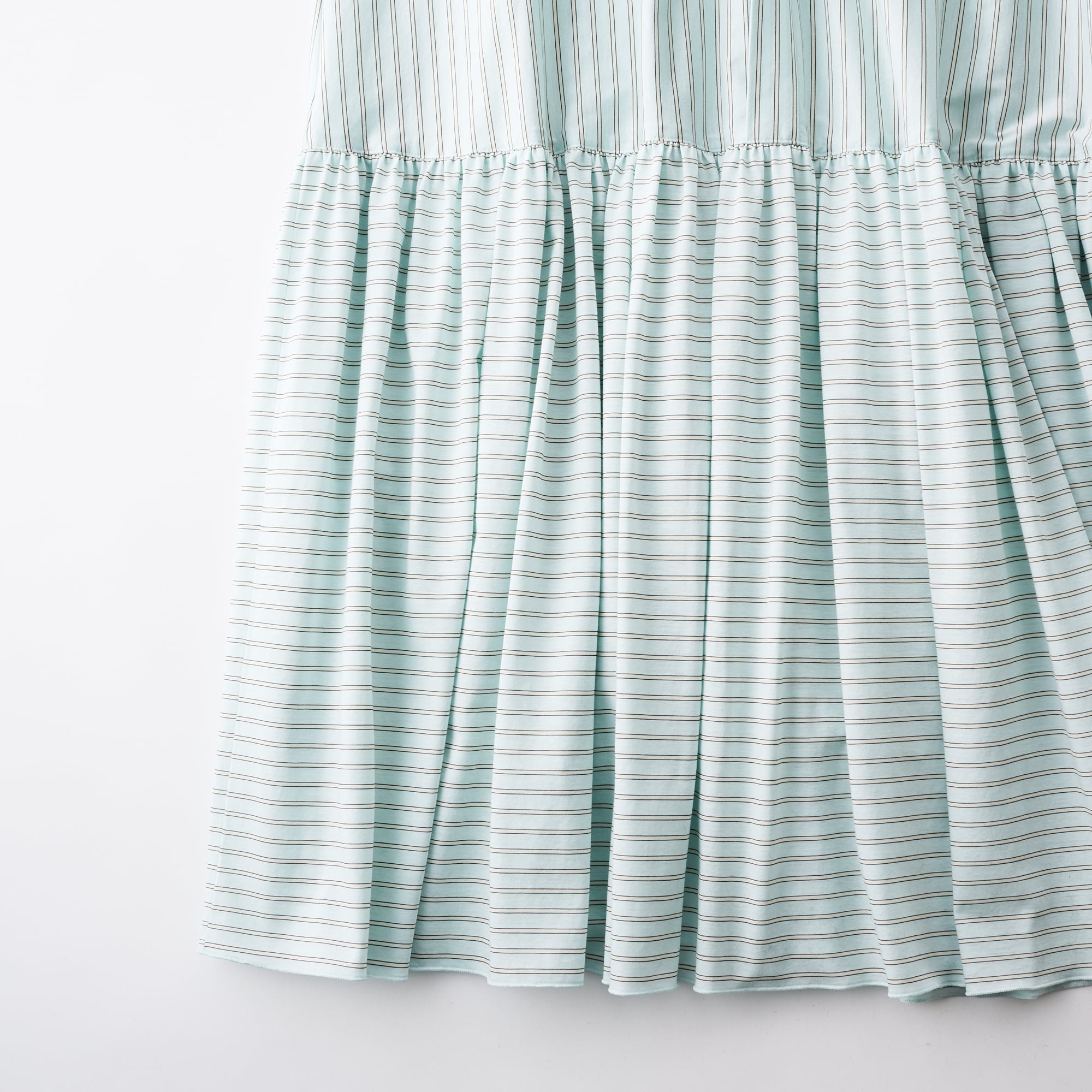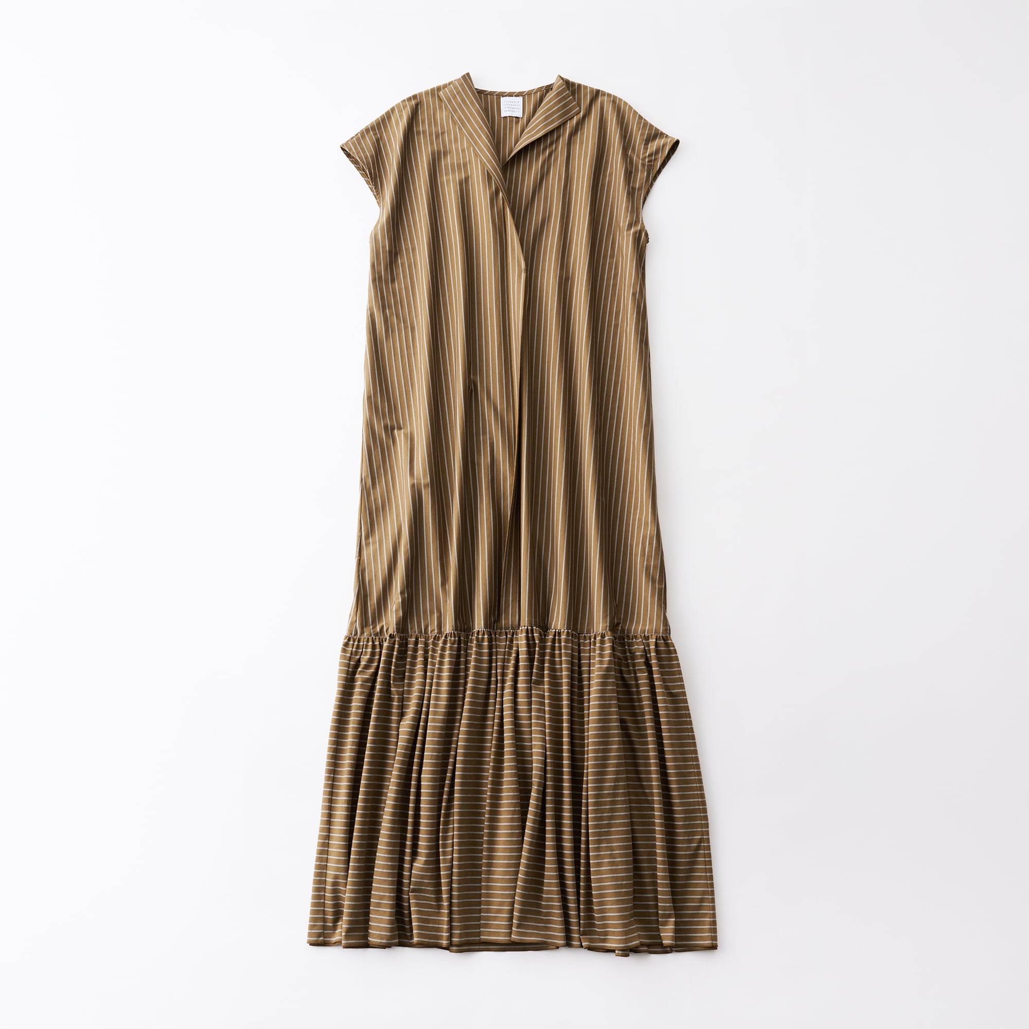 オーセンティックなダブルストライプ柄が特徴のギャザードレス。