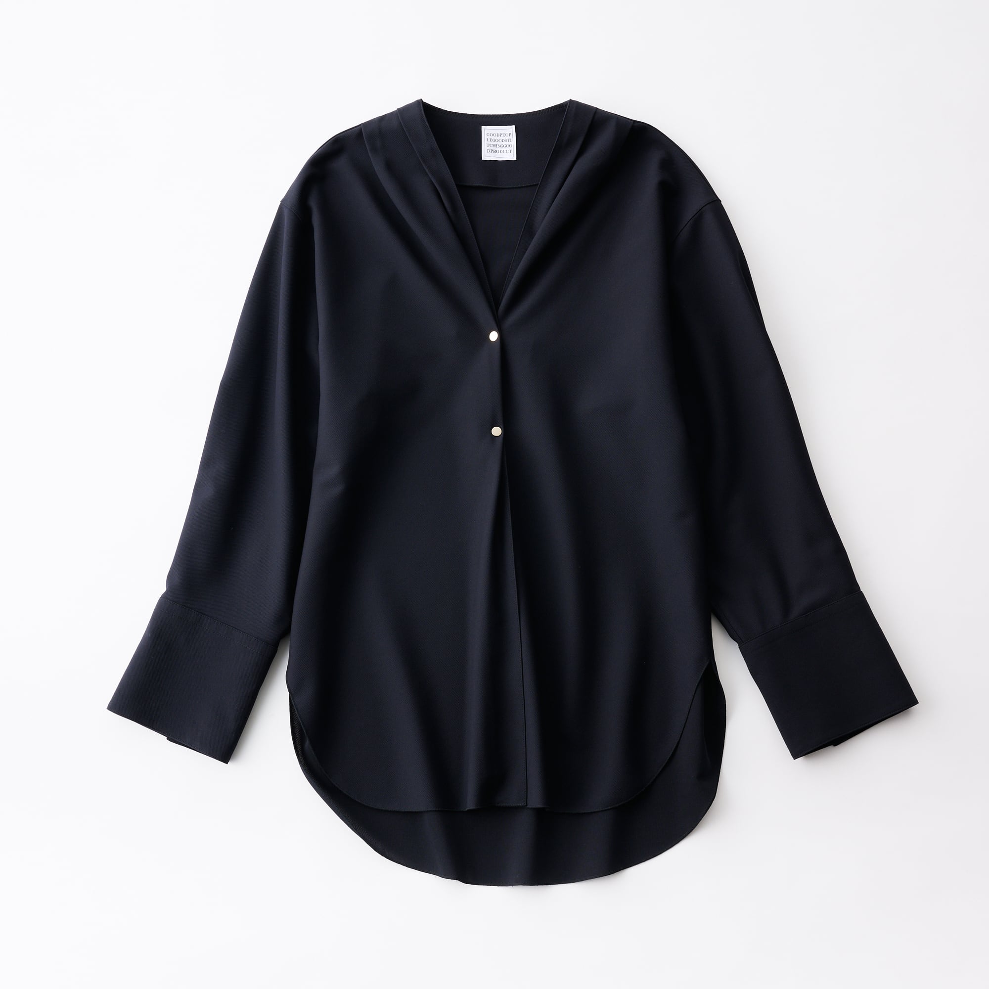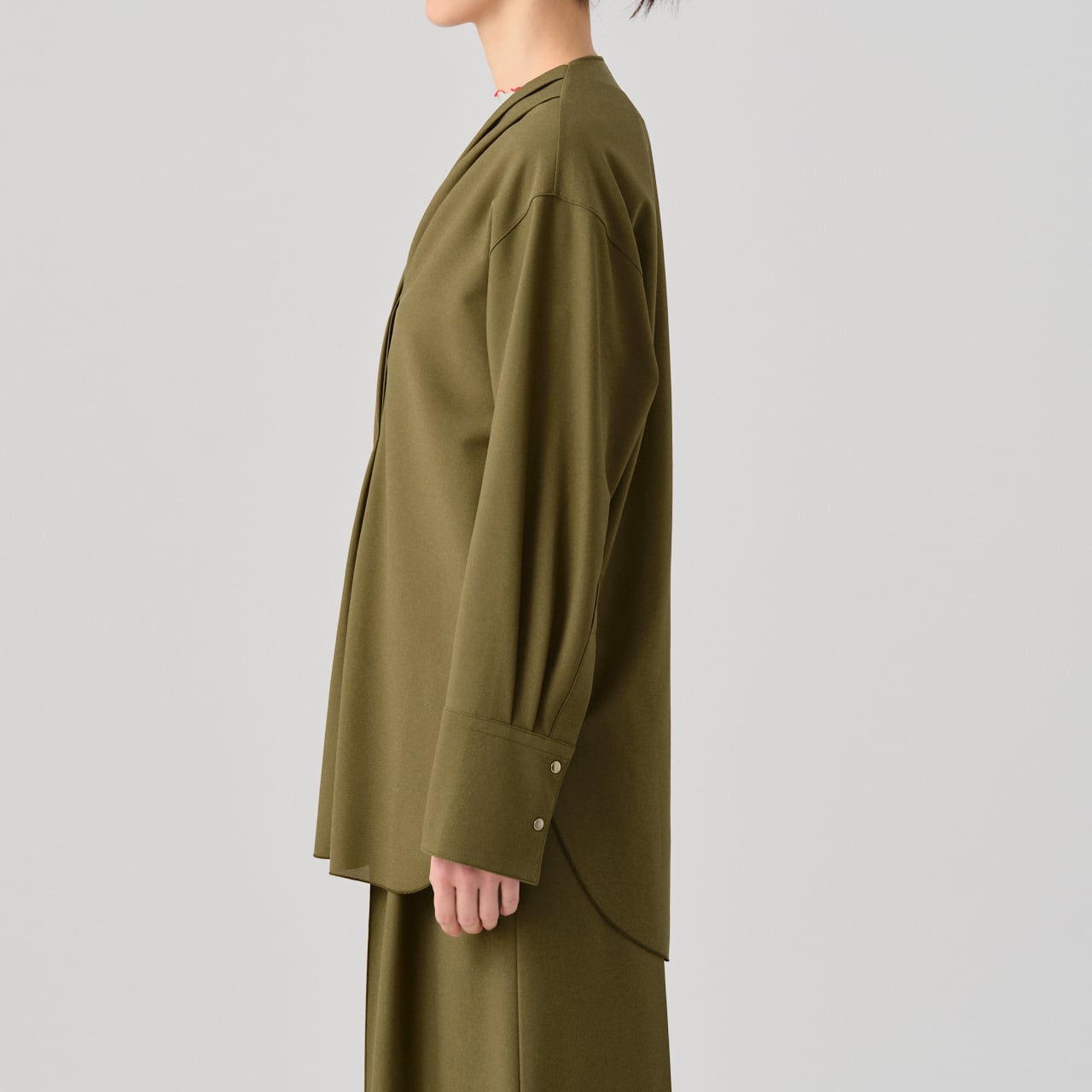 キュプラのバランサーキュラー®生地を使用した、ノーカラーのイージーシャツジャケット。